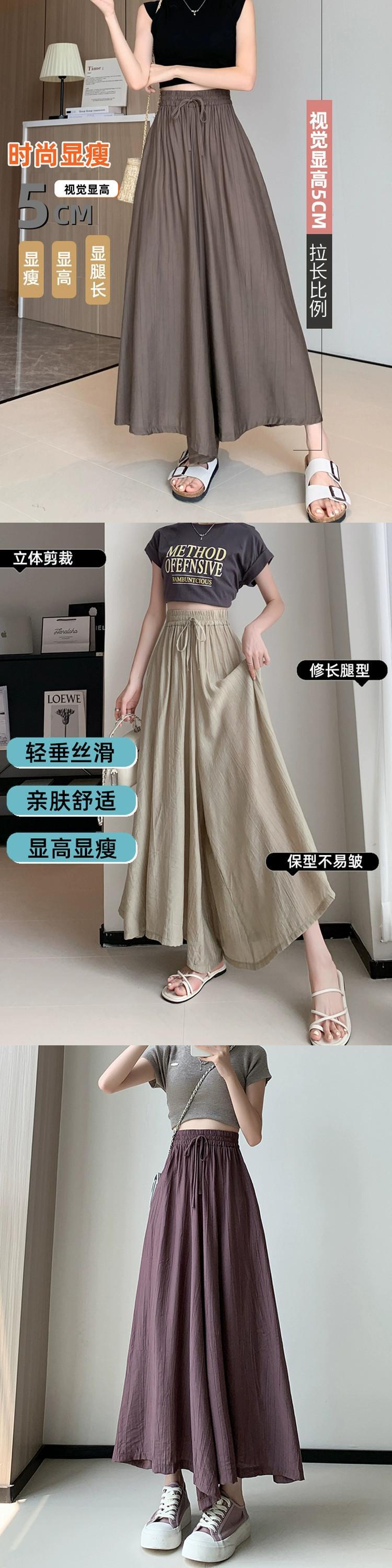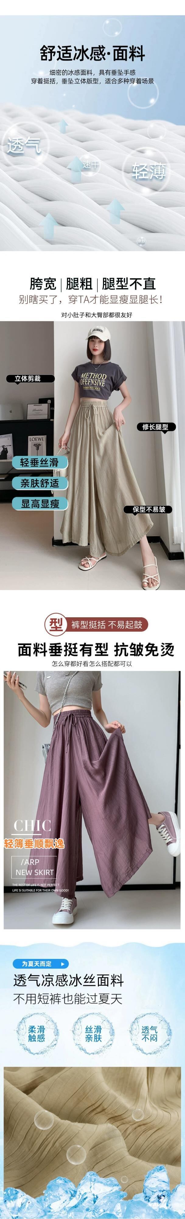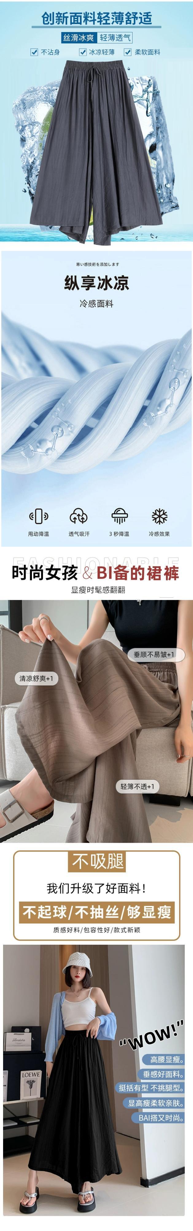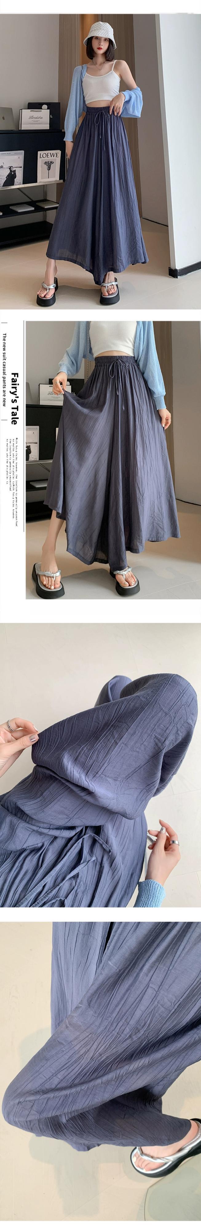 プリーツアイスシルクワイドレッグパンツ 2023 新しい夏の女性の薄いパンツカジュアルルーズハイウエスト 9 ポイントスカートパンツ サマー 夏物 7460063414530645 | framboise21