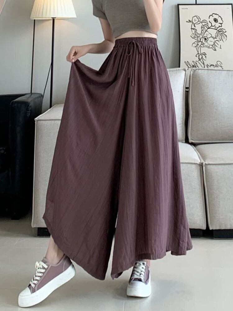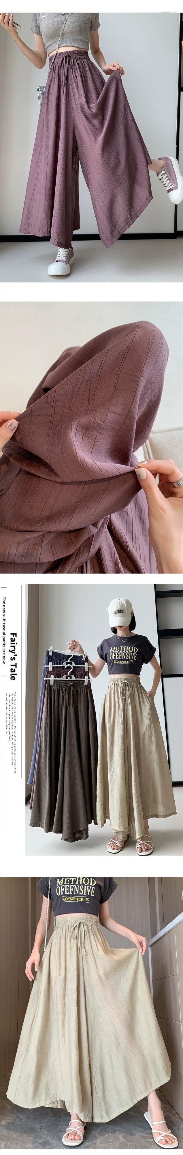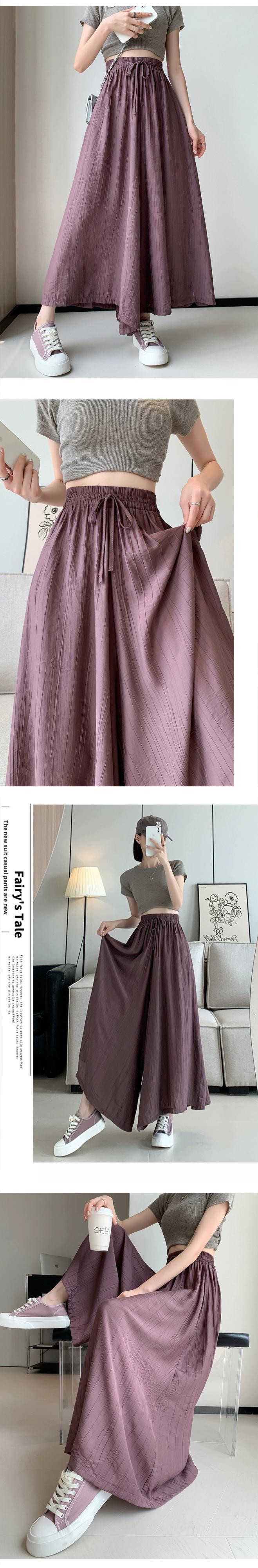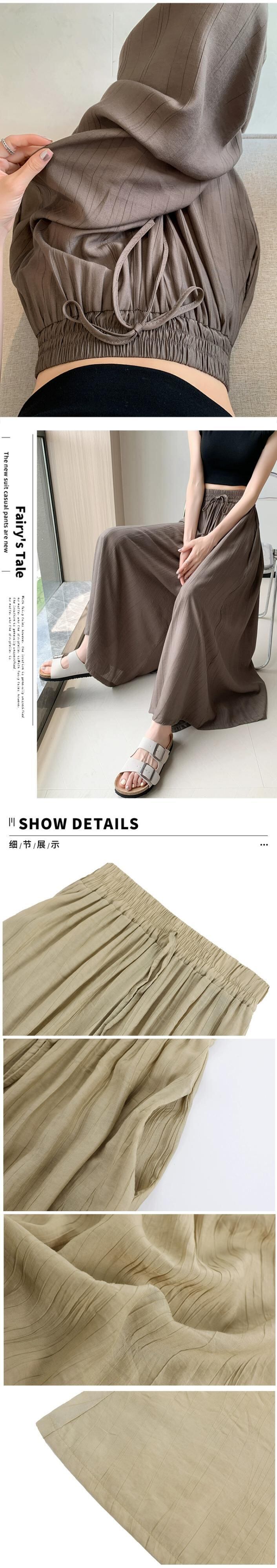 プリーツアイスシルクワイドレッグパンツ 2023 新しい夏の女性の薄いパンツカジュアルルーズハイウエスト 9 ポイントスカートパンツ サマー 夏物 7460063414530645 | framboise21