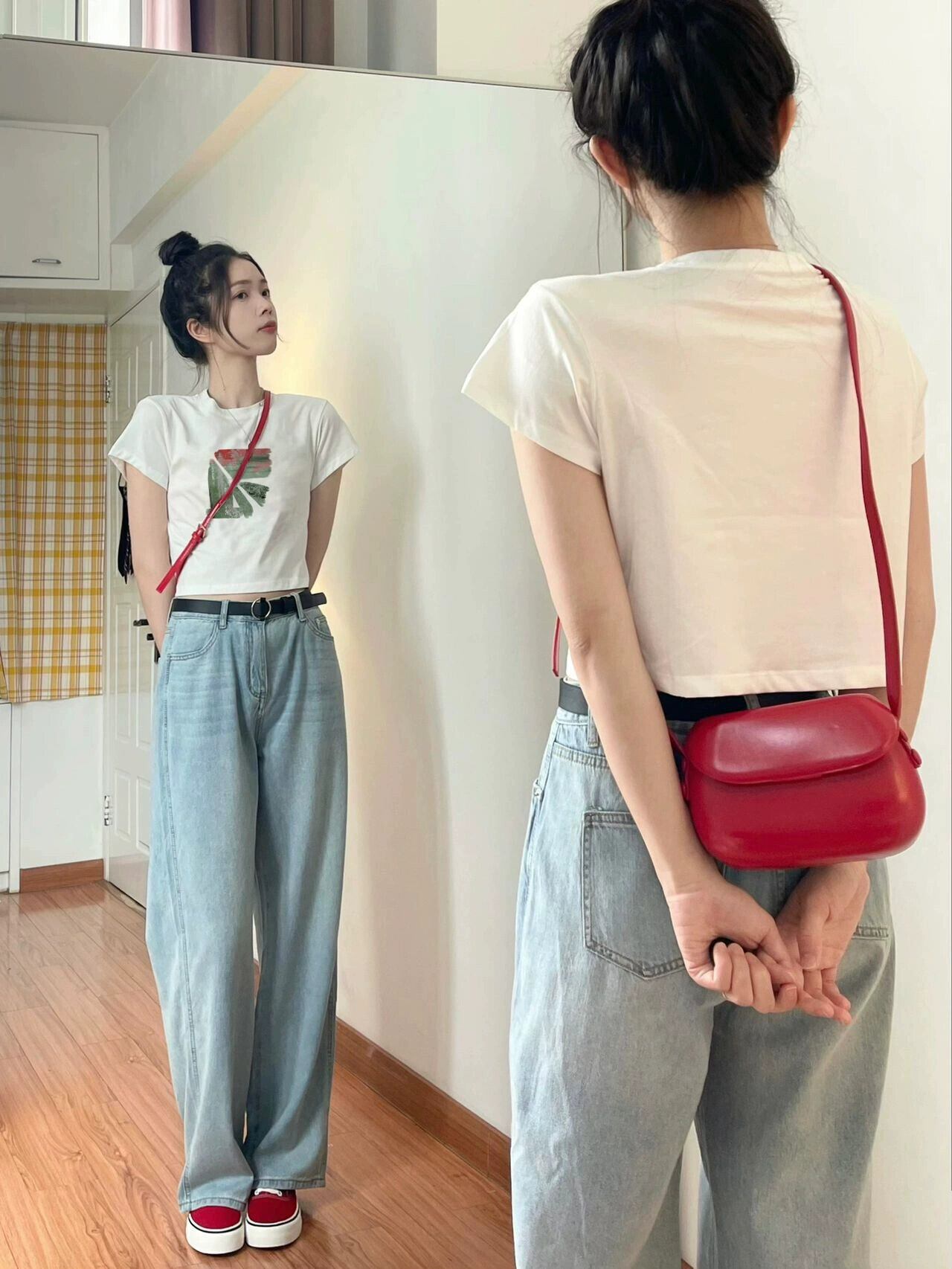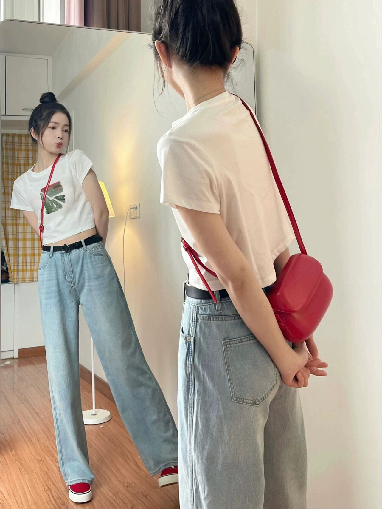 プリント半袖Tシャツレディース夏ニッチデザインセンス薄いハイウエストへそショートラウンドネックトップコットンTシャツ ハイウェスト サマー 夏物 Oネック 7460021067221690 | framboise21