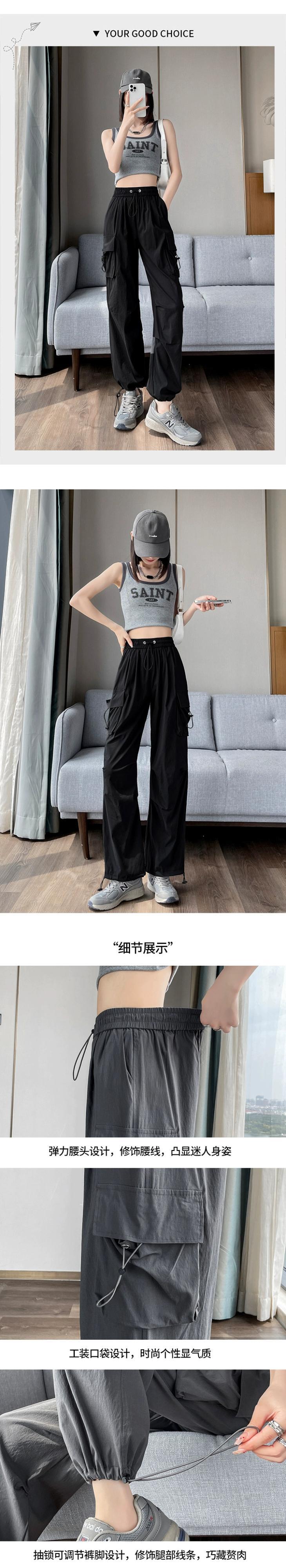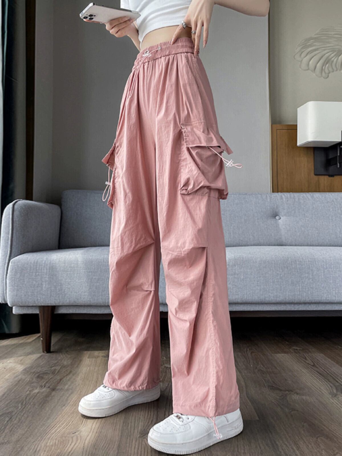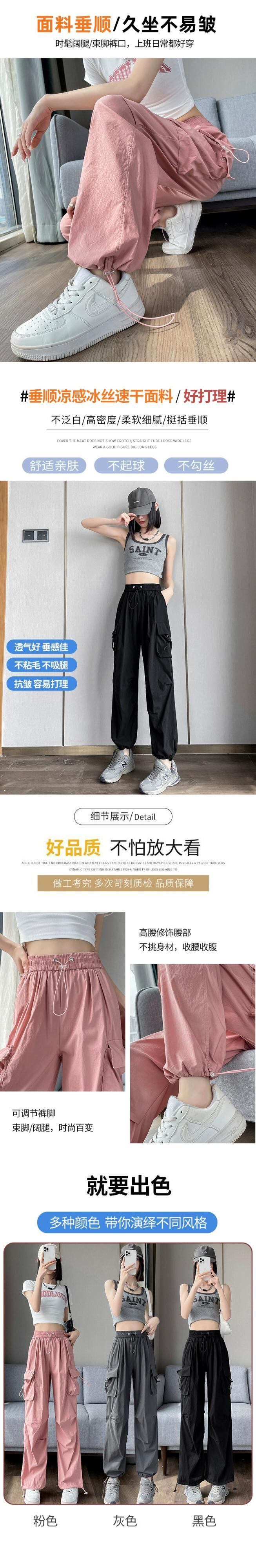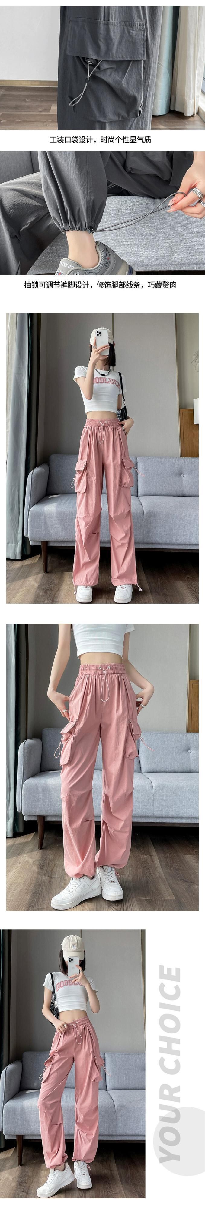 ピンクのアメリカンスタイルのオーバーオールレディース夏薄セクションハイウエスト痩身ワイドレッグカジュアル速乾スポーツパンツ ハイウェスト サマー 夏物 7460074261737611 | framboise21