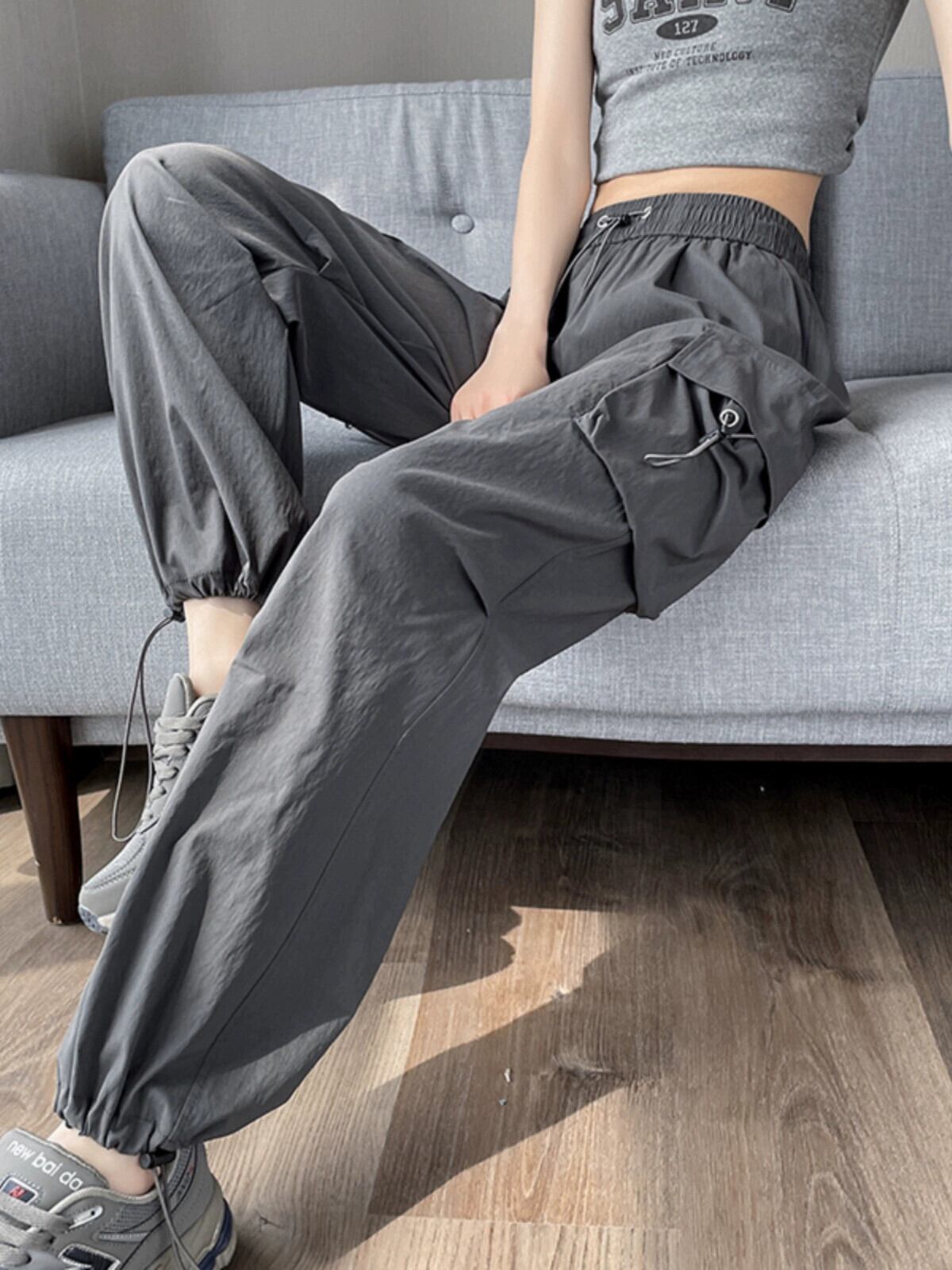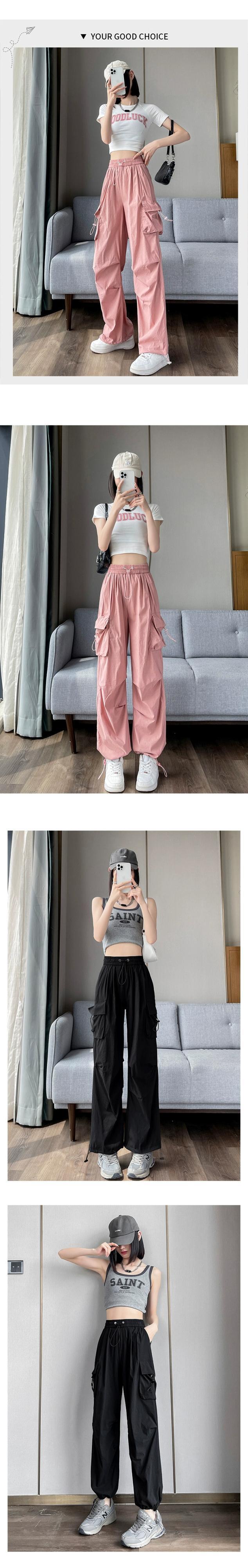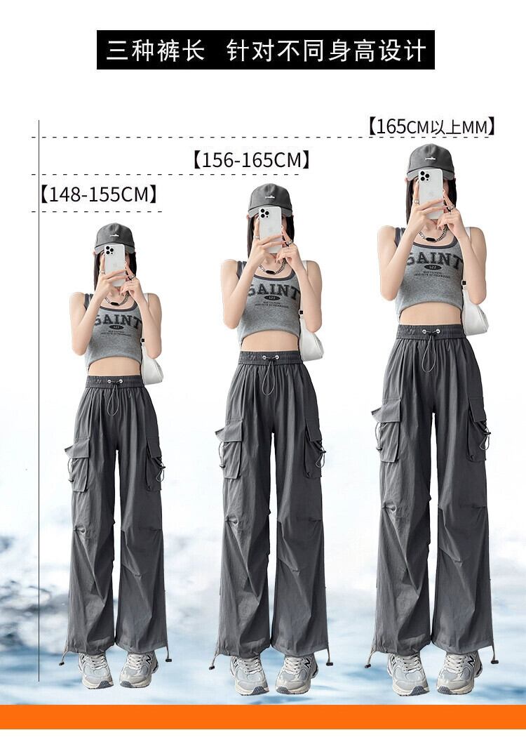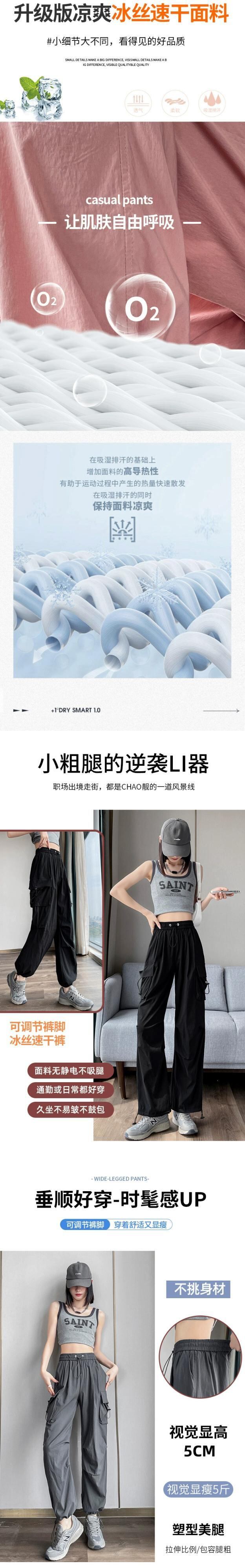 ピンクのアメリカンスタイルのオーバーオールレディース夏薄セクションハイウエスト痩身ワイドレッグカジュアル速乾スポーツパンツ ハイウェスト サマー 夏物 7460074261737611 | framboise21