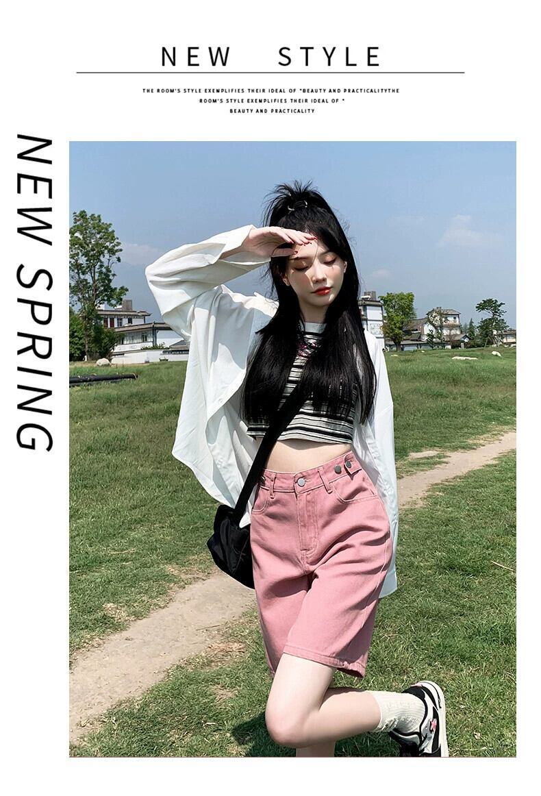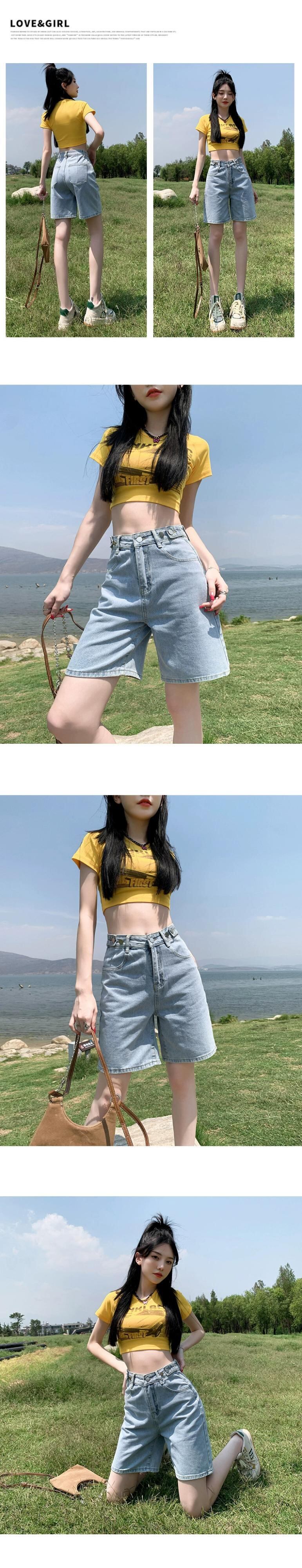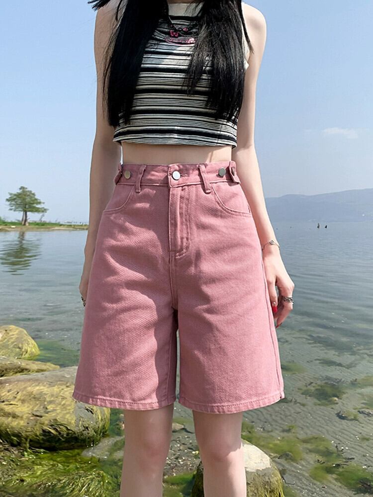ストレートデニムショートパンツレディース2023年夏新スタイルアウターハイウエスト5点パンツ見た目細くてゆったりオールマッチワイドレッグパンツ ハイウェスト サマー 夏物 ショーツ ブルマー 7460074386375649 | framboise21