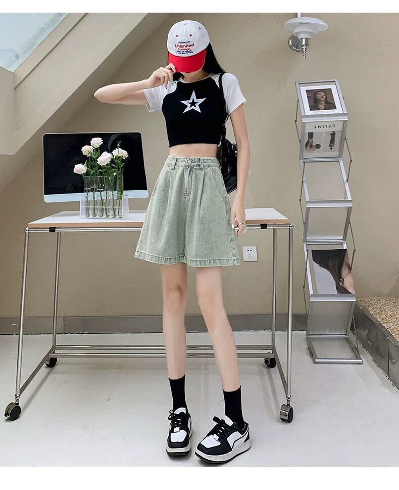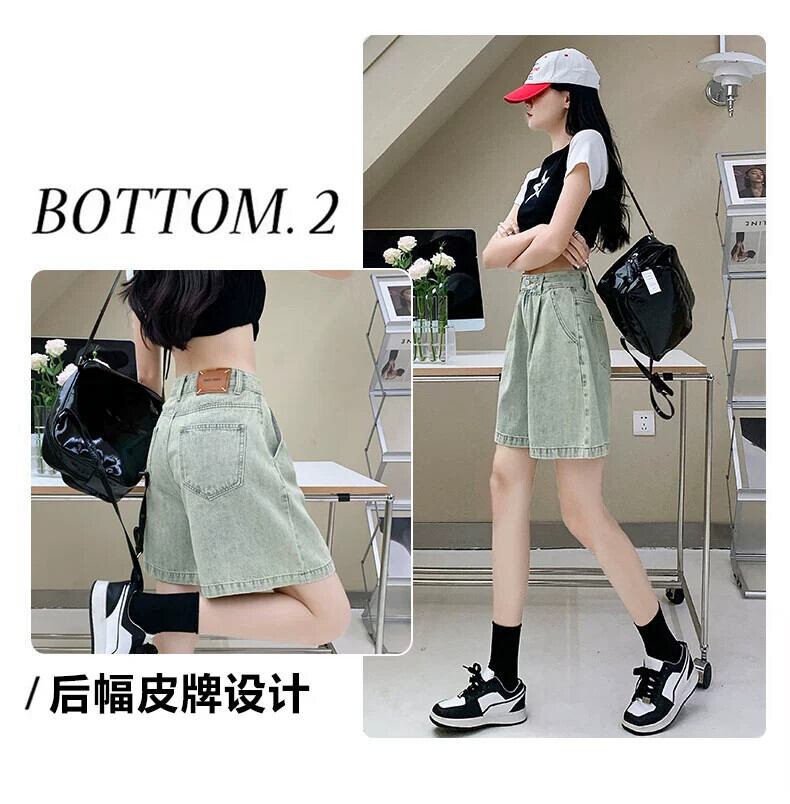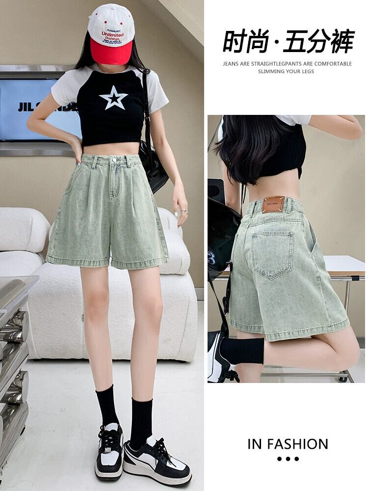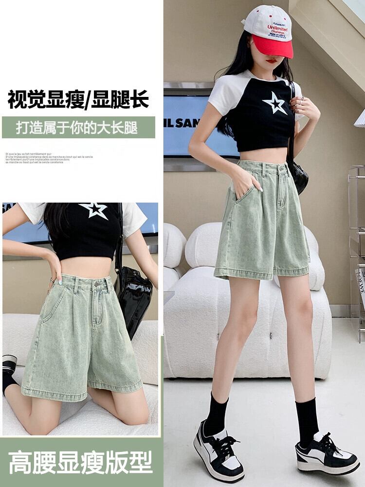5点デニムショートパンツレディース2023夏新作ストレートスリムAラインアウター小さめワイドレッグハイウエストパンツ サマー 夏物 ショーツ ブルマー 7460095683120022 | framboise21