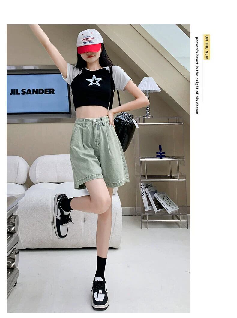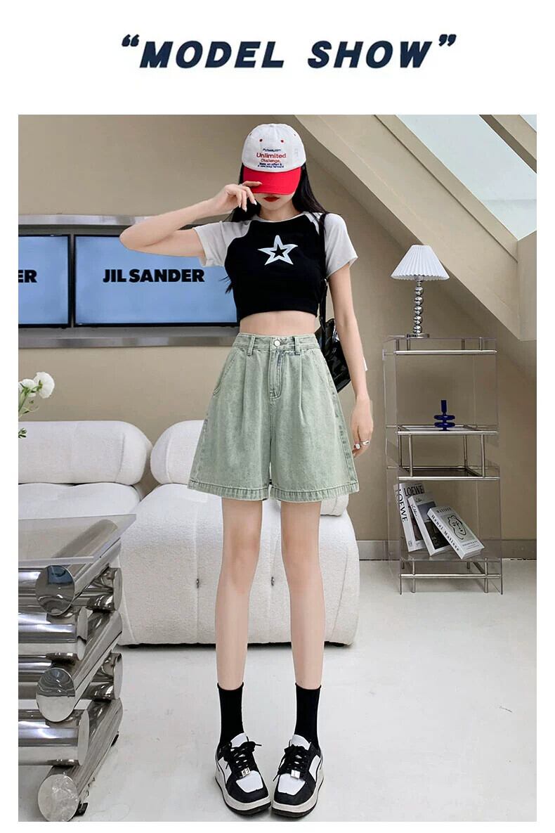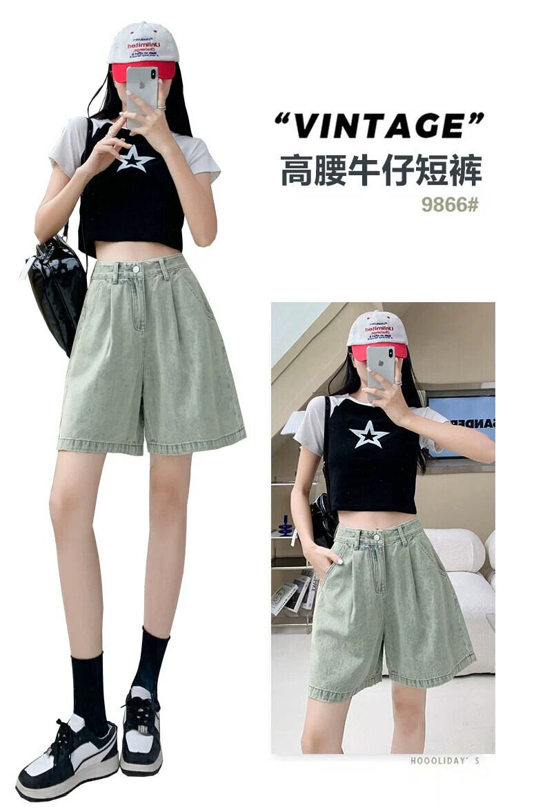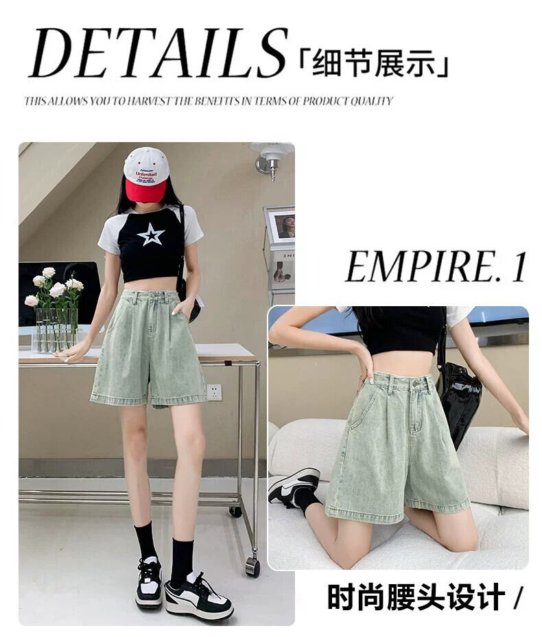 5点デニムショートパンツレディース2023夏新作ストレートスリムAラインアウター小さめワイドレッグハイウエストパンツ サマー 夏物 ショーツ ブルマー 7460095683120022 | framboise21