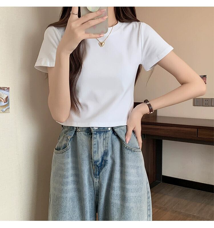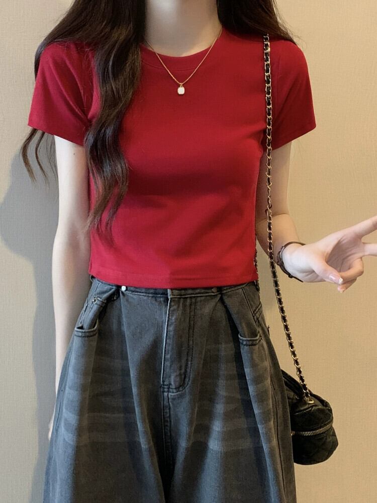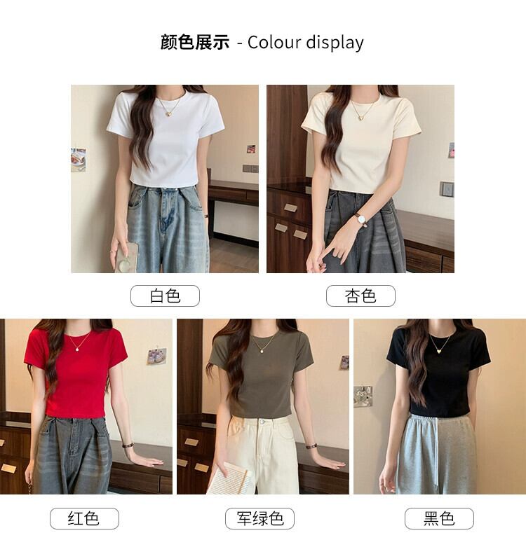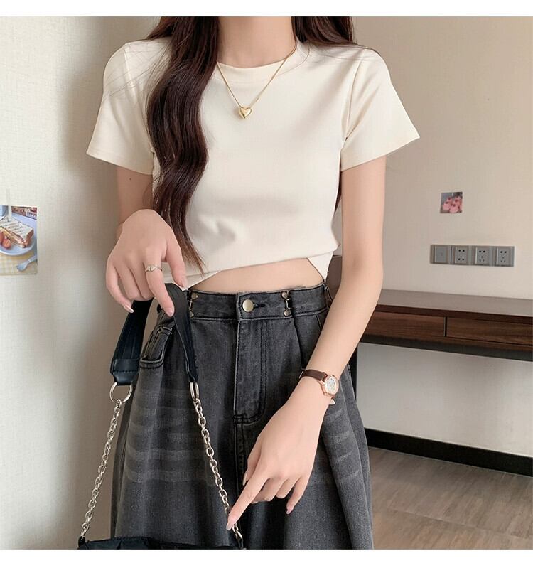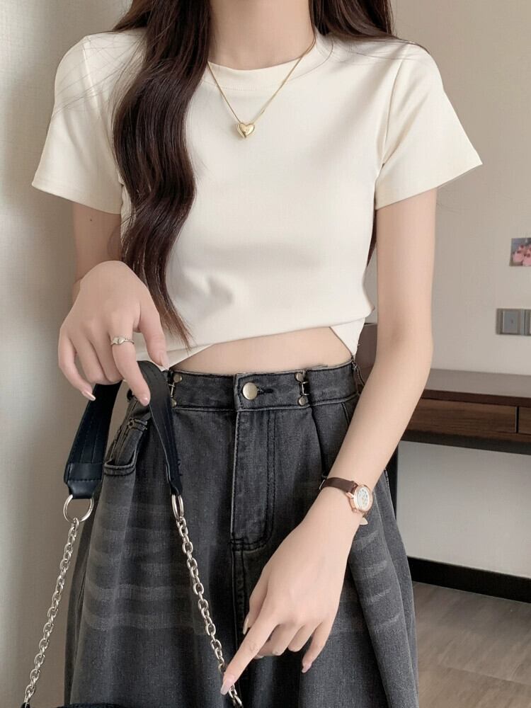 アーミーグリーン スリムフィット フロントショルダー 半袖 Tシャツ レディース 夏 アメリカン レトロ 小さい 背が高く ウエスト 薄い 短い セクション ショート サマー 夏物 7460095470002410 | framboise21