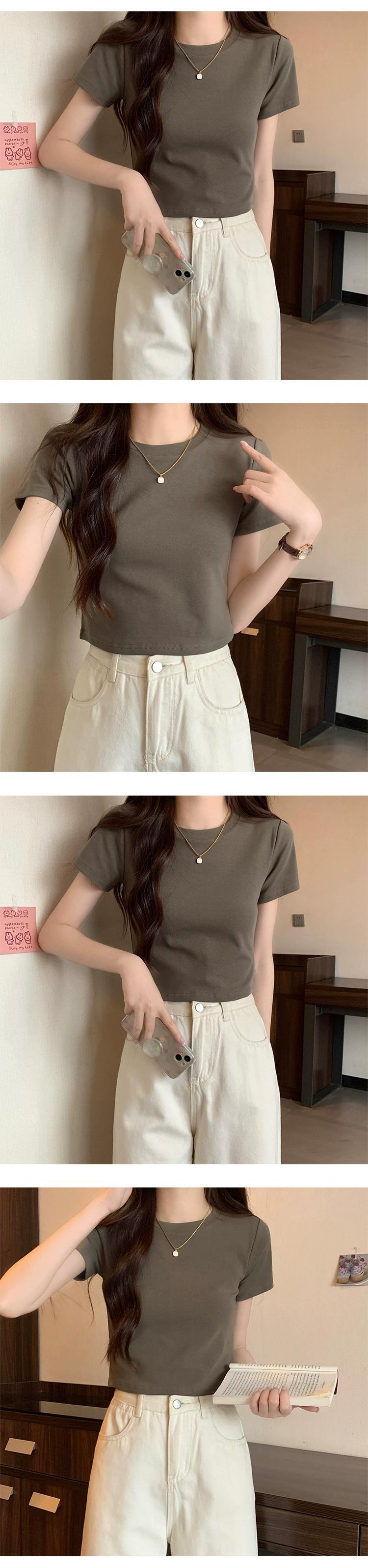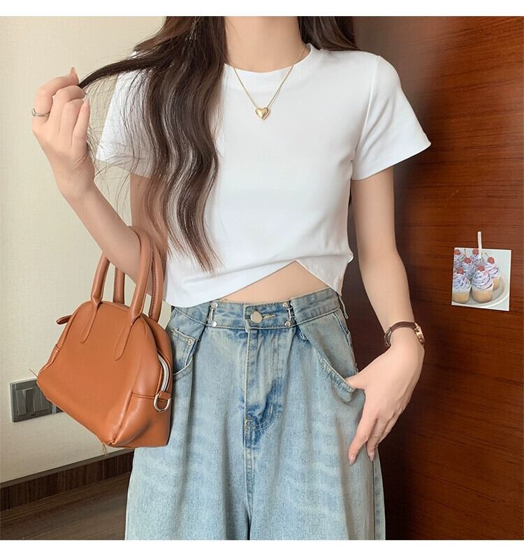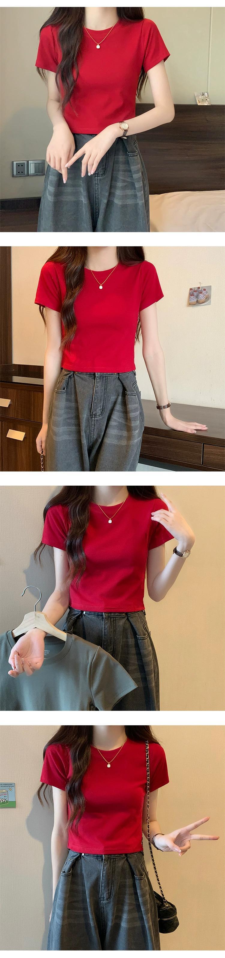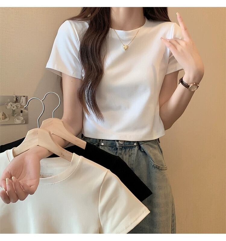 アーミーグリーン スリムフィット フロントショルダー 半袖 Tシャツ レディース 夏 アメリカン レトロ 小さい 背が高く ウエスト 薄い 短い セクション ショート サマー 夏物 7460095470002410 | framboise21
