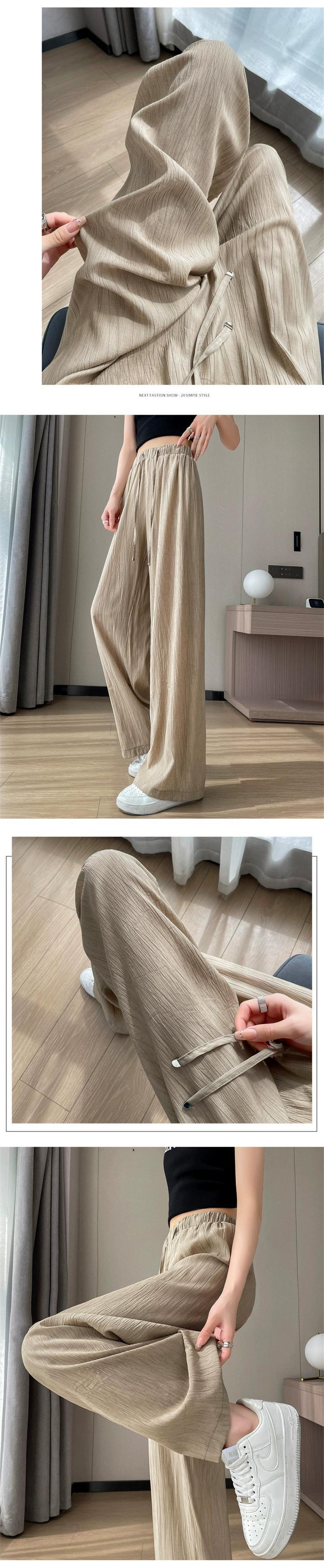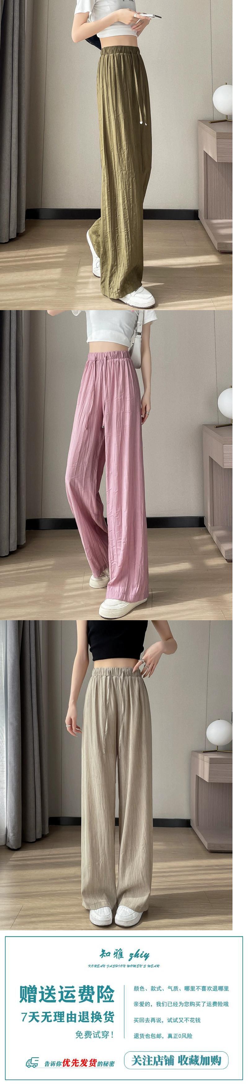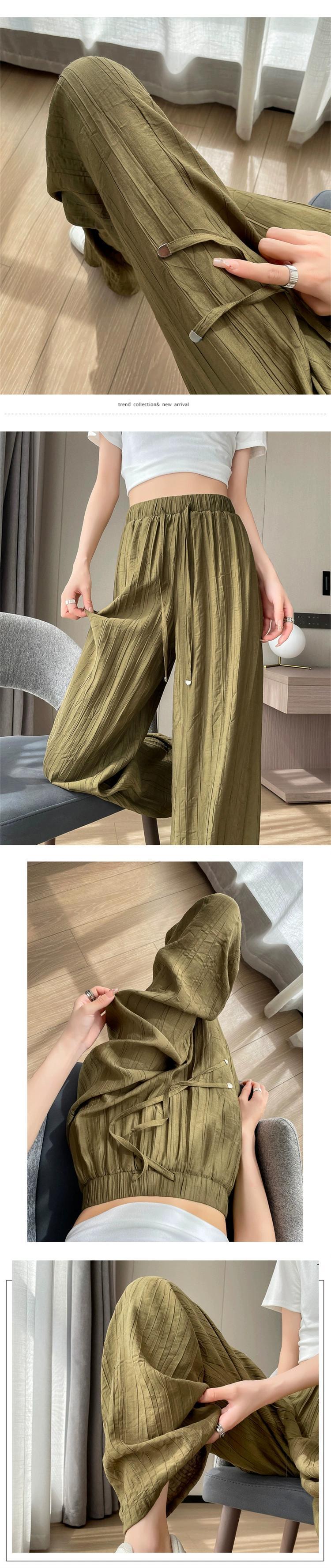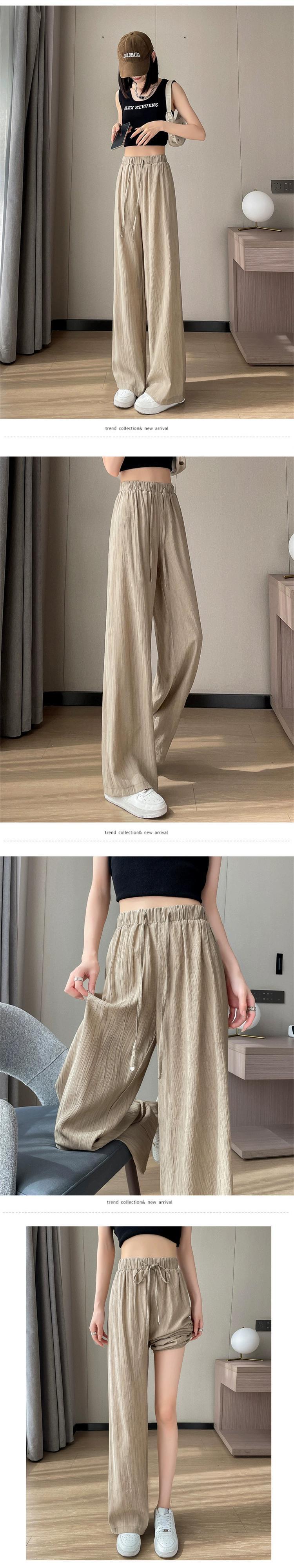 アイスシルクコットンとリネンのワイドレッグパンツレディース夏ハイウエスト小さな涼しいクールパンツルーズスリムカジュアルプリーツパンツ ハイウェスト サマー 夏物 746007132333889 | framboise21