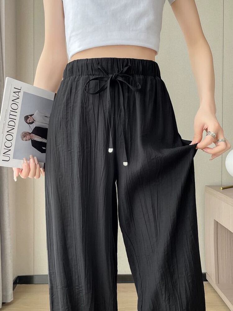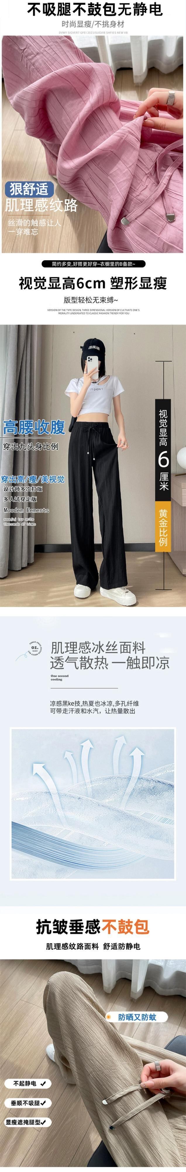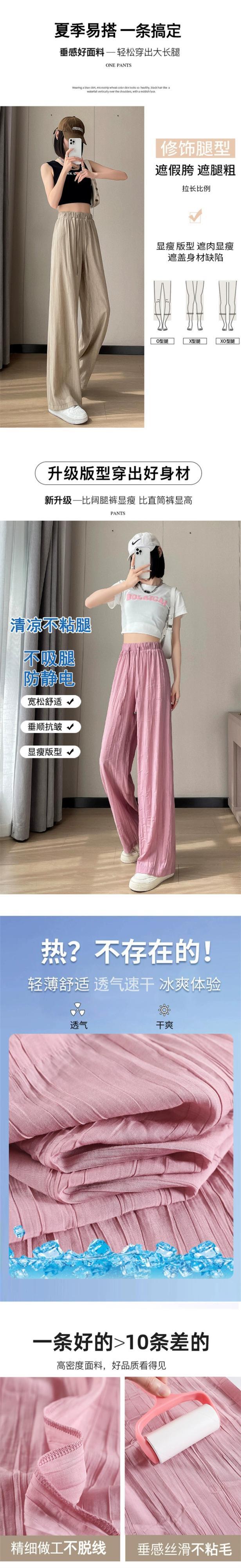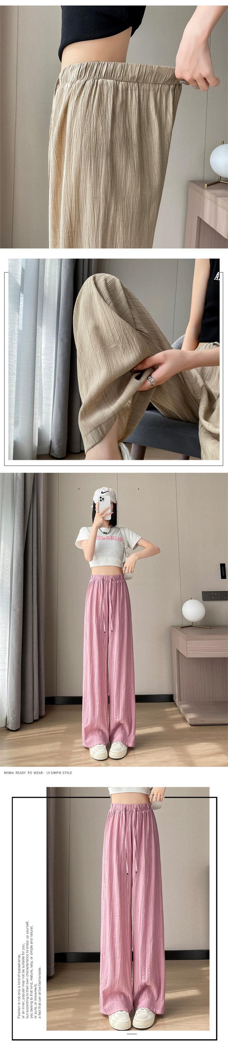 アイスシルクコットンとリネンのワイドレッグパンツレディース夏ハイウエスト小さな涼しいクールパンツルーズスリムカジュアルプリーツパンツ ハイウェスト サマー 夏物 746007132333889 | framboise21