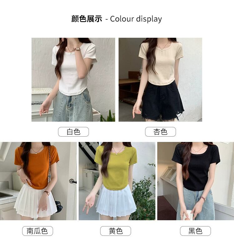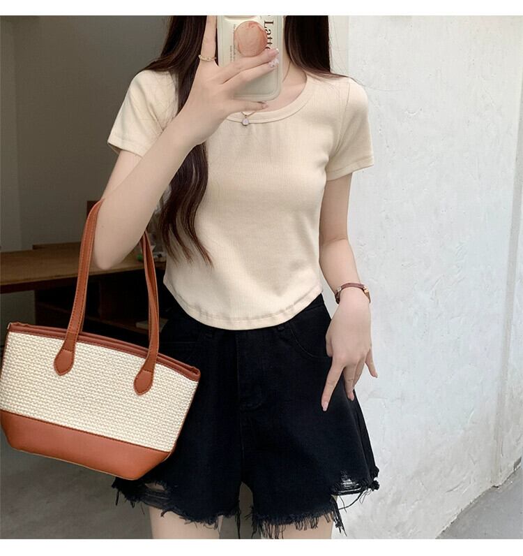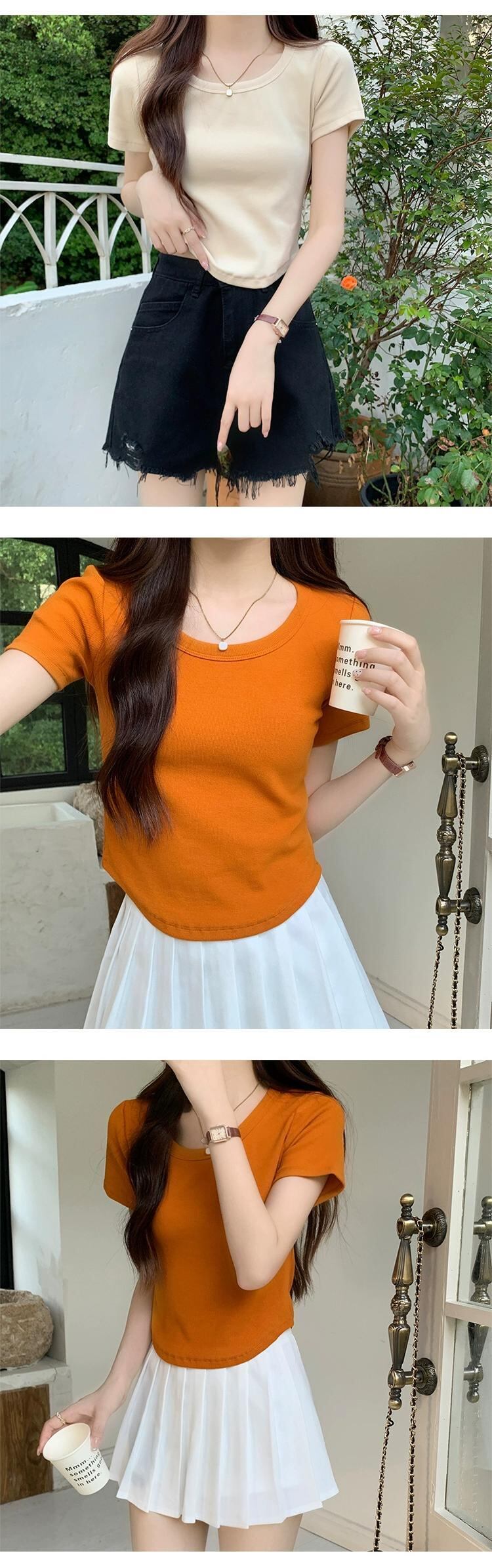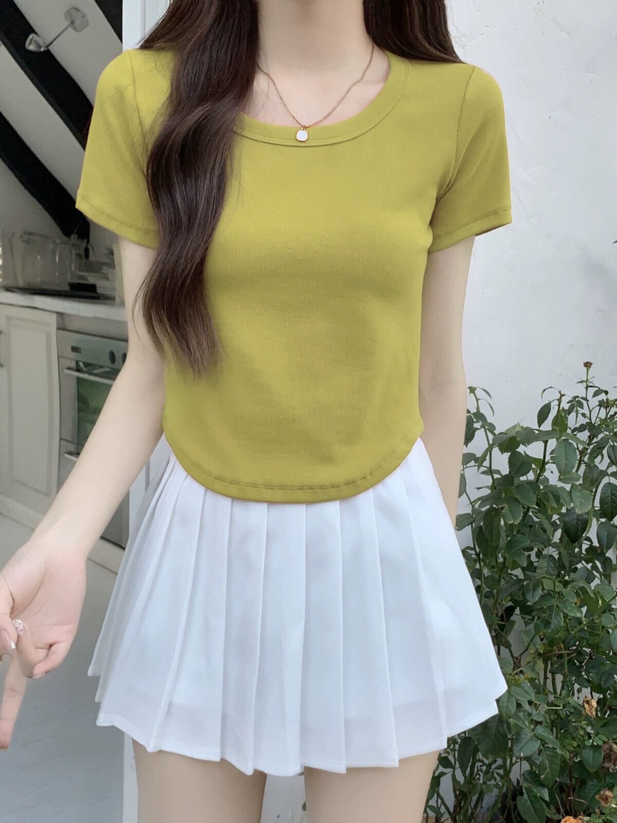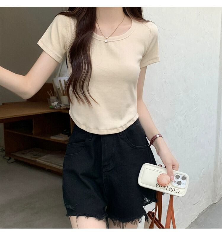 カーブした裾の純粋な綿のラウンドネック半袖 Tシャツの女性の夏のデザインファッション不規則なニッチスリムショートトップ コットン サマー 夏物 Oネック ピュア 7460062329739798 | framboise21