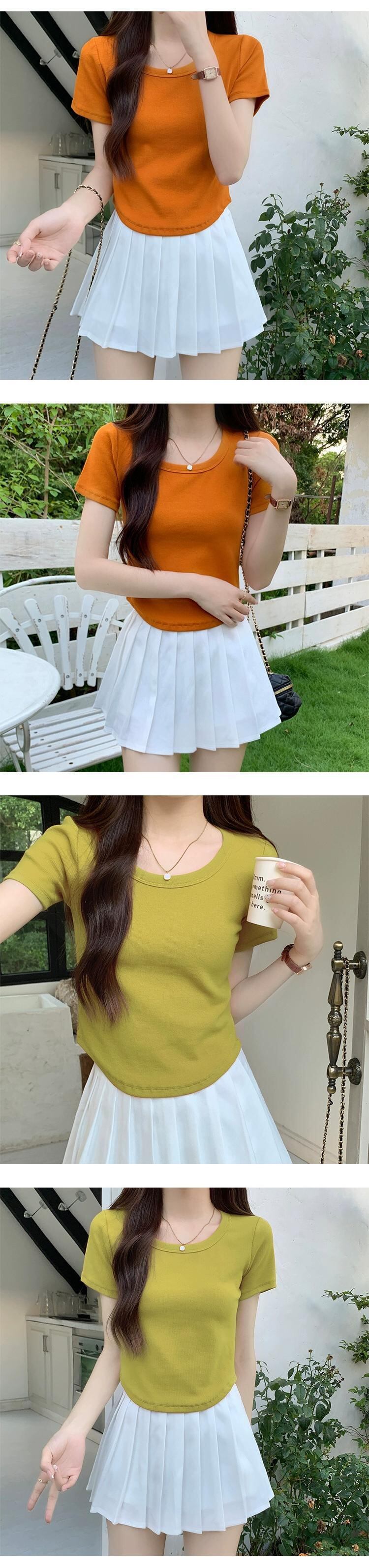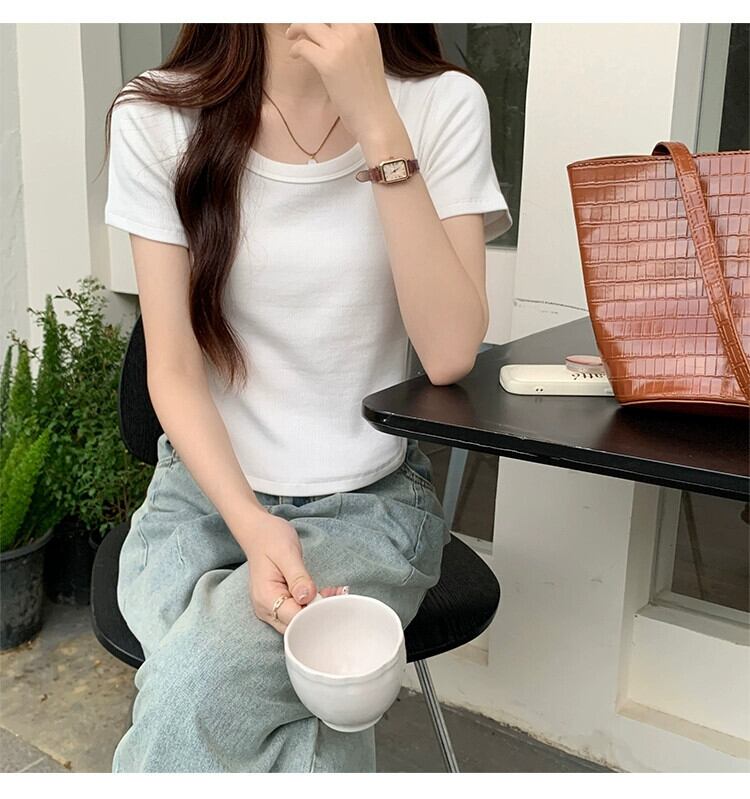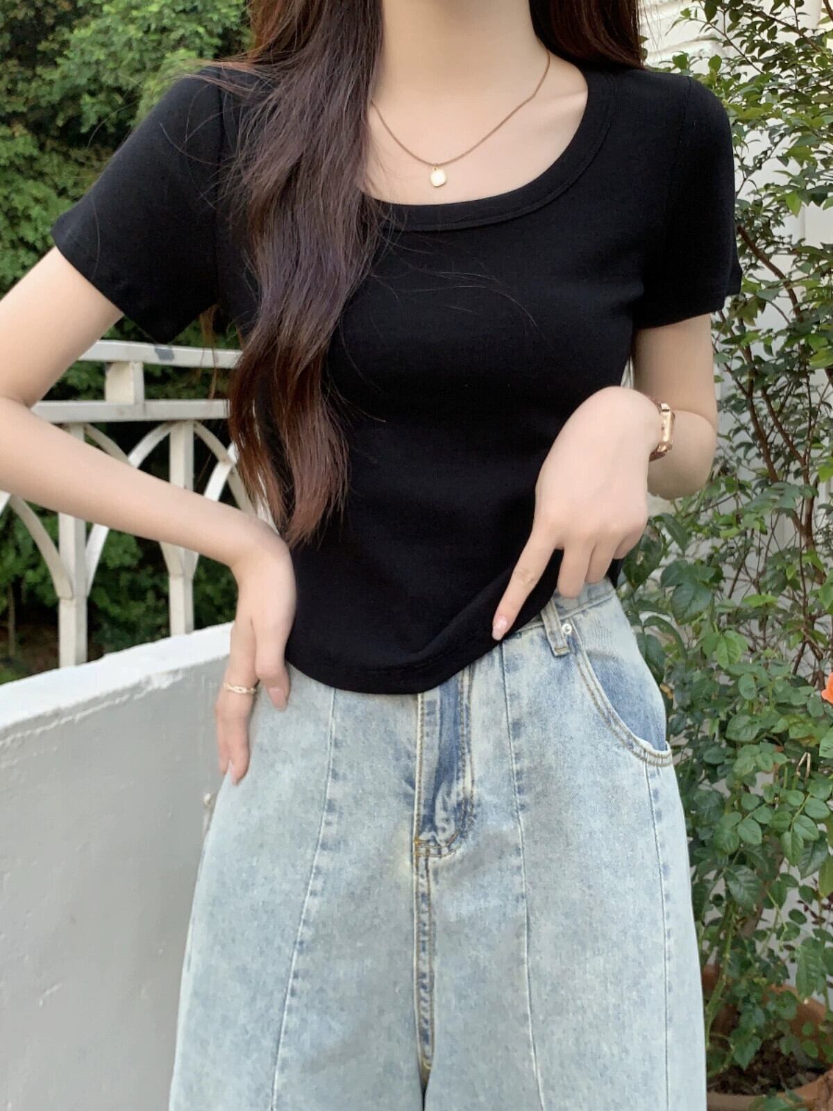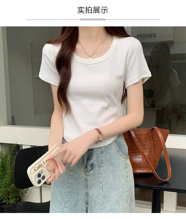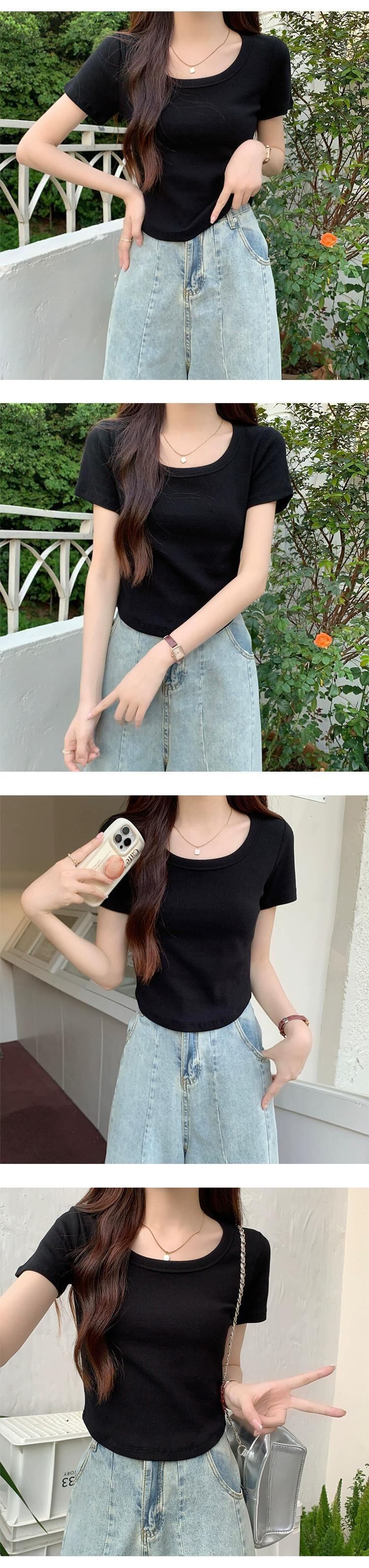 カーブした裾の純粋な綿のラウンドネック半袖 Tシャツの女性の夏のデザインファッション不規則なニッチスリムショートトップ コットン サマー 夏物 Oネック ピュア 7460062329739798 | framboise21