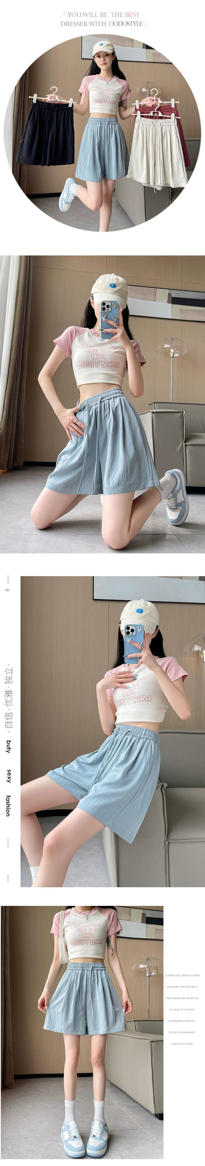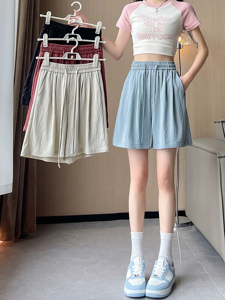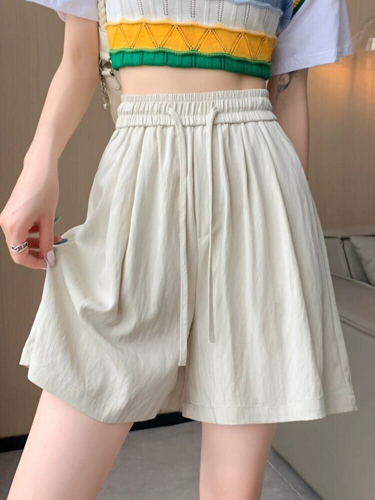 薄氷シルクカジュアルショーツレディース 2023 新作夏アウターゆったり薄手しわ A ラインハイウエストパンツトレンディ サマー 夏物 ブルマー Aライン 7460059956893813 | framboise21