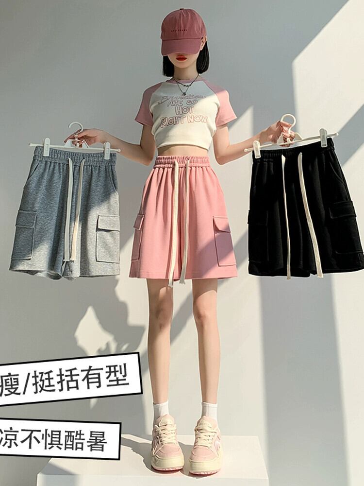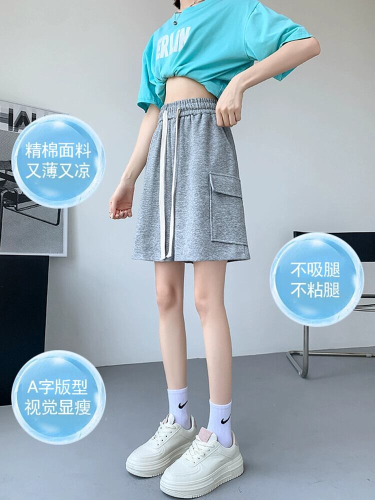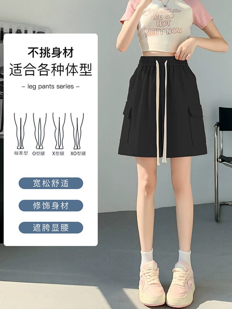 スポーツショーツ女性の夏の 2023 新しい薄いルーズストレートアウターウェア薄いセクションハイウエストミッドパンツ 5 点パンツ ハイウェスト サマー 夏物 ブルマー 7460062080046919 | framboise21