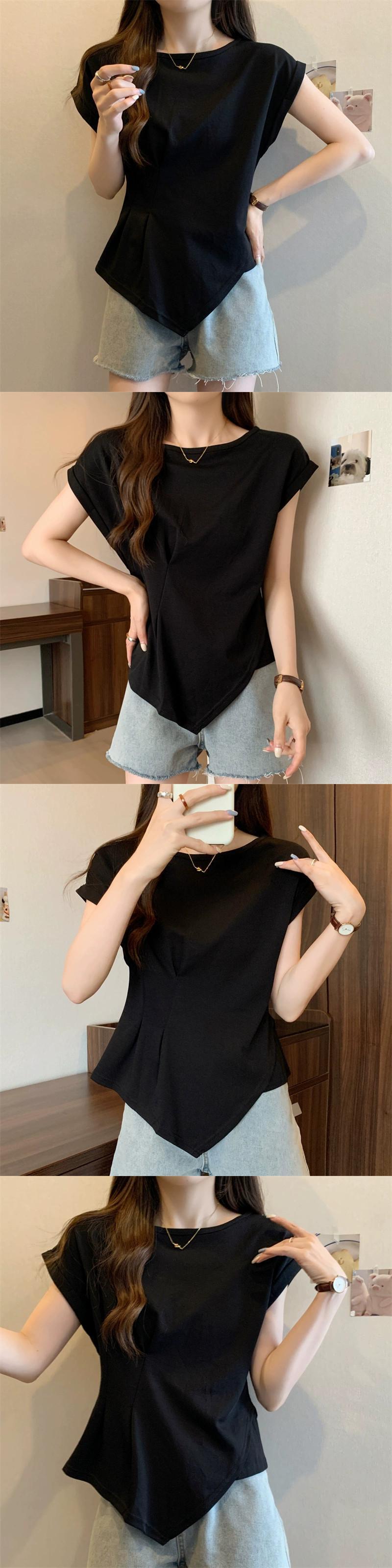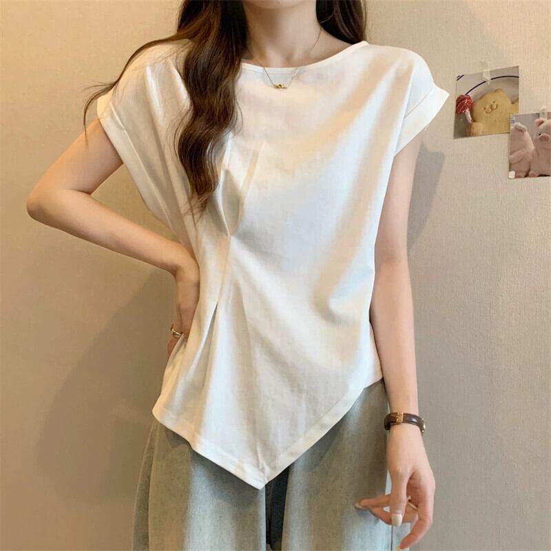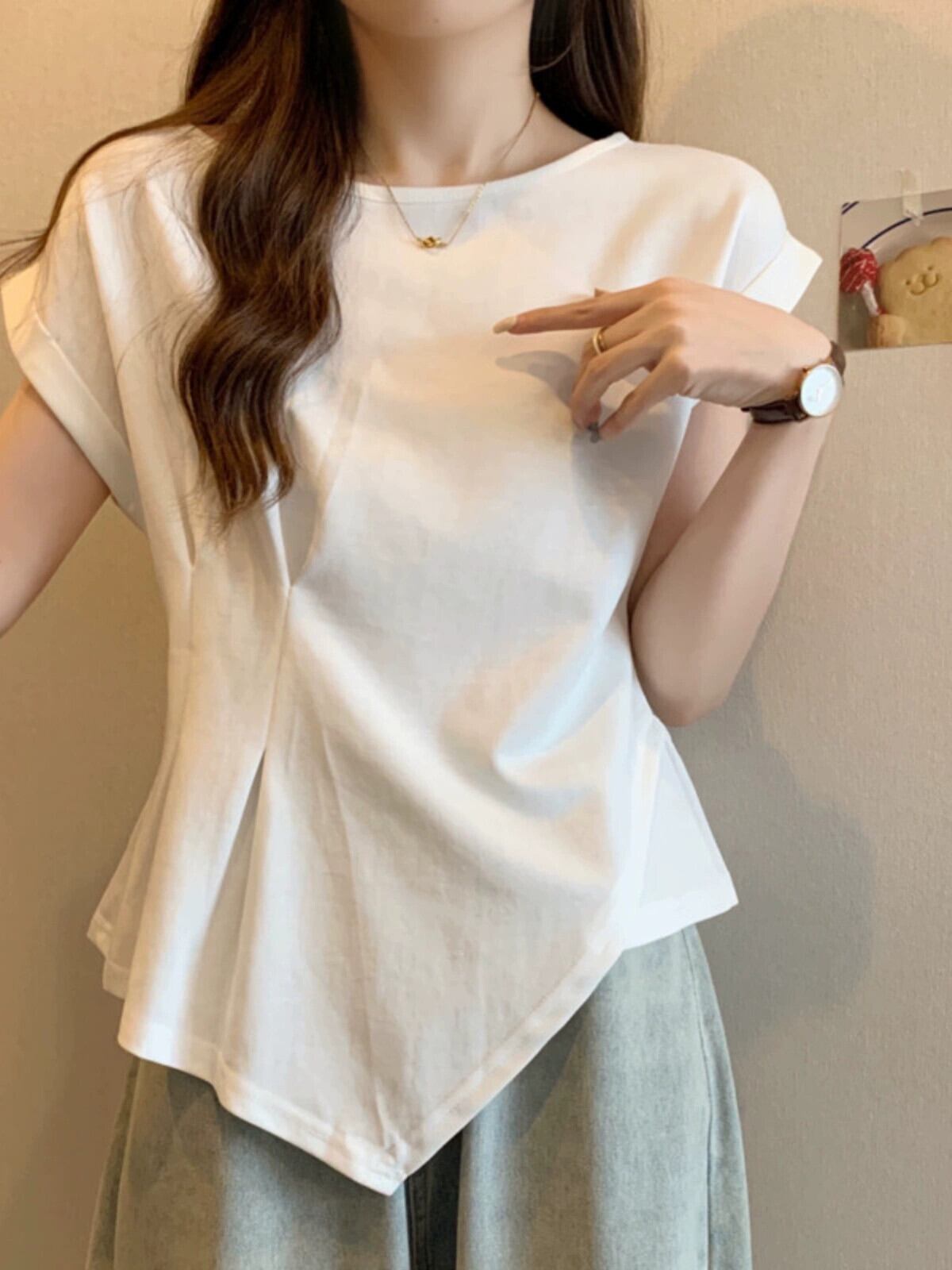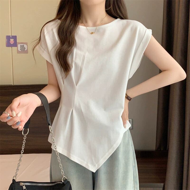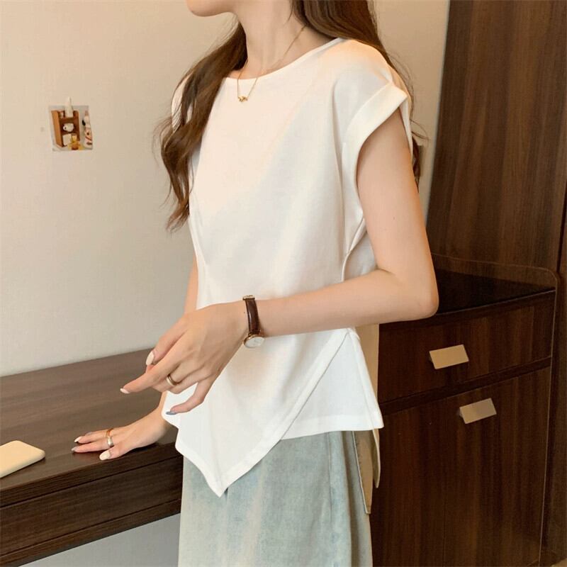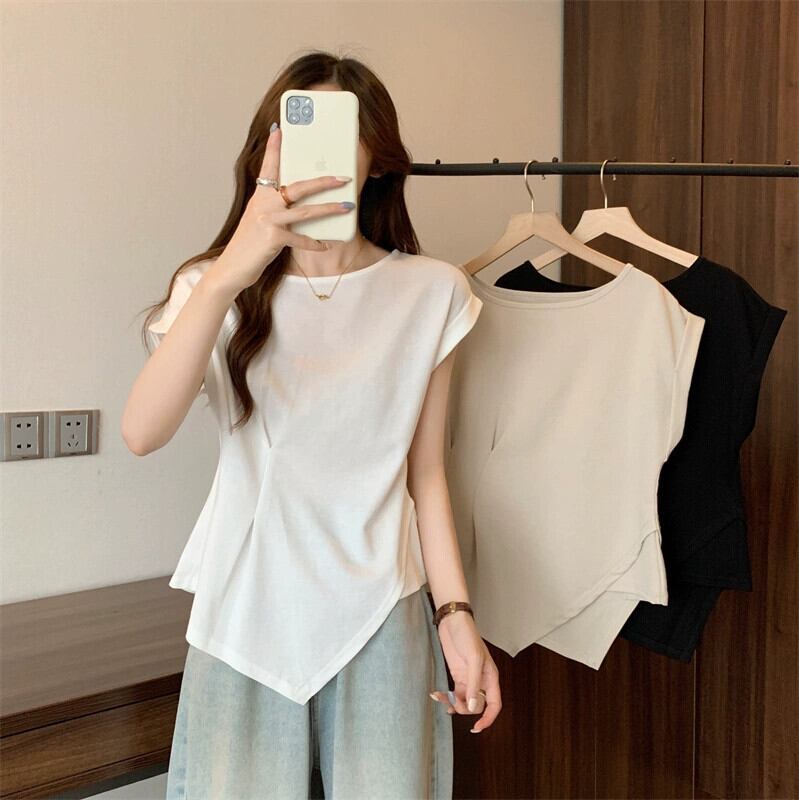 不規則な半袖 tシャツの女性の 2023 夏の新しいファッション西洋スタイルのデザインセンスウエスト痩身小さなフライングスリーブトップ サマー 夏物 7460073677059145 | framboise21