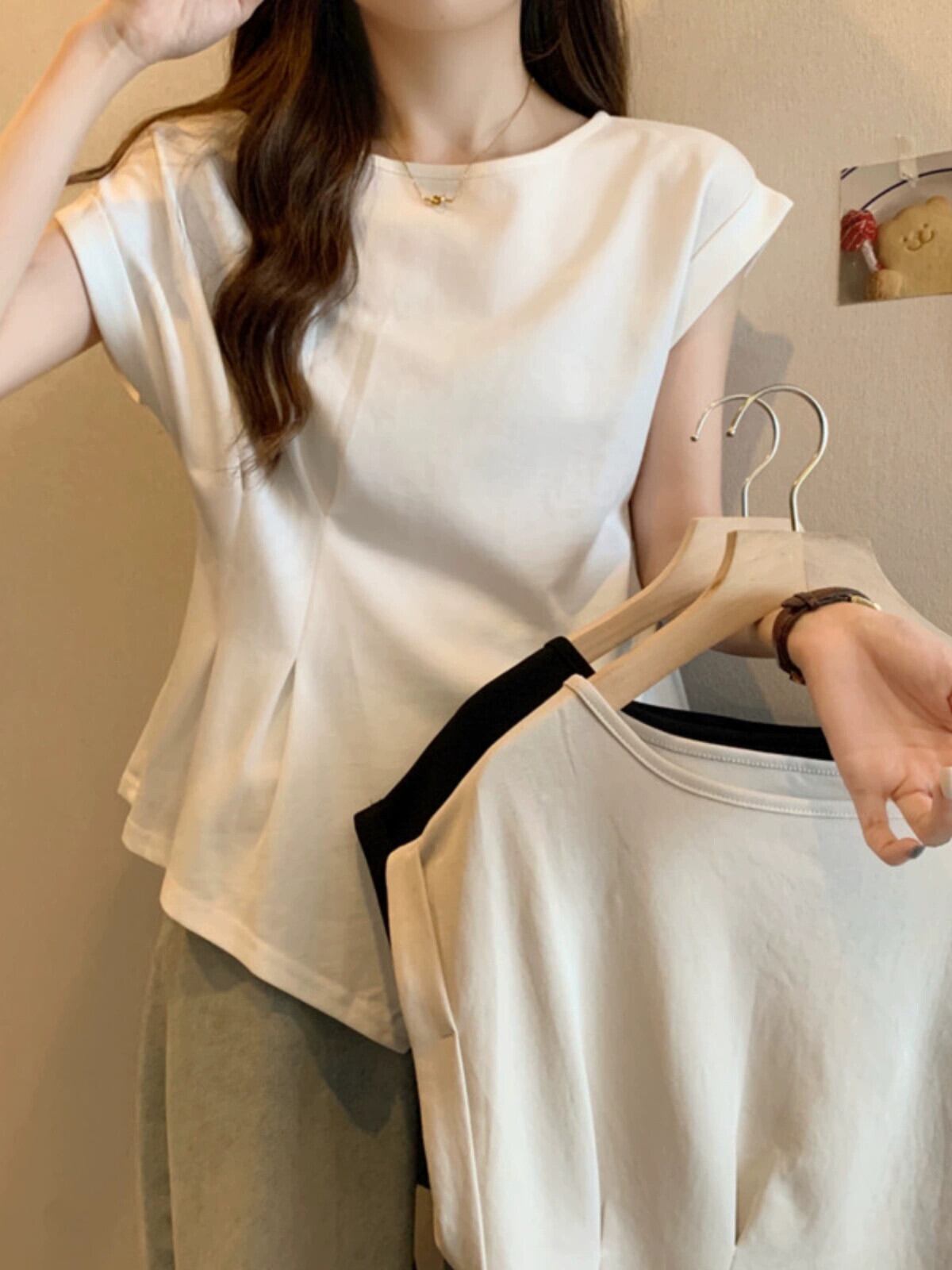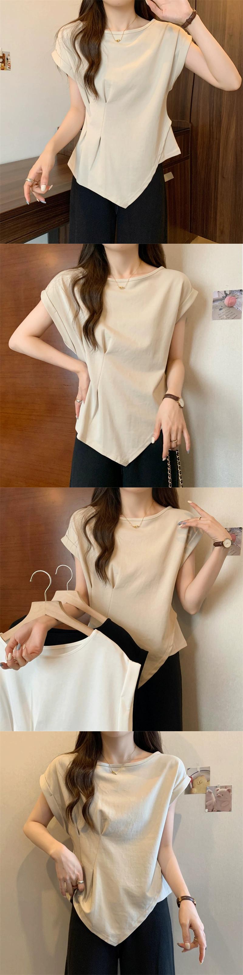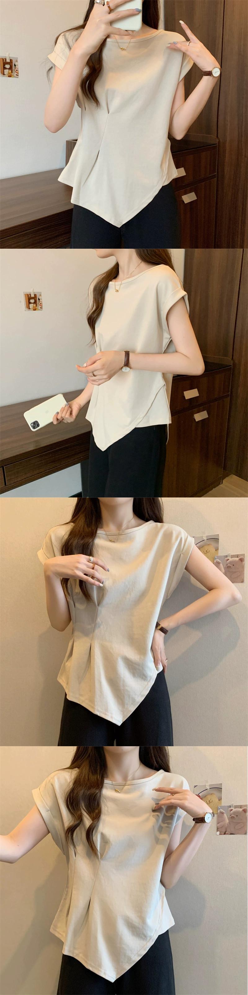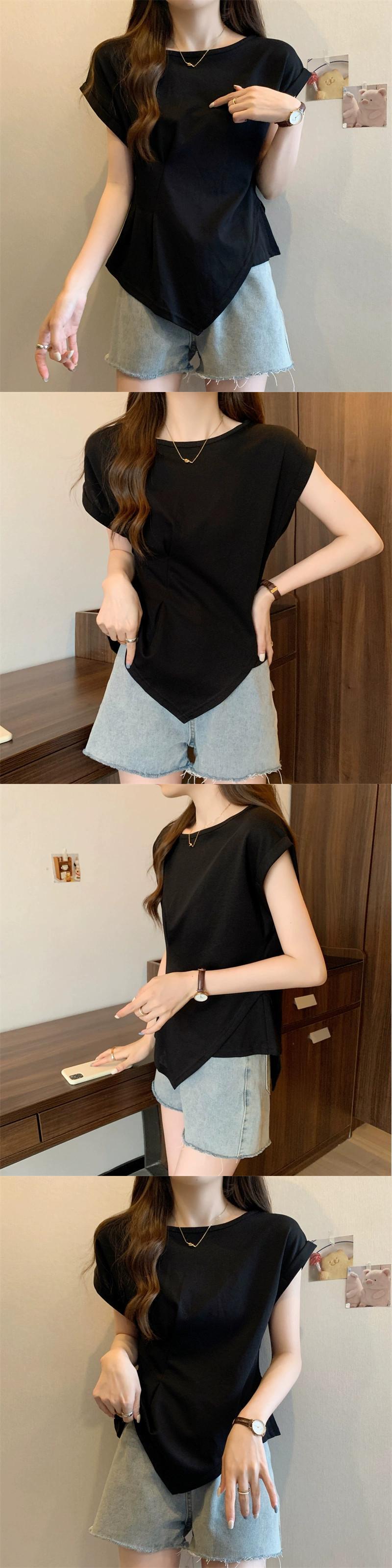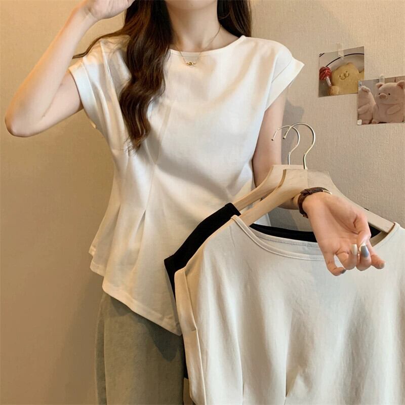 不規則な半袖 tシャツの女性の 2023 夏の新しいファッション西洋スタイルのデザインセンスウエスト痩身小さなフライングスリーブトップ サマー 夏物 7460073677059145 | framboise21
