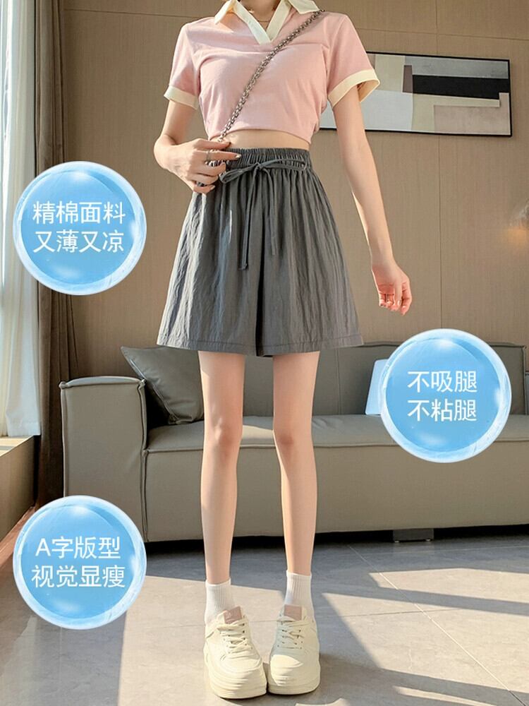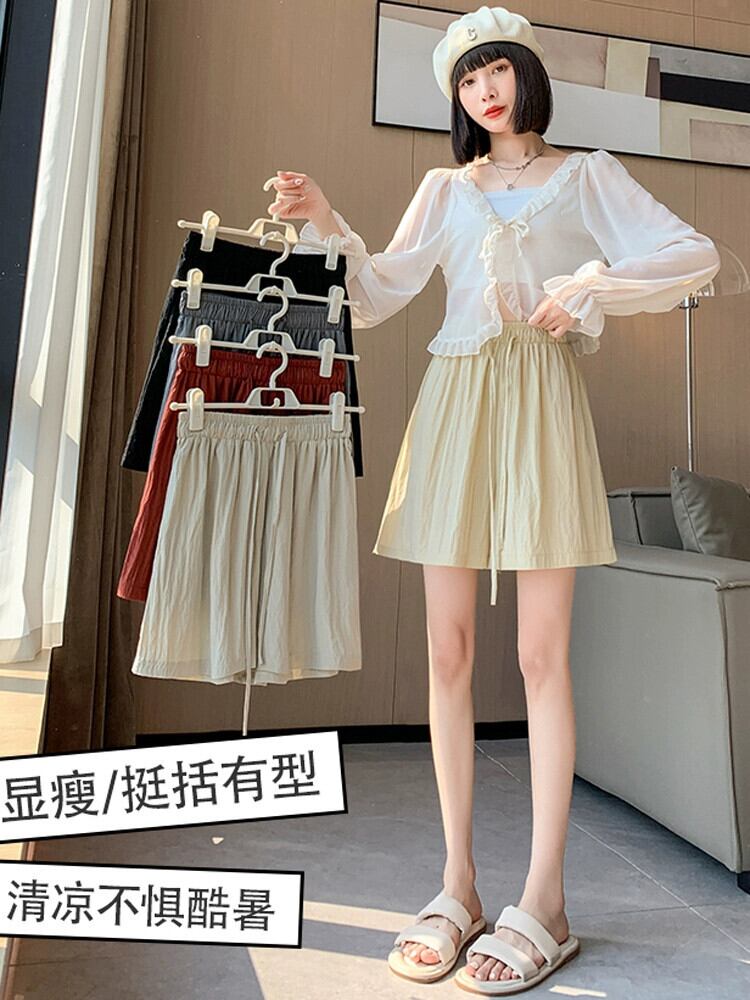 折りたたみアイスシルク 5 点ショーツ女性の 2023 夏の新しいルーズで薄いスタイルのストレート ハイウエスト カジュアル パンツ潮 サマー 夏物 ブルマー 7460035184818165 | framboise21