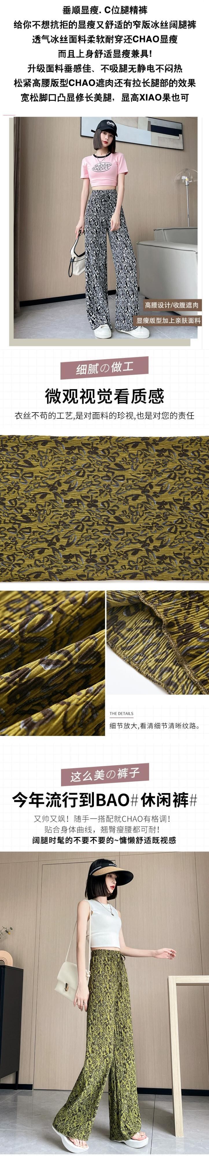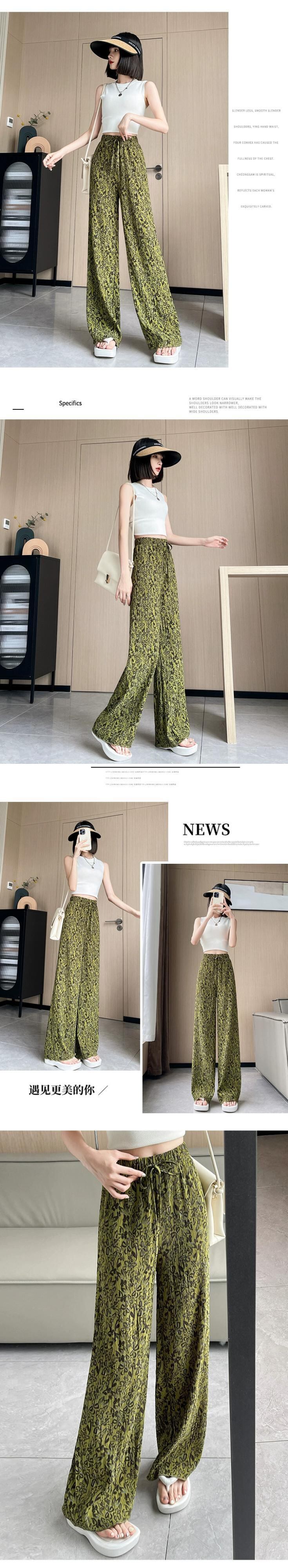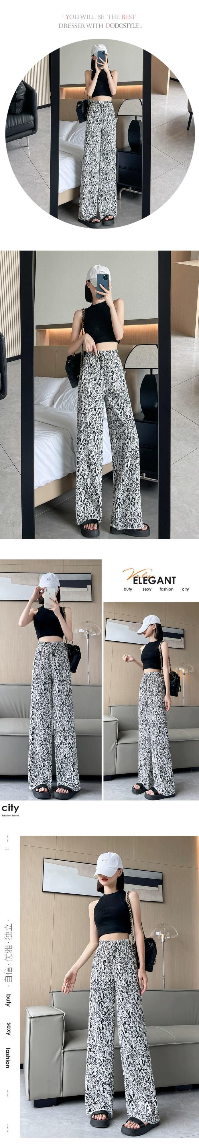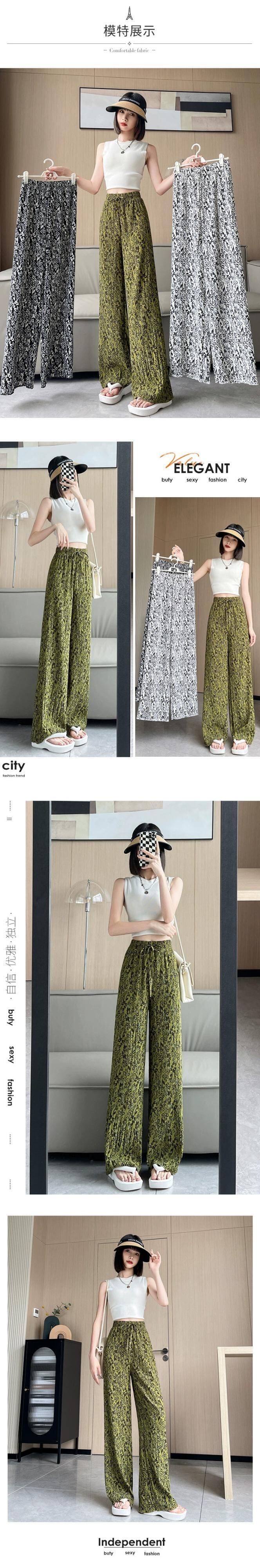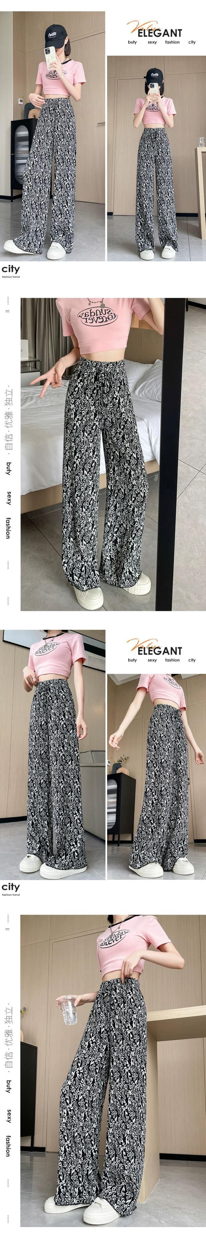 プリントアイスシルクワイドレッグパンツ女性の夏薄いルーズハイウエストドレープモップパンツカジュアルストレートクール日焼け止めパンツ ハイウェスト サマー 夏物 7460076557832751 | framboise21