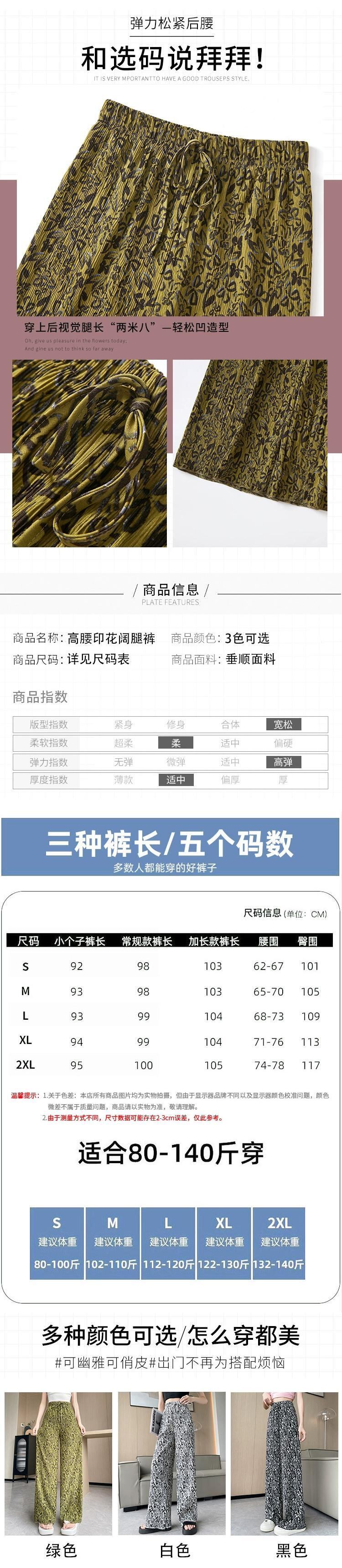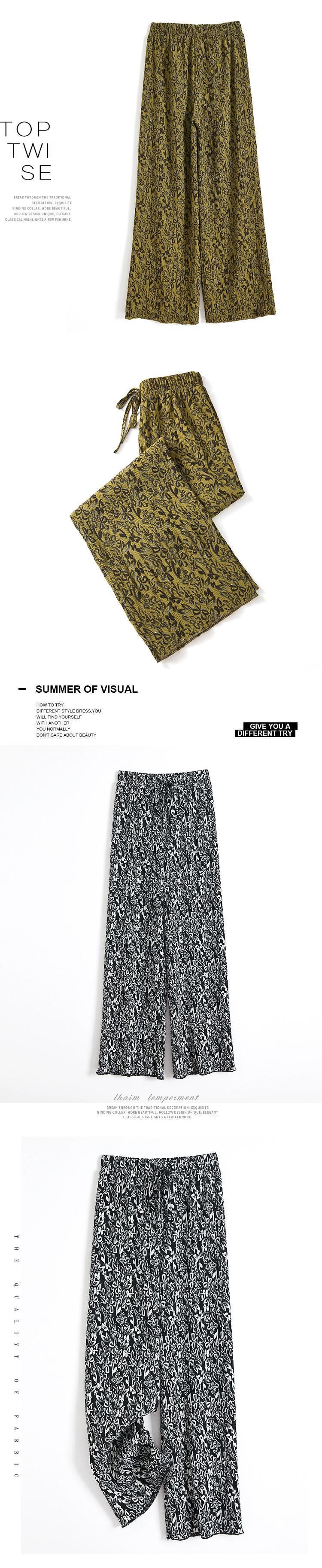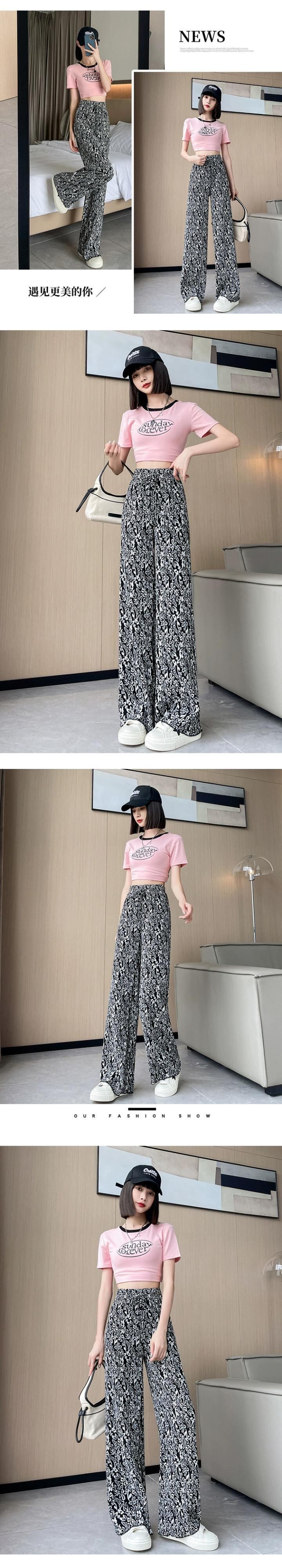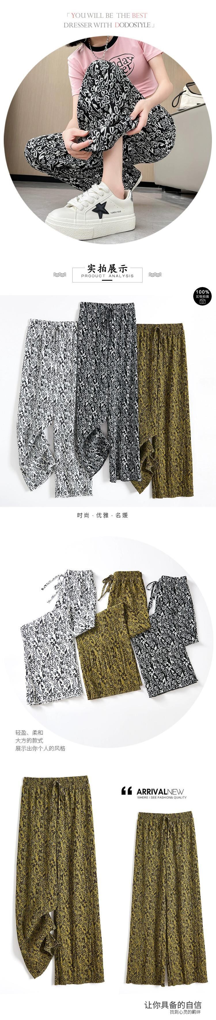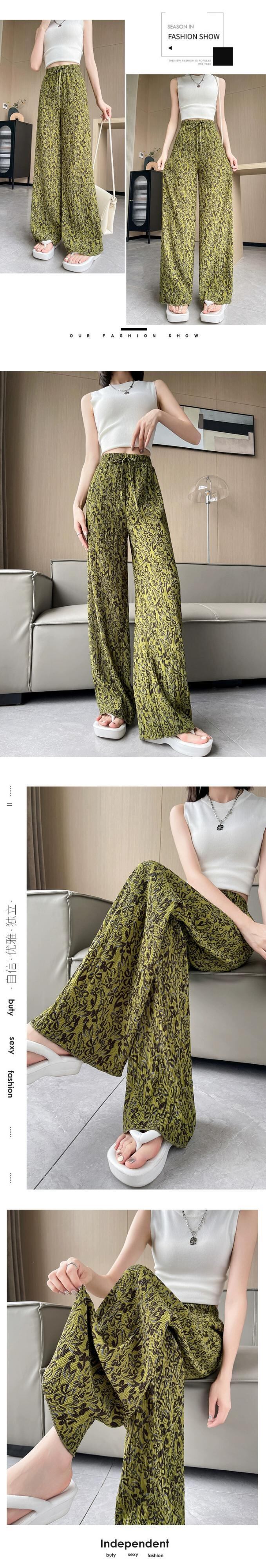 プリントアイスシルクワイドレッグパンツ女性の夏薄いルーズハイウエストドレープモップパンツカジュアルストレートクール日焼け止めパンツ ハイウェスト サマー 夏物 7460076557832751 | framboise21