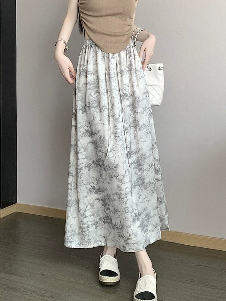 中国風水墨画スカートの女性の 2023 夏の新デザインセンスカジュアルスリム弾性ハイウエスト A ラインロングスカート ハイウェスト エラスティック 伸縮 サマー 夏物 Aライン 7460091047657937 | framboise21