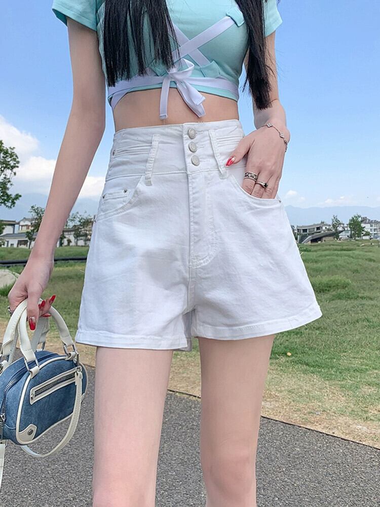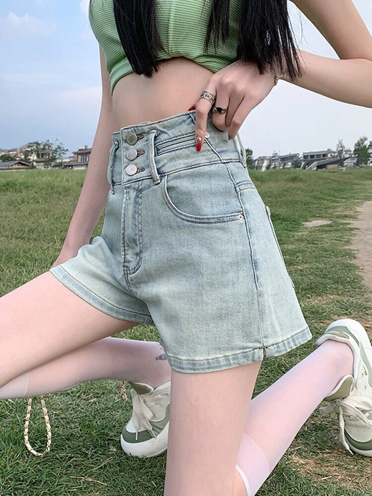 ウエストデニムショートパンツ レディース 夏 アウター 通勤 デザイン感 細身 ゆったり ライトブルー Aラインパンツ サマー 夏物 ショーツ ブルマー 7460097566638598 | framboise21
