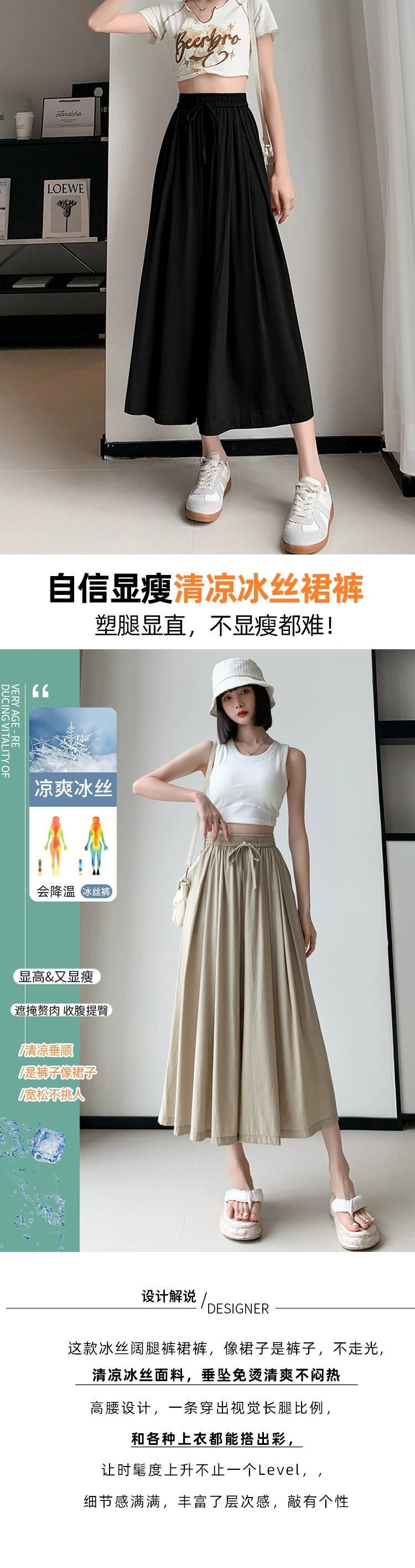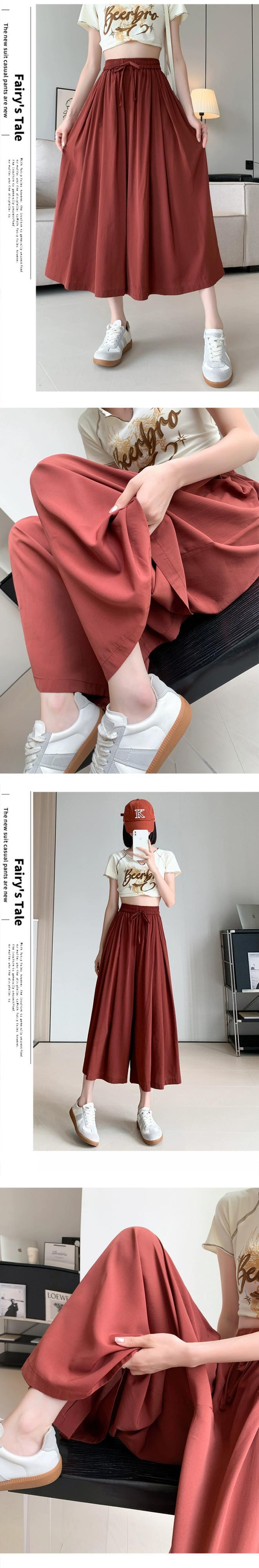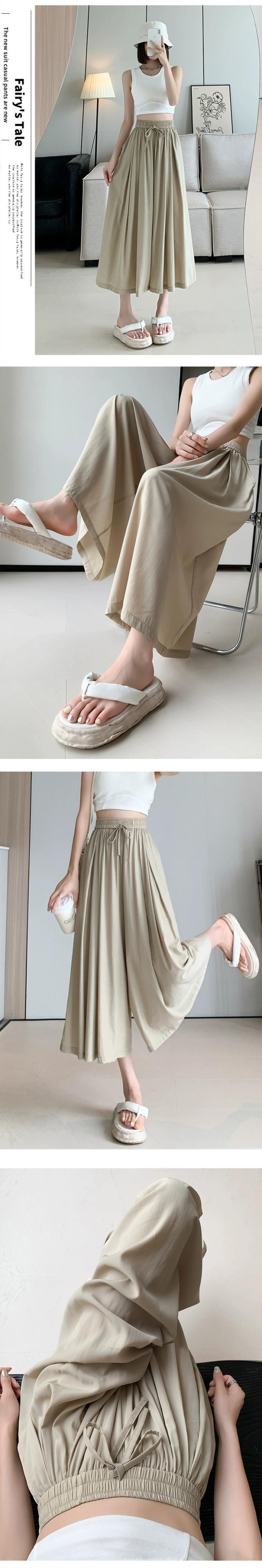 アイスシルク ワイドレッグパンツ レディース 夏 薄手 クロップドパンツ 小さめ カジュアル ハイウエスト ドレープ 巾着 ウエストゴム 袴 ブラック ハイウェスト エラスティック 伸縮 サマー 夏物 7460013465769300 | framboise21
