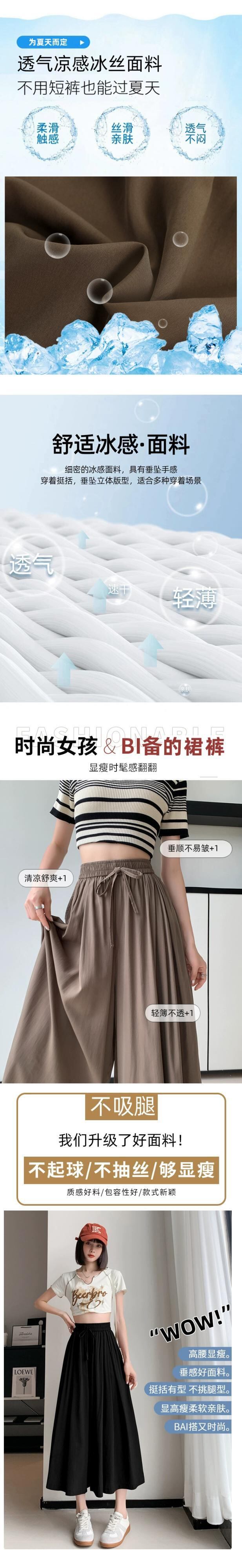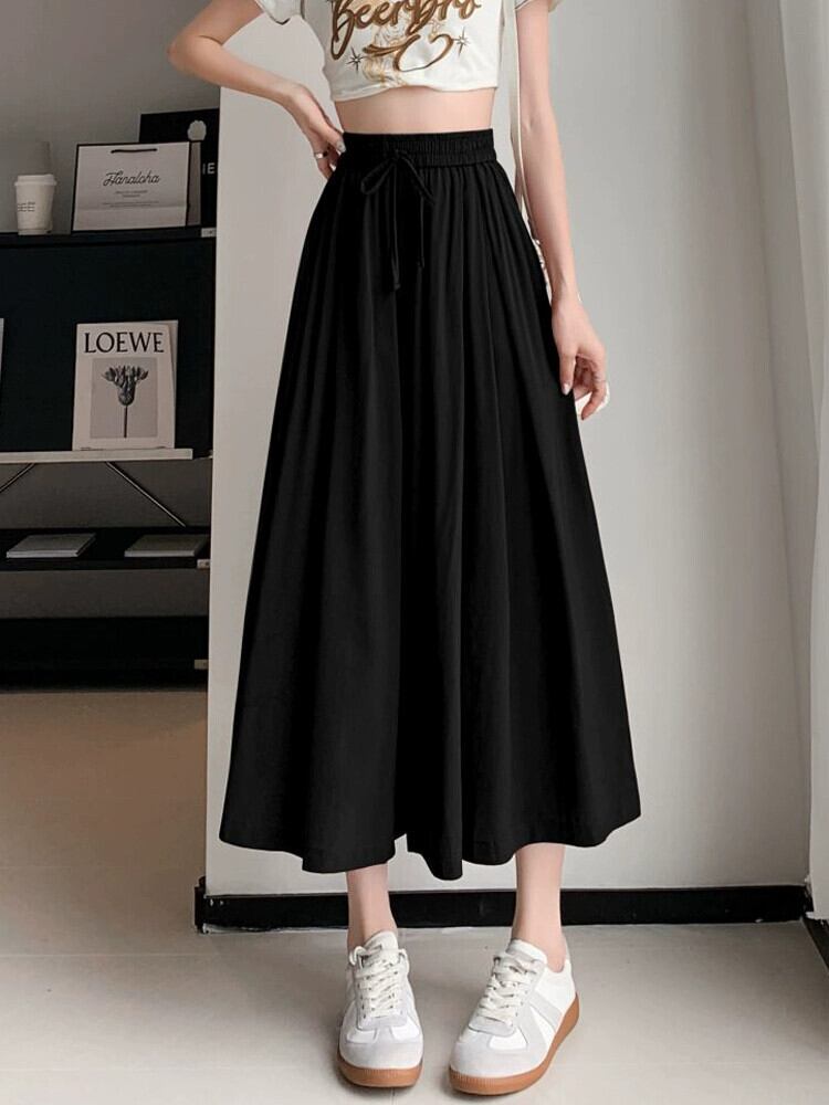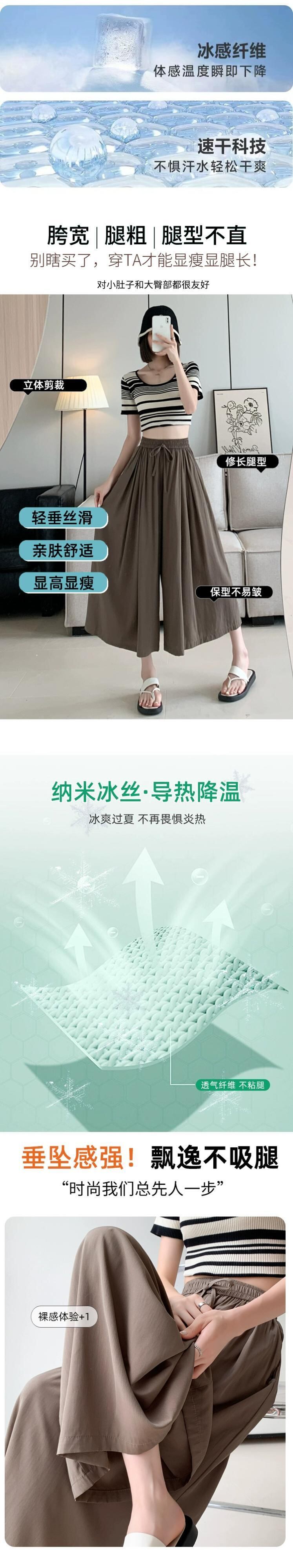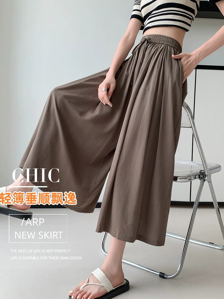 アイスシルク ワイドレッグパンツ レディース 夏 薄手 クロップドパンツ 小さめ カジュアル ハイウエスト ドレープ 巾着 ウエストゴム 袴 ブラック ハイウェスト エラスティック 伸縮 サマー 夏物 7460013465769300 | framboise21