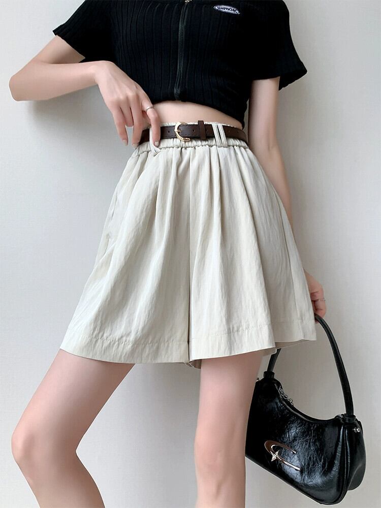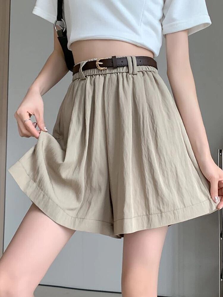カーキ アイス シルク 5 点ショーツ レディース 夏 薄い ワイドレッグ プリーツ パンツ ルーズ スリム ハイウエスト コットンとリネン カジュアル パンツ サマー 夏物 ブルマー 7460026997424278 | framboise21