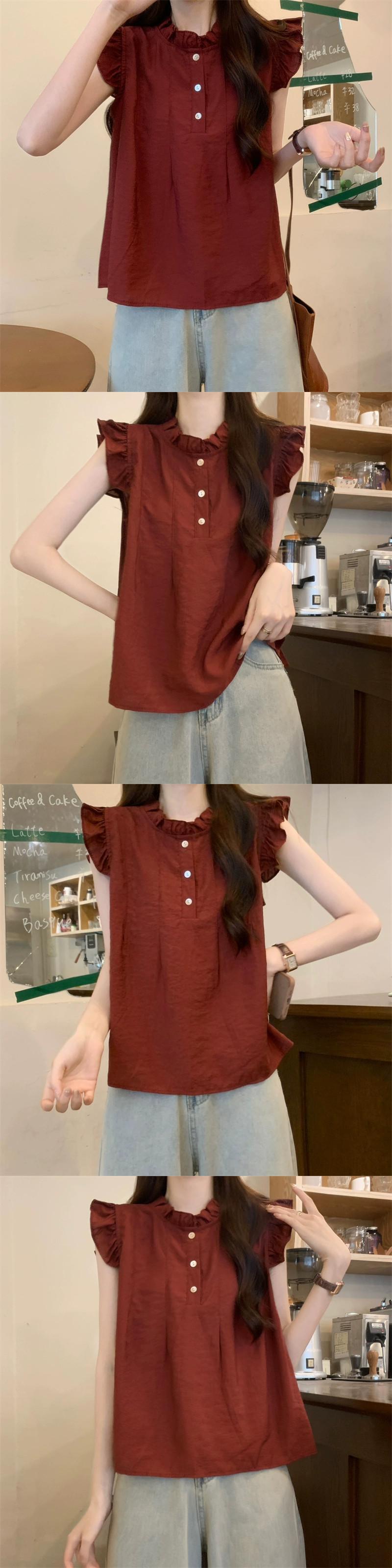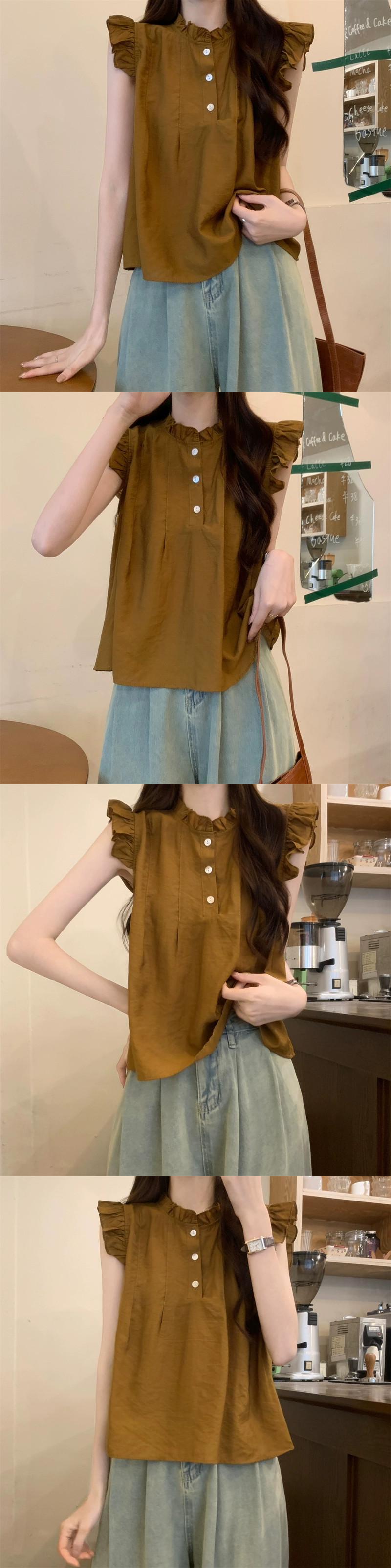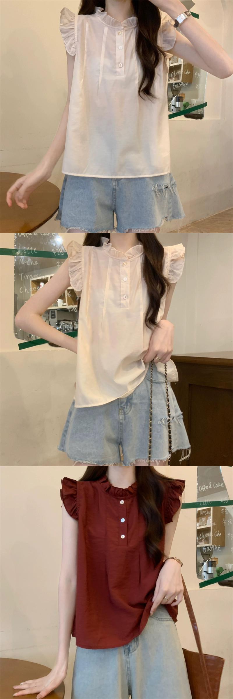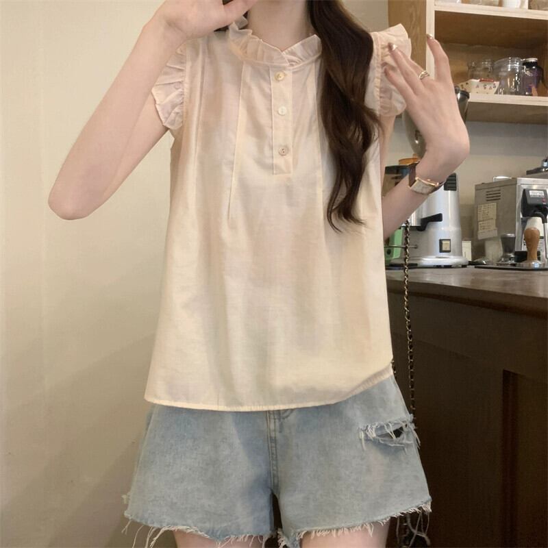 白いノースリーブシャツ女性の夏のファッションアインスタイルデザインセンスニッチルーズ薄いセクションフリル小さなフライングスリーブトップ ホワイト サマー 夏物 7460093627976624 | framboise21