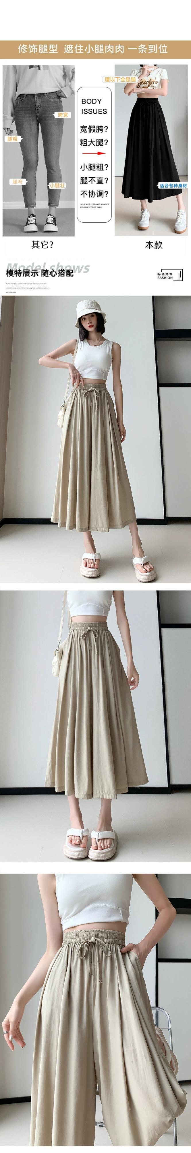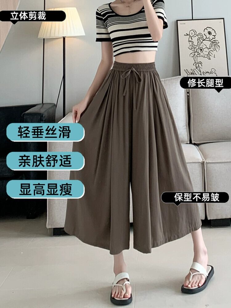 アイスシルクキュロットレディース 2023 新作夏薄セクションドレープパンツ小さなカジュアルハイウエスト 8 点ワイドレッグパンツ ハイウェスト サマー 夏物 7460051086792687 | framboise21