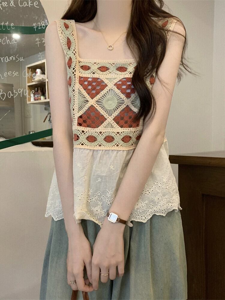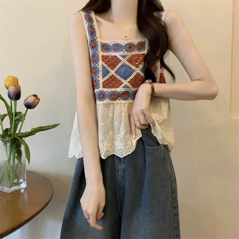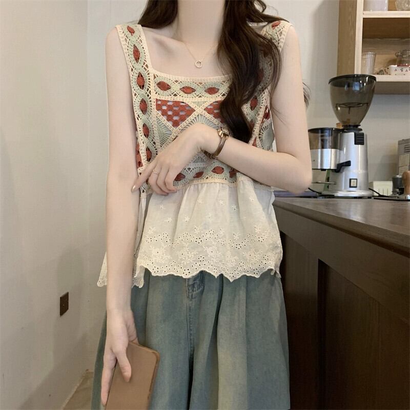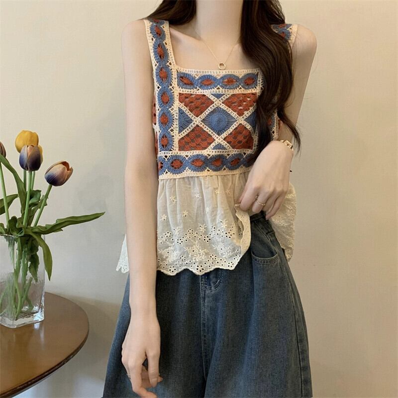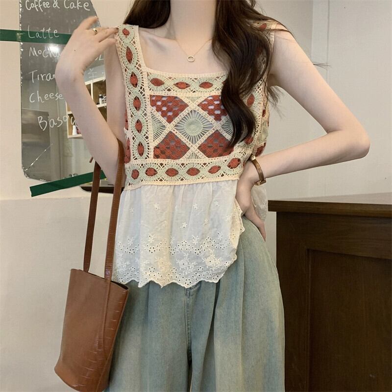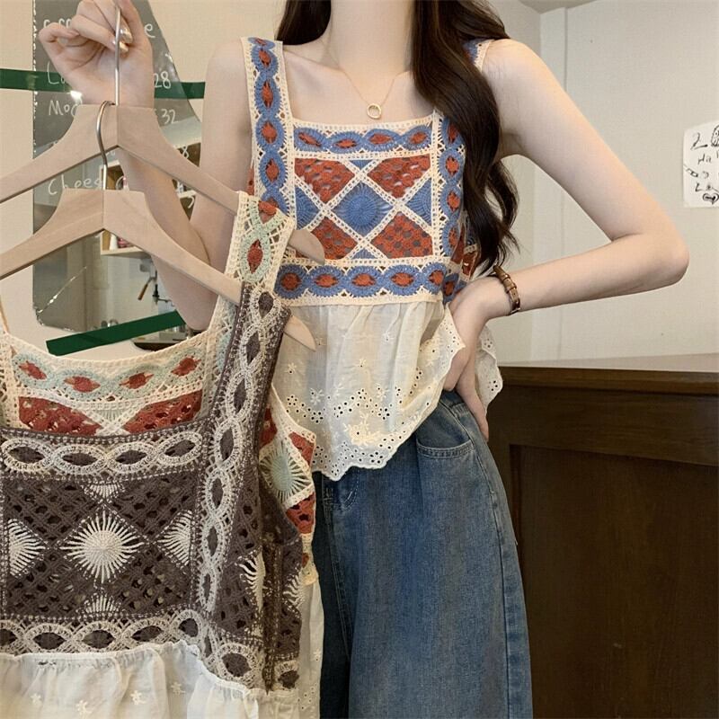 チェーンリンクフラワー中空キャミソールレディース 2023 年夏新作アウター Eign スタイルのデザイン感のあるゆったりとしたインナーショートトップ サマー 夏物 フラワーデザイン 746006849193347 | framboise21