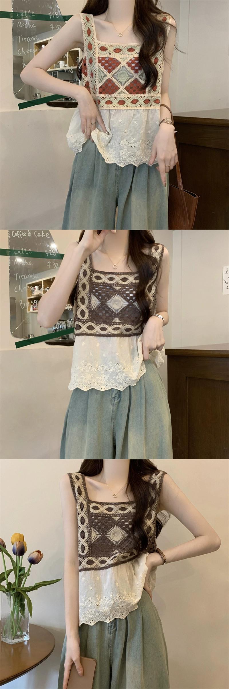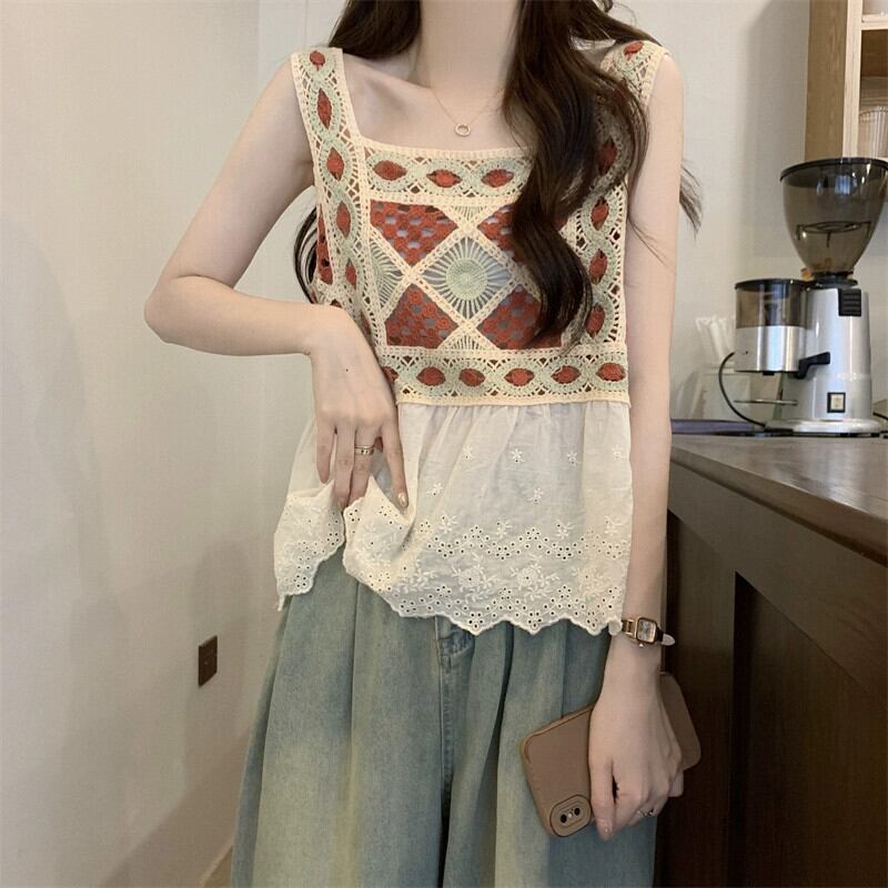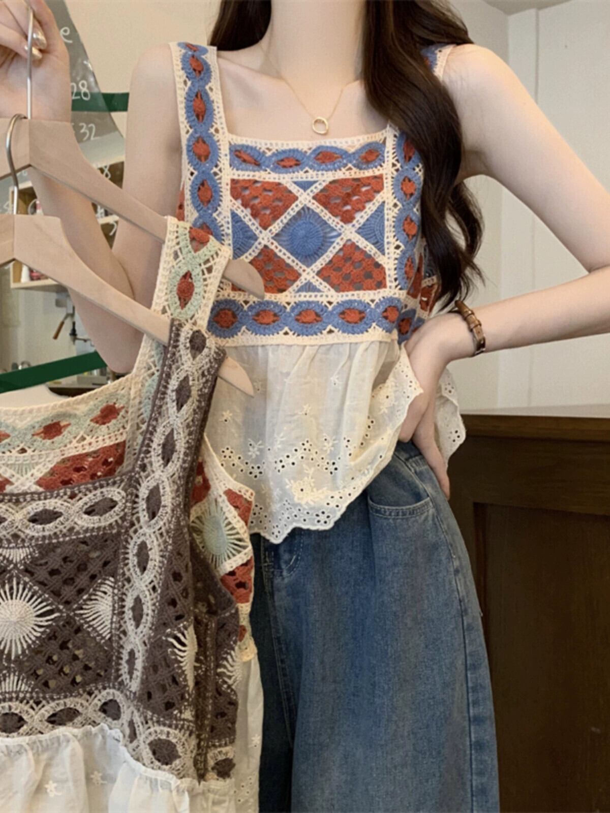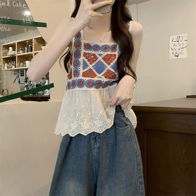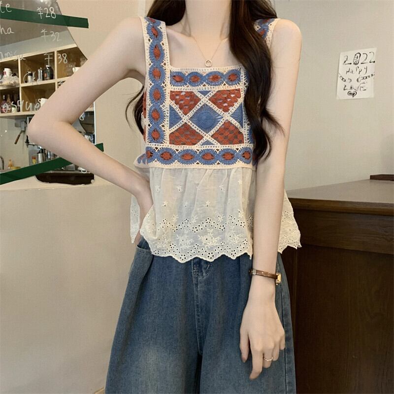 チェーンリンクフラワー中空キャミソールレディース 2023 年夏新作アウター Eign スタイルのデザイン感のあるゆったりとしたインナーショートトップ サマー 夏物 フラワーデザイン 746006849193347 | framboise21