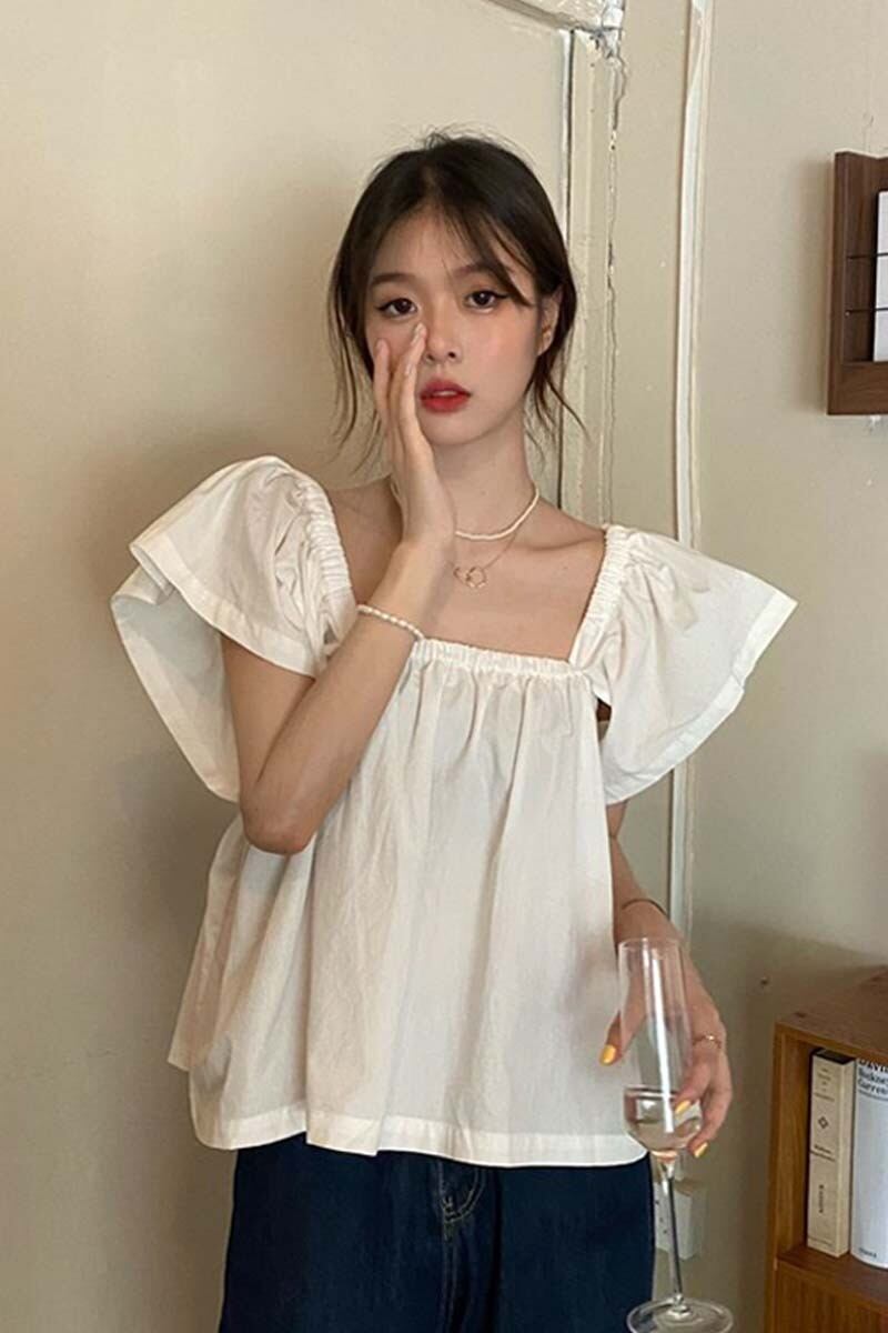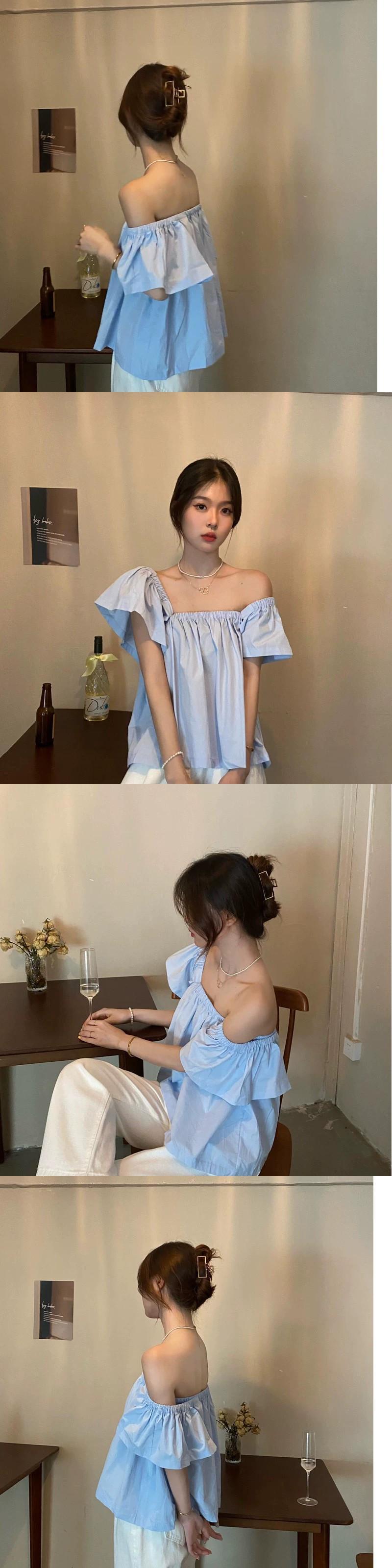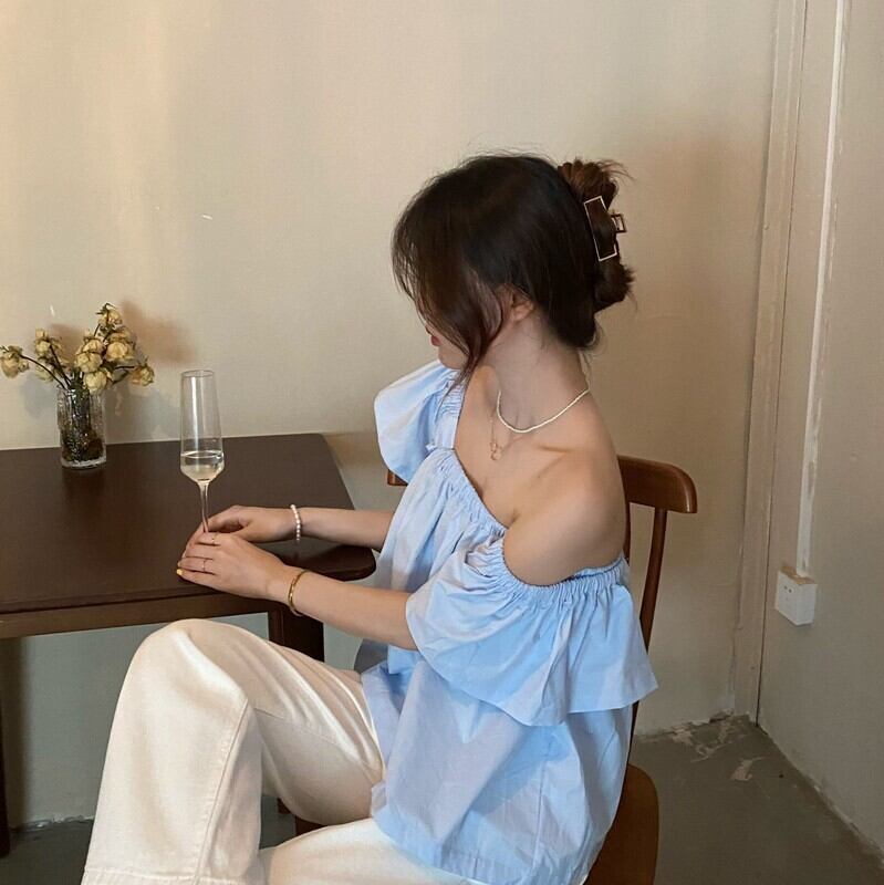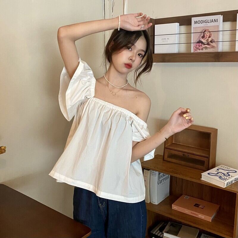 ルーズスクエアカラー半袖シャツレディース夏アインスタイルファッションデザインワンショルダーチューブトップショートシャツ サマー 夏物 スクウェア 7460096491569035 | framboise21