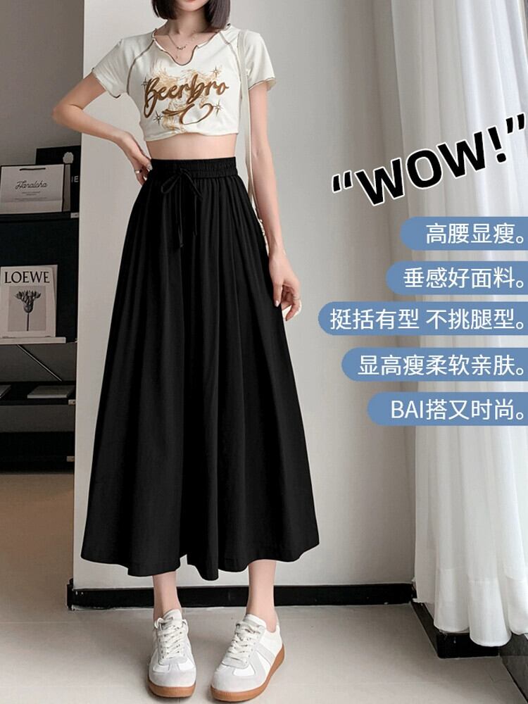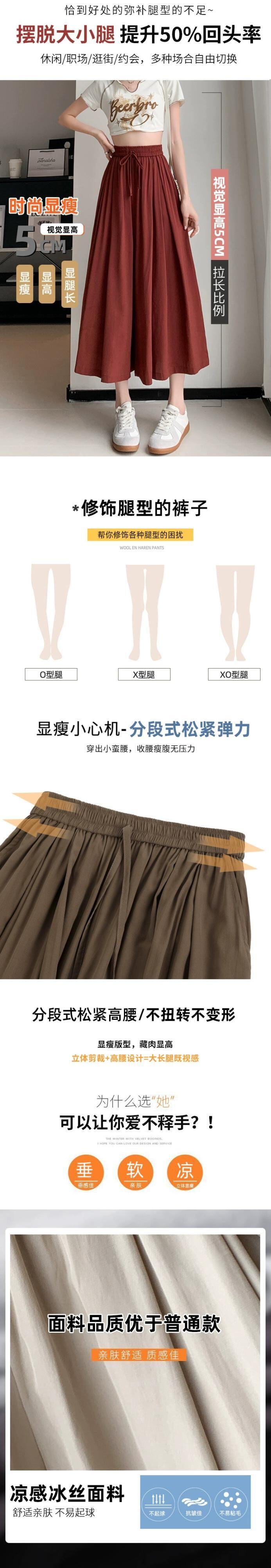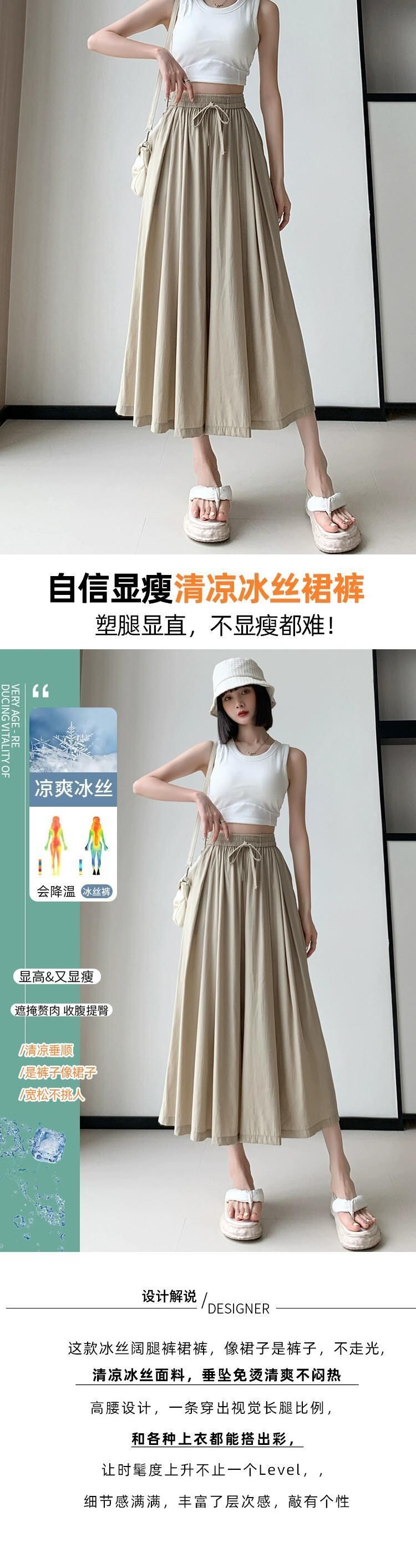 アイスシルクワイドレッグパンツの狭いバージョン 2023 新しい夏の女性の薄いパンツルーズカジュアルハイウエスト 8 ポイントスカートパンツ サマー 夏物 7460086718907654 | framboise21