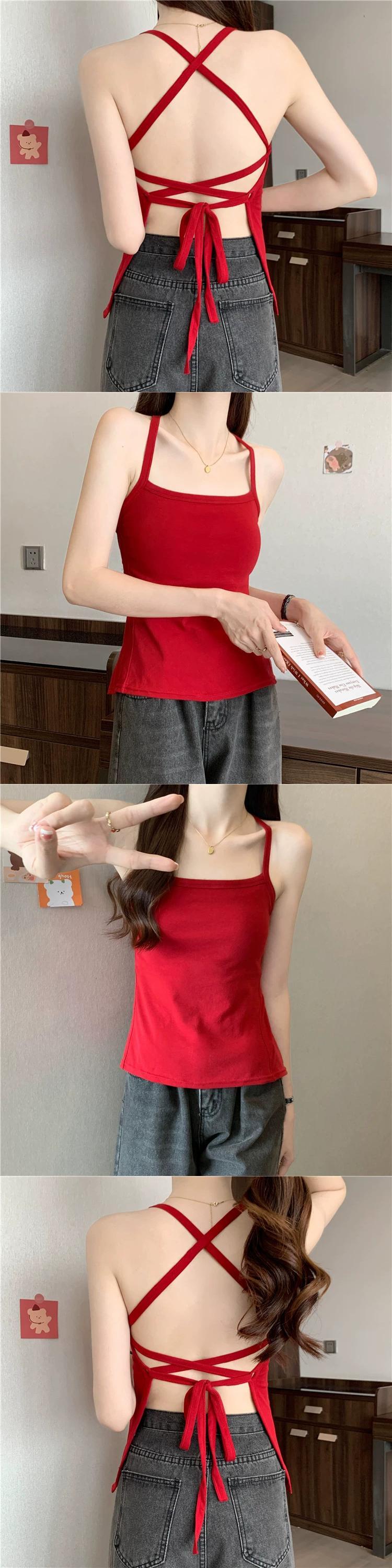ホルターネック キャミソール レディース 夏 インナー 胸パッド付き クロス 美 バック 下着 セクシー アウター チューブトップ トップ サマー 夏物 7460097054960264 | framboise21