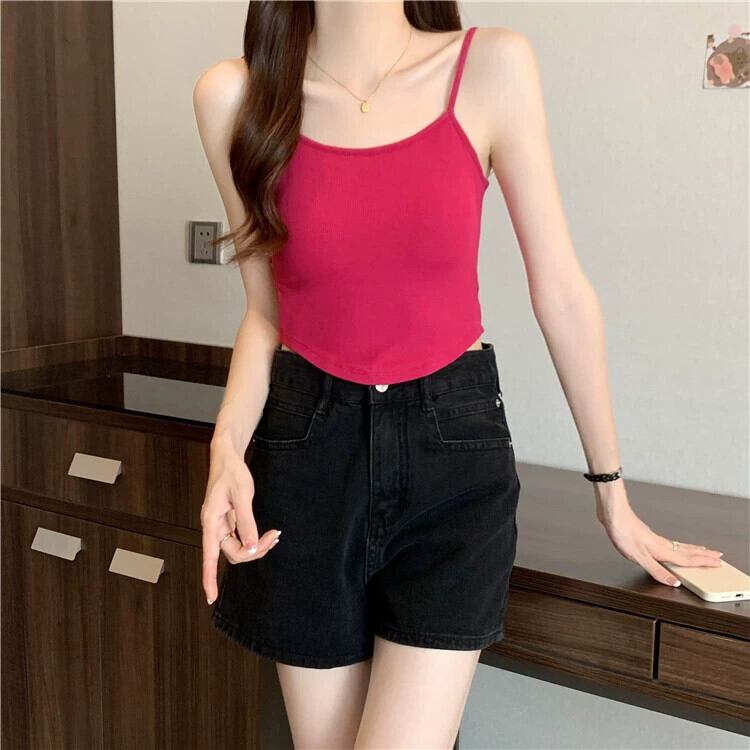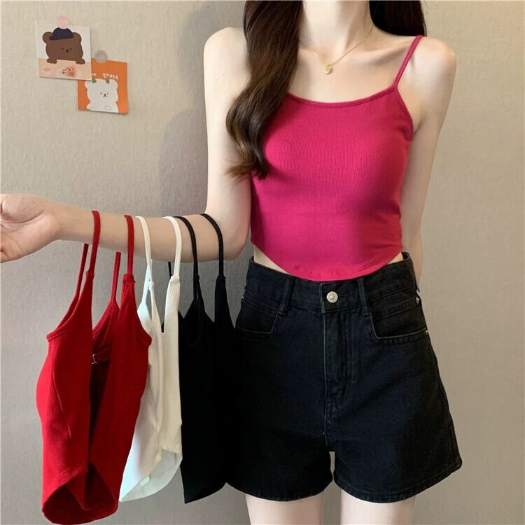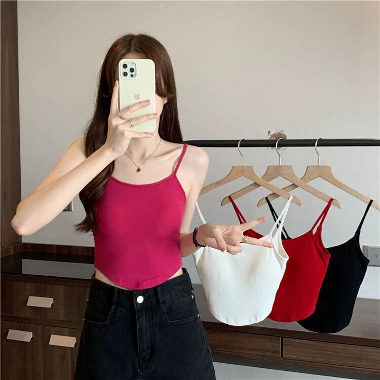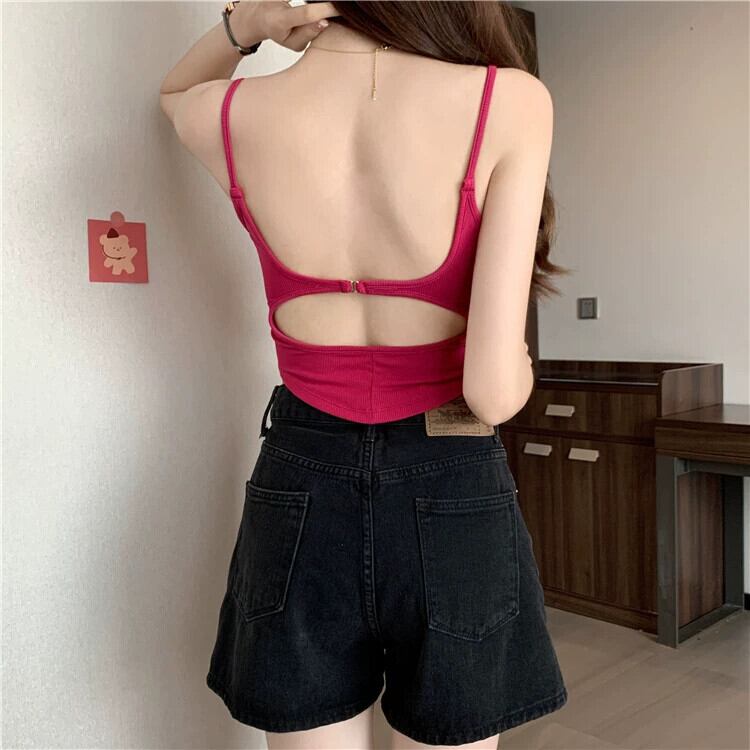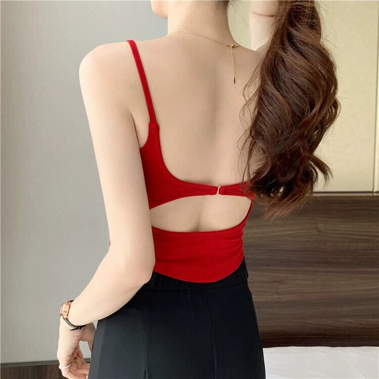 空洞美背中キャミソール レディース 夏 アウター デザイン感 インナー ボトニング ショートイレギュラートップス 胸パッド付き サマー 夏物 7460094852491539 | framboise21