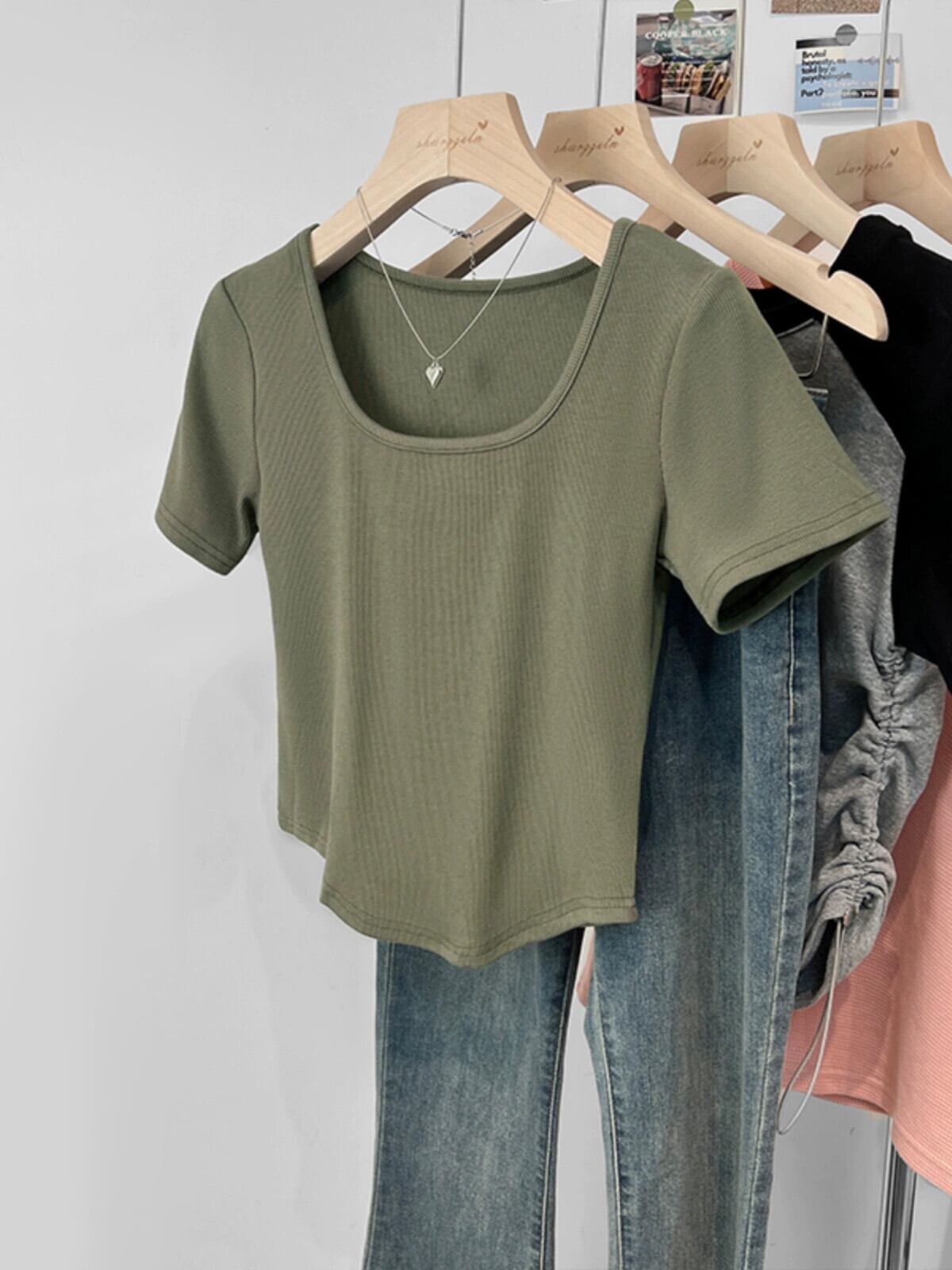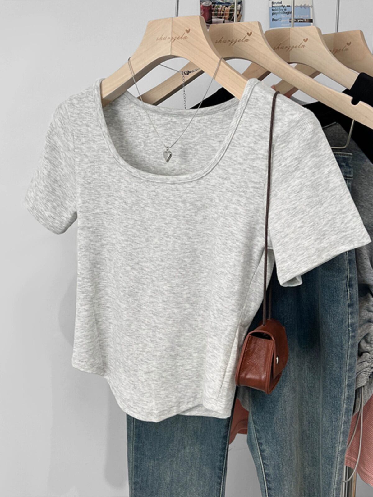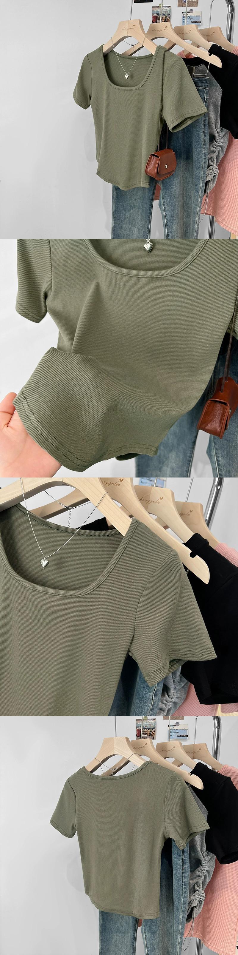 カーブヘムフロントショルダー半袖Tシャツレディース2023年夏新デザインセンススリムフィットと薄いショートスクエアカラートップ サマー 夏物 スクウェア 7460030664745524 | framboise21