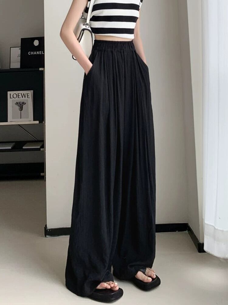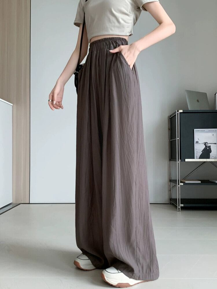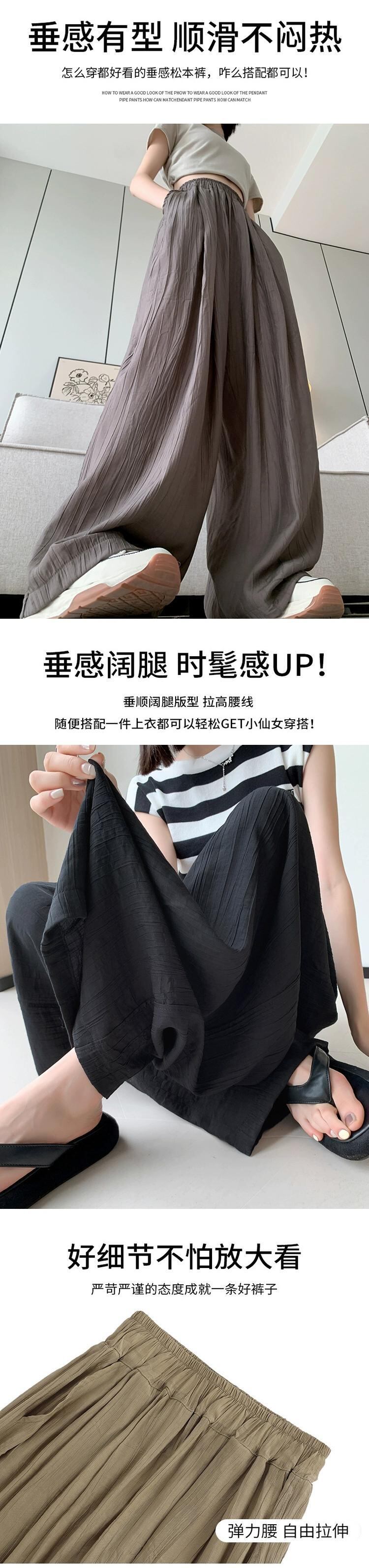 プリーツアイスシルクワイドレッグパンツレディース夏薄部エセコットンリネンパンツストレートハイウエストドレープテクスチャーカジュアルパンツ ハイウェスト サマー 夏物 7460042638229118 | framboise21