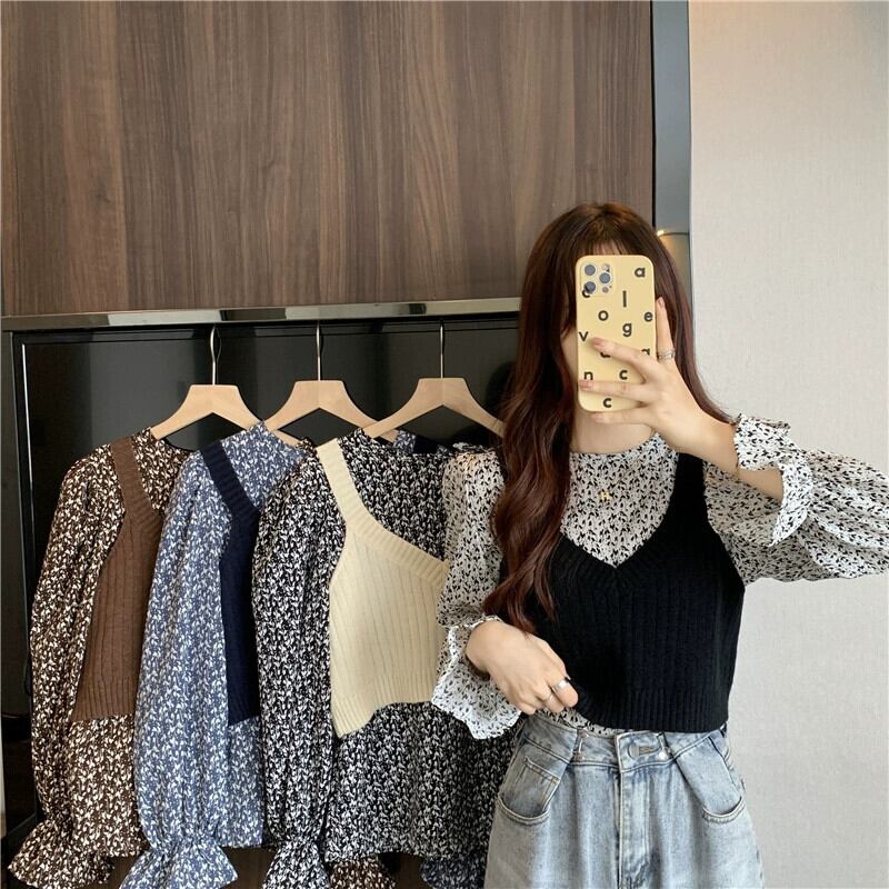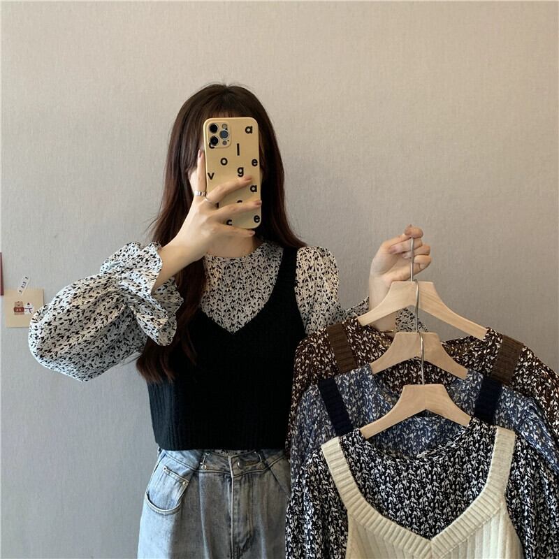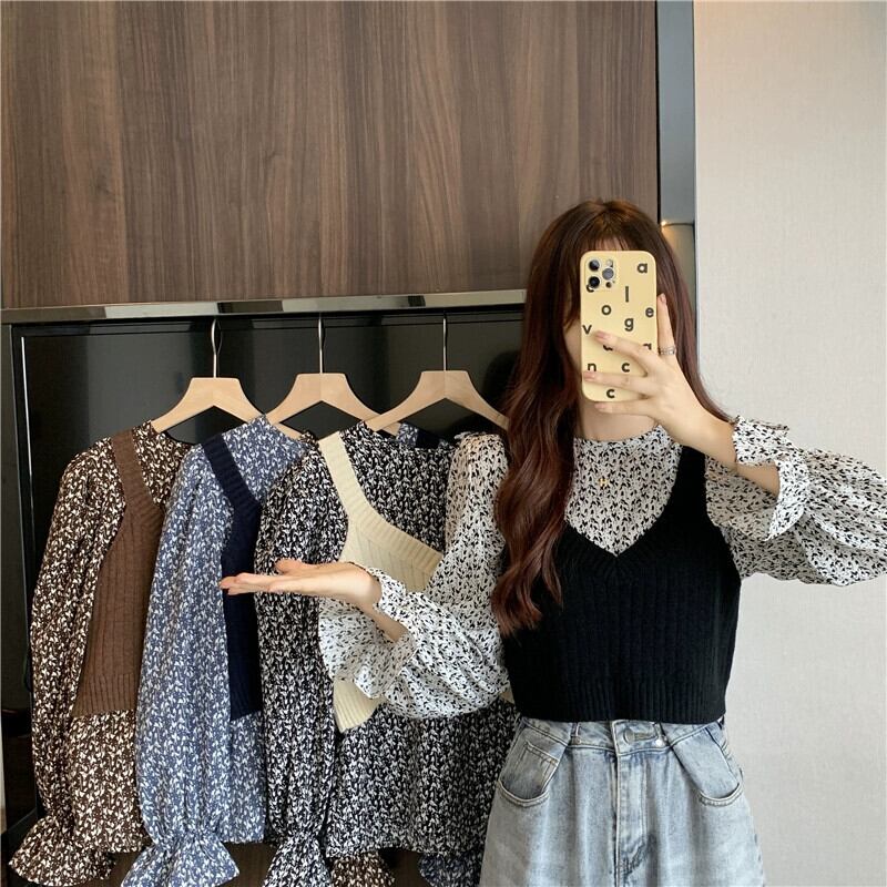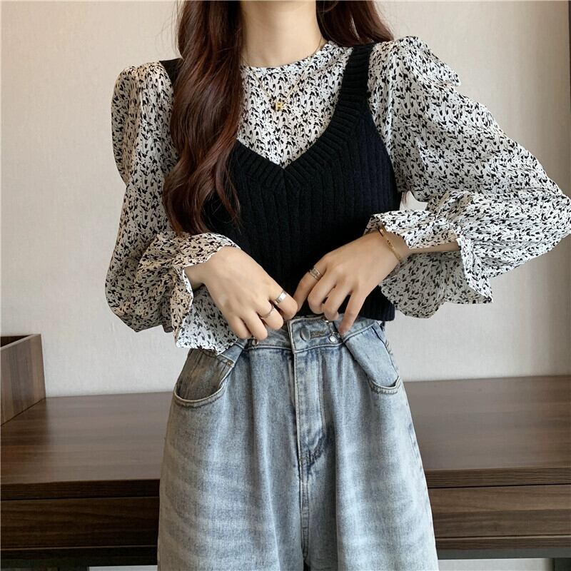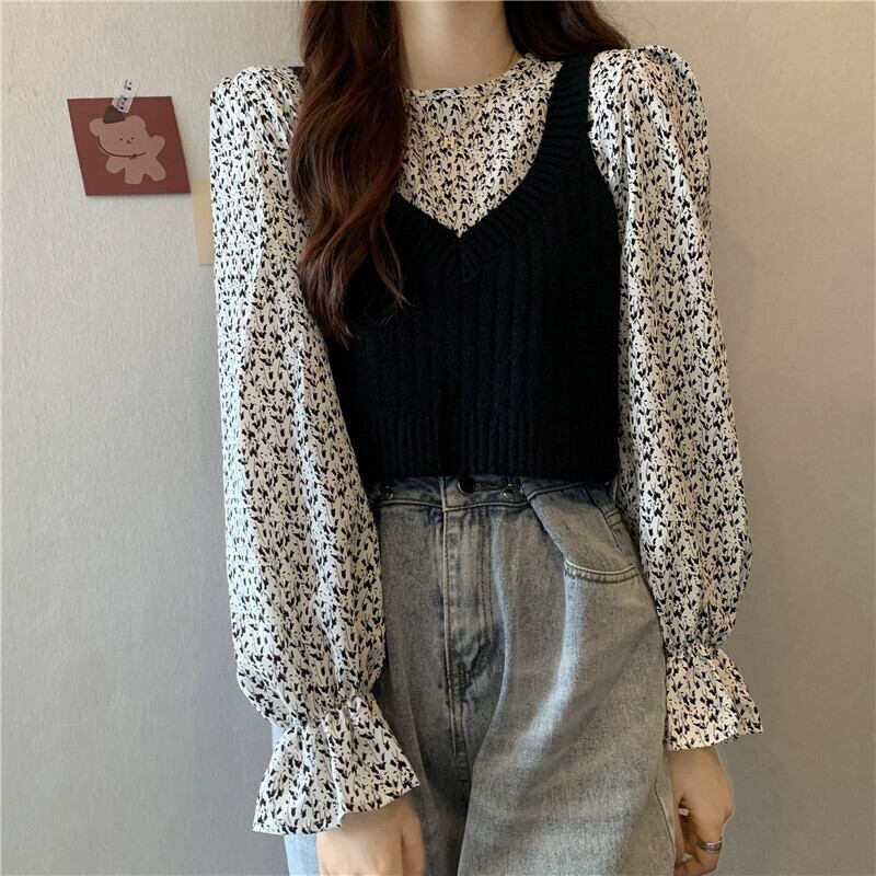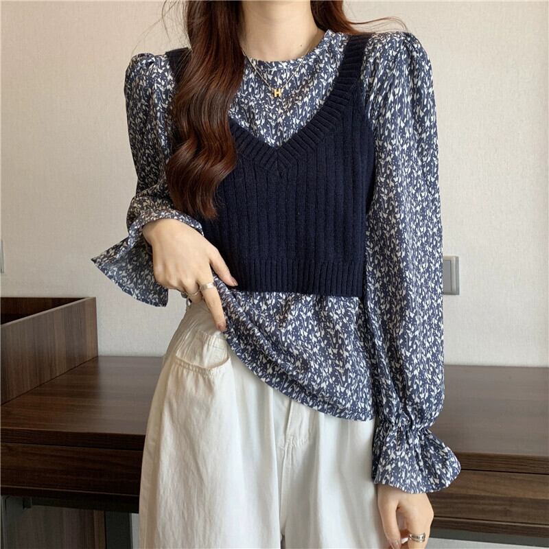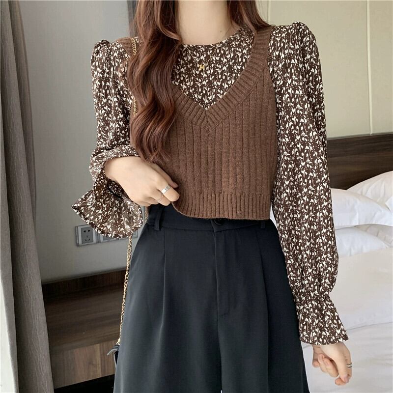 ニットベストベスト女性新 2023 春と秋スタイルのレトロなデザインアウター重ね着スモールトップ 2 点セット スプリング 春物 オータム 秋物 746003651687112 | framboise21