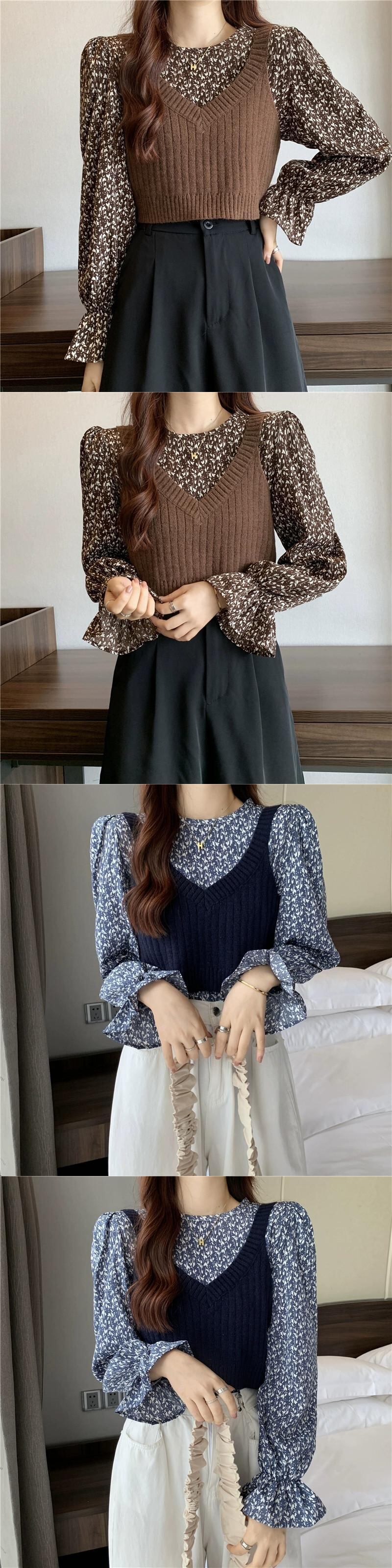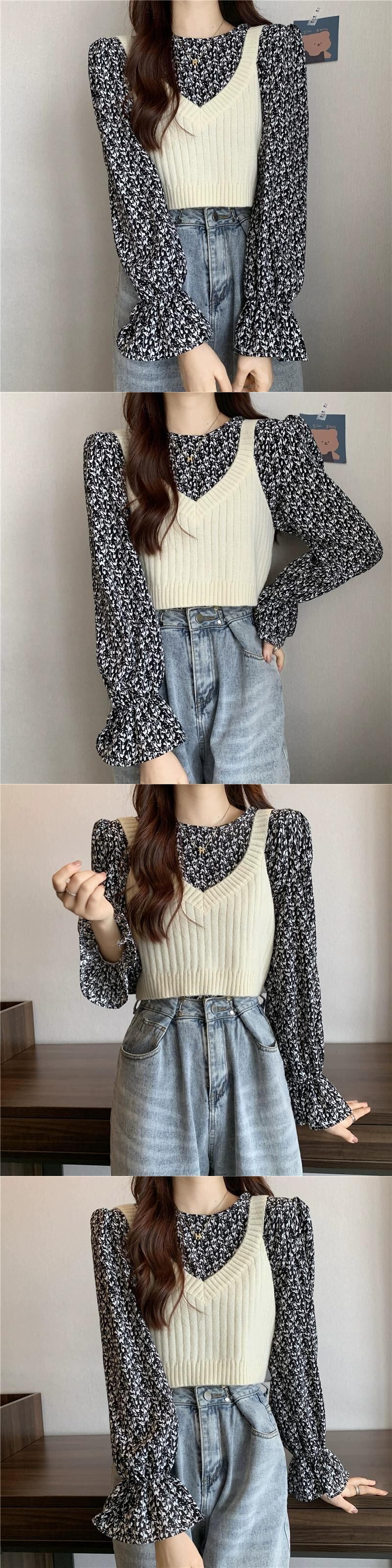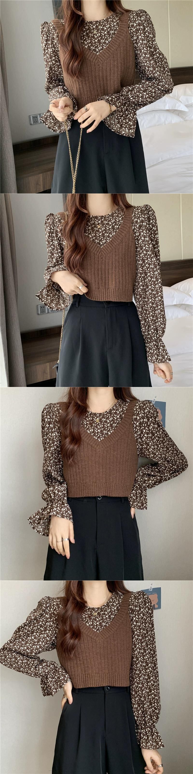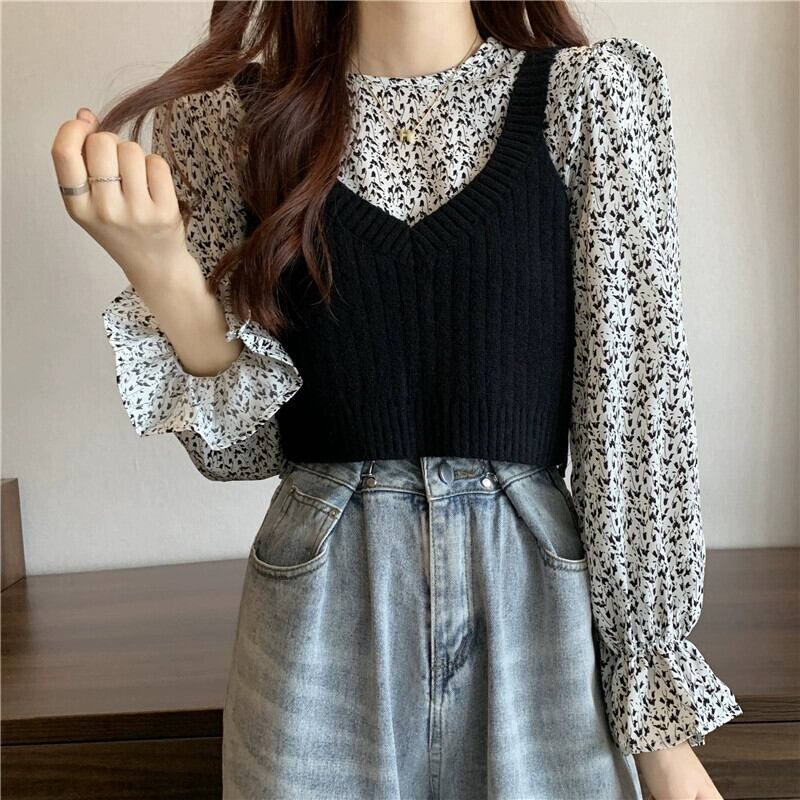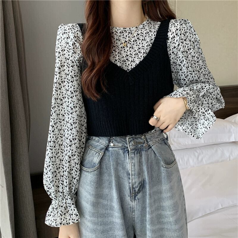 ニットベストベスト女性新 2023 春と秋スタイルのレトロなデザインアウター重ね着スモールトップ 2 点セット スプリング 春物 オータム 秋物 746003651687112 | framboise21