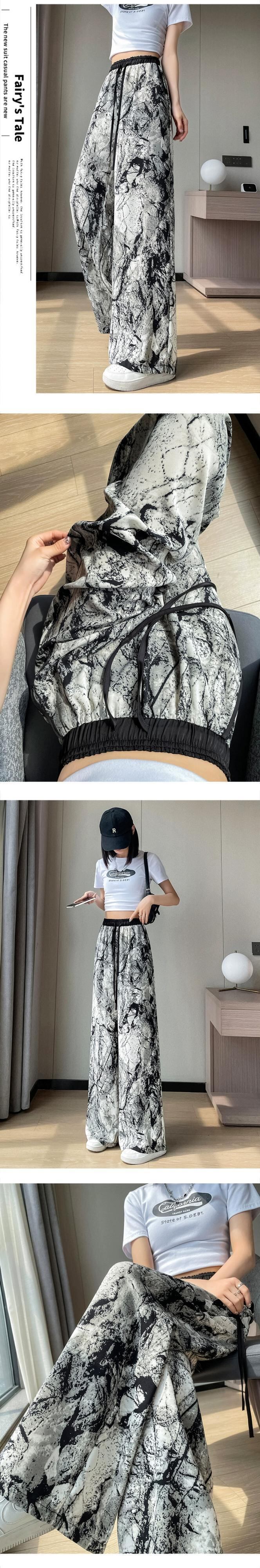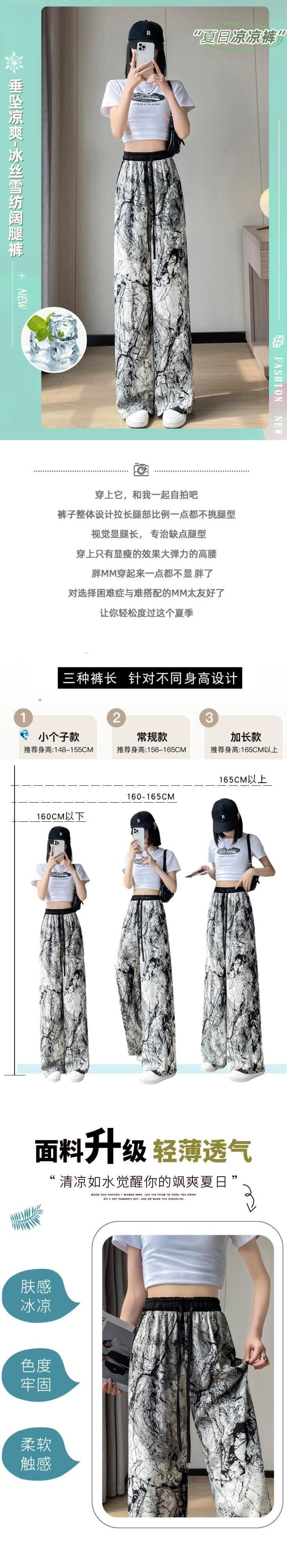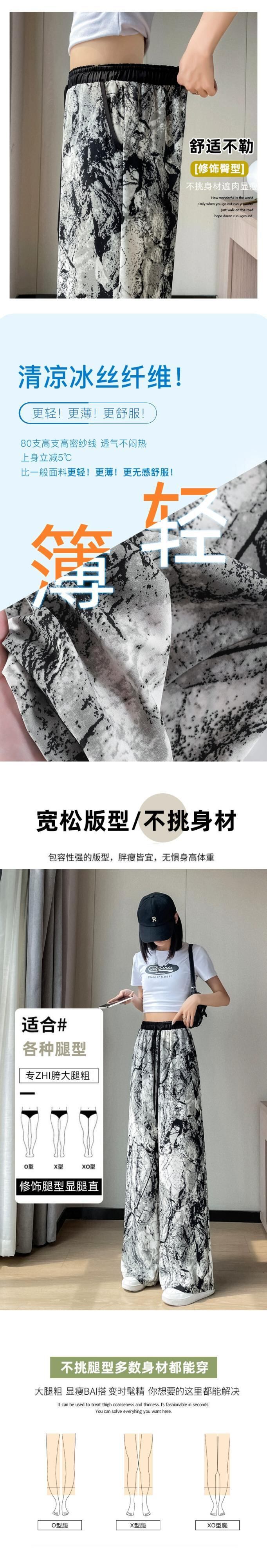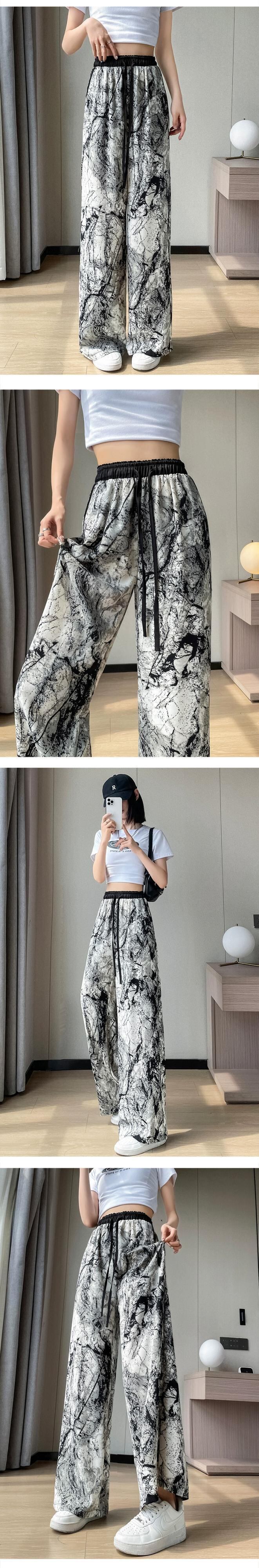 インク絞り染めアイスシルク日焼け止めパンツ、夏用レディース、薄手、ルーズ、ストレート、カジュアルフロアレングスハイウエストワイドレッグパンツ サマー 夏物 74600829374409 | framboise21