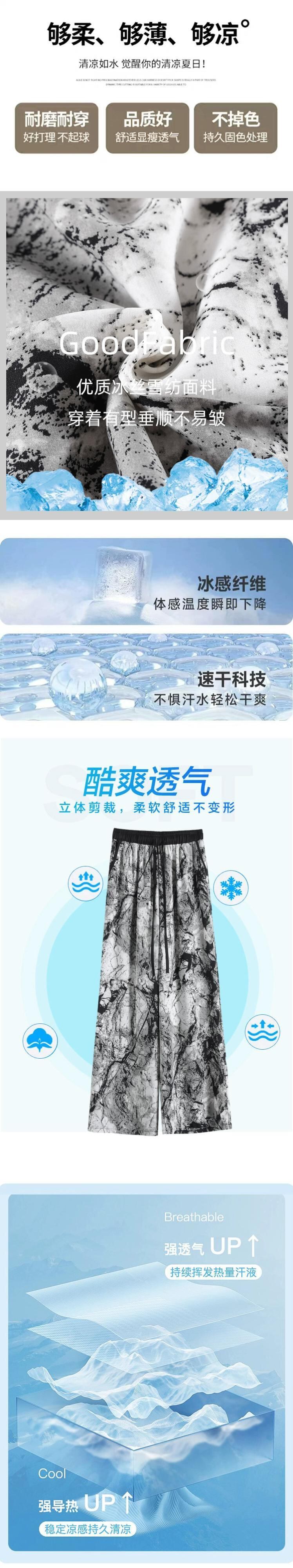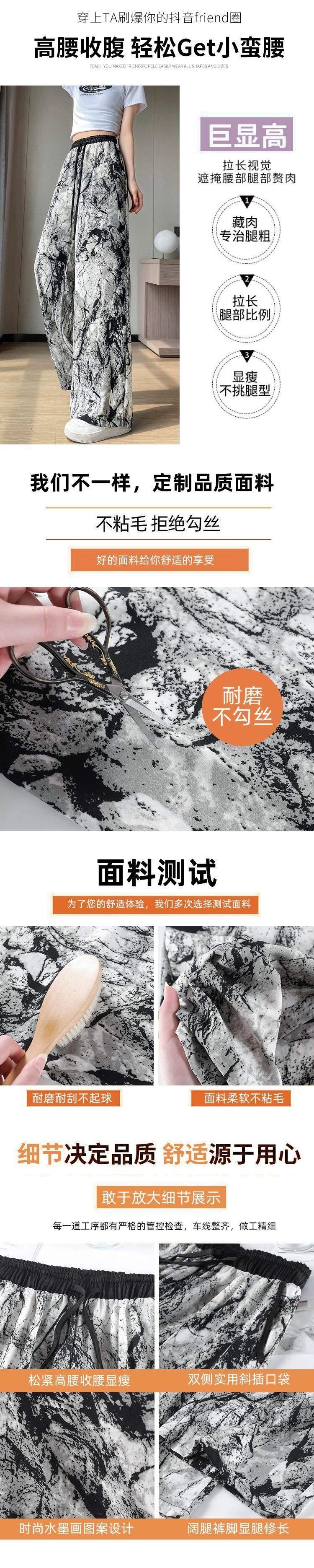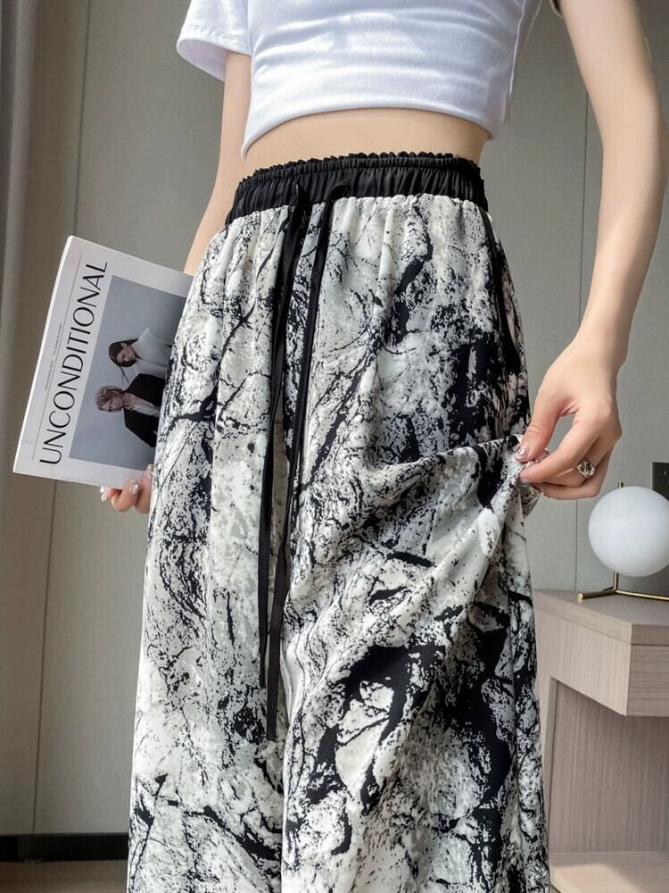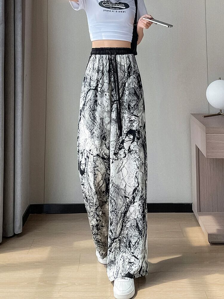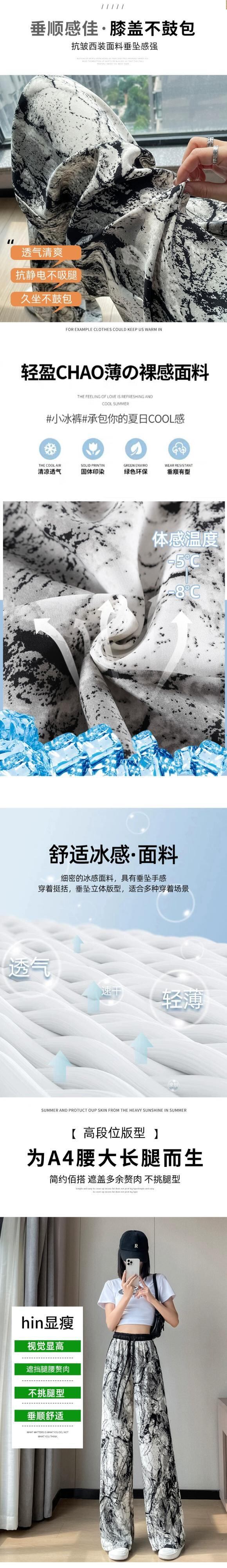 インク絞り染めアイスシルク日焼け止めパンツ、夏用レディース、薄手、ルーズ、ストレート、カジュアルフロアレングスハイウエストワイドレッグパンツ サマー 夏物 74600829374409 | framboise21