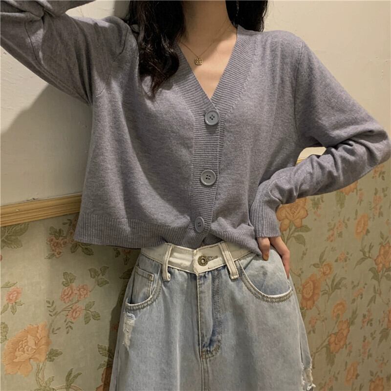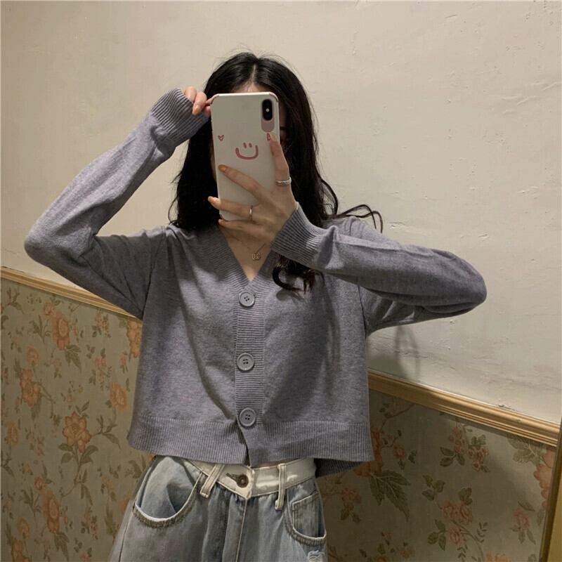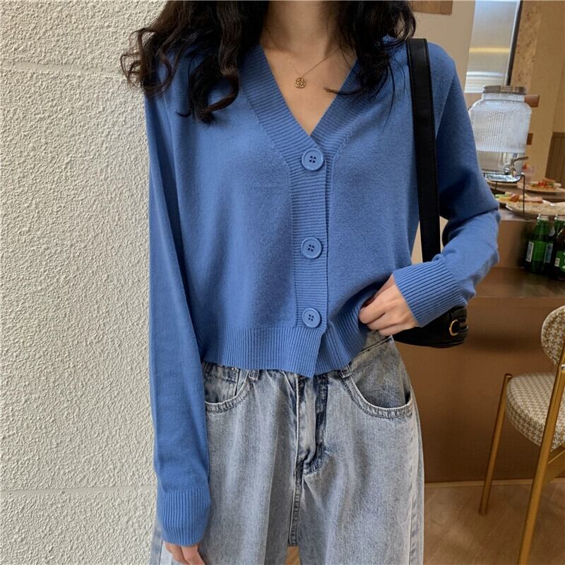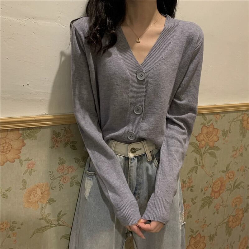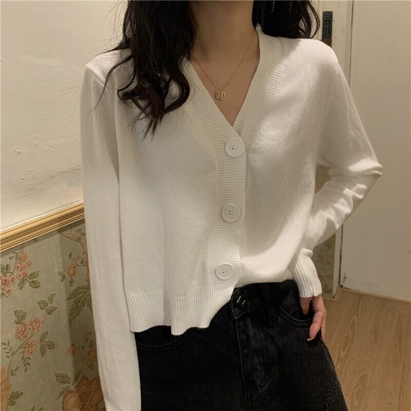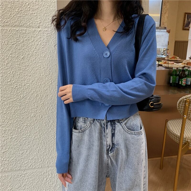 黒ショートニットカーディガンジャケット女性春と秋 2023 新しいルーズでスリムなアウターウェア長袖 V ネックセーター冬 ロング ブラック スプリング 春物 オータム 秋物 ウィンター 冬物 Vネック 7460045543309286 | framboise21