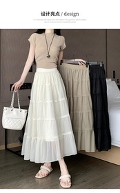シフォン A ラインスカート女性 2023 新しい夏のスタイル薄いメッシュケーキスカート痩身ハイウエスト妖精ロングスカート白 ハイウェスト ホワイト サマー 夏物 Aライン 7460040416770609