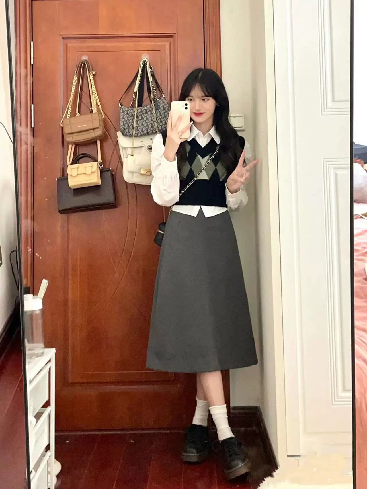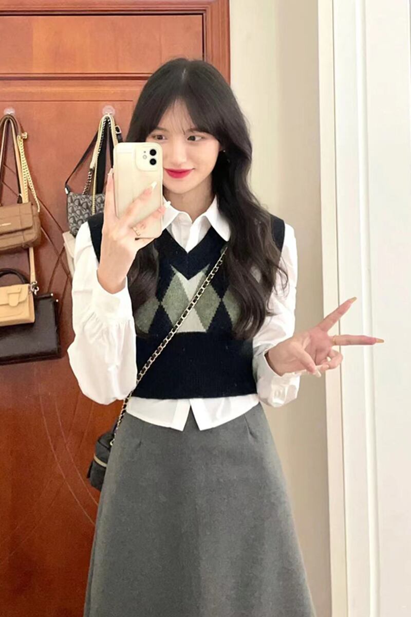 チェック柄ニットベスト女性春と秋 2023 新しいレトロなデザインのアウターウェアレイヤードショート V ネックトップ レッド スプリング 春物 オータム 秋物 Vネック 7460050873366484 | framboise21