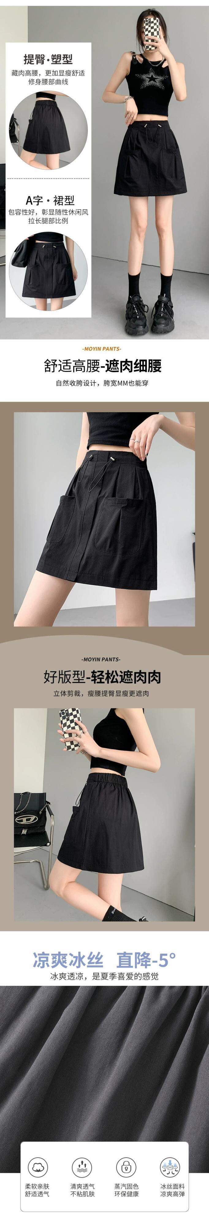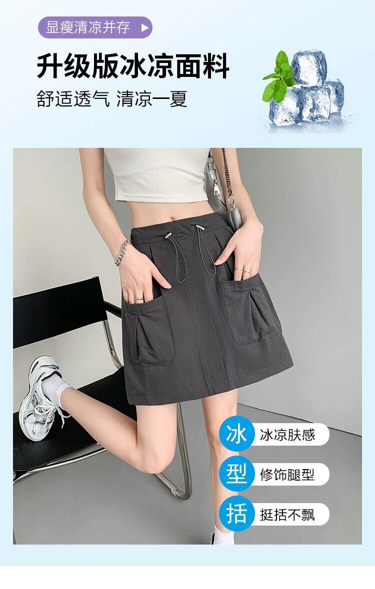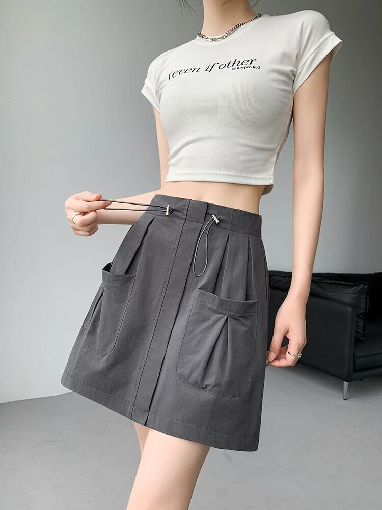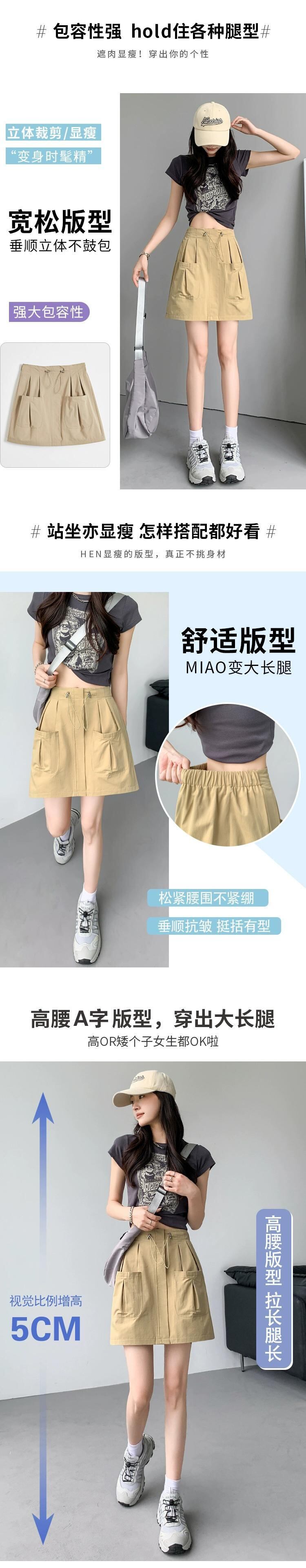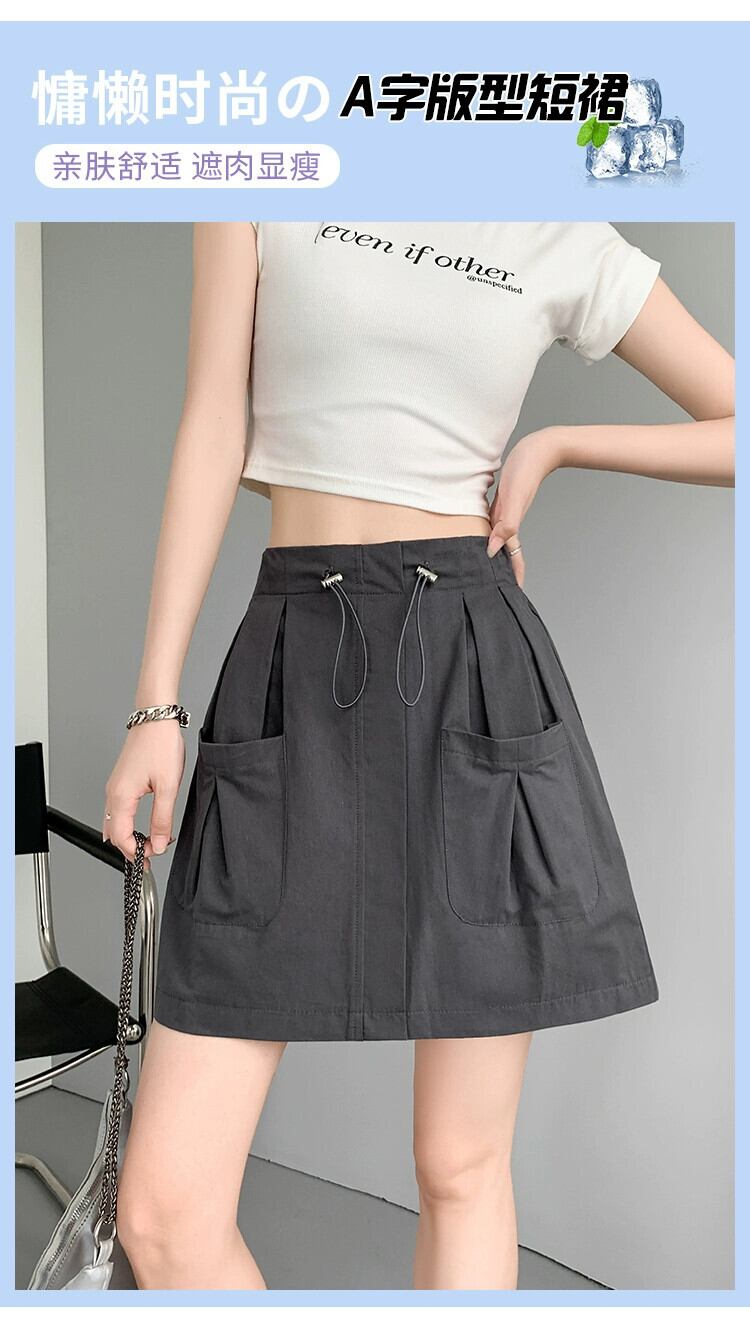 A ライン作業服スカート女性 2023 新しい夏のスリムで多用途な小さな露出防止弾性ハイウエストショートスカート エラスティック 伸縮 サマー 夏物 Aライン 7460033002356614 | framboise21