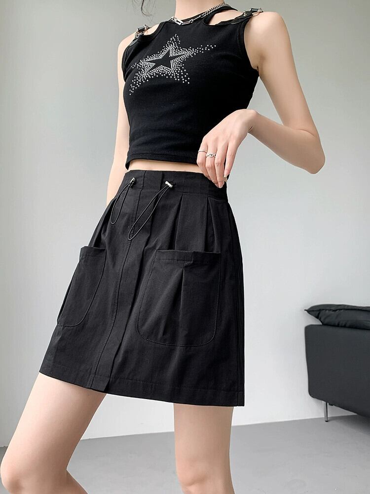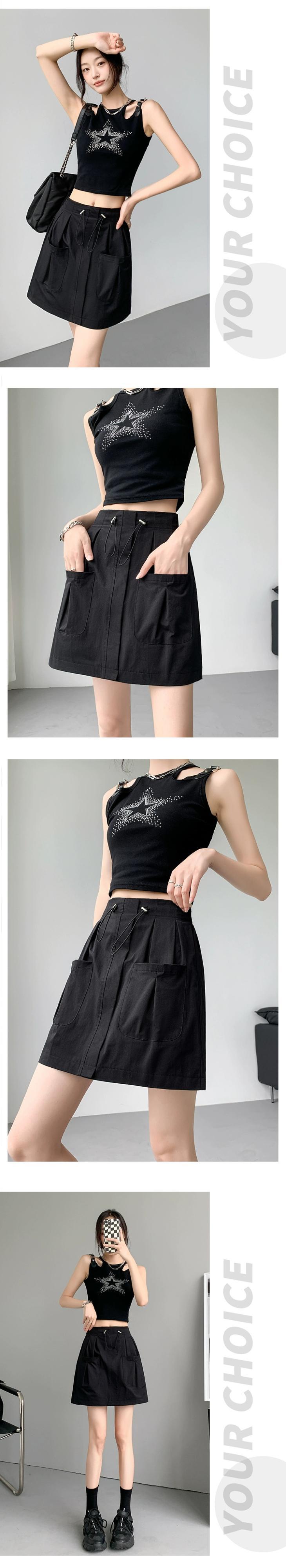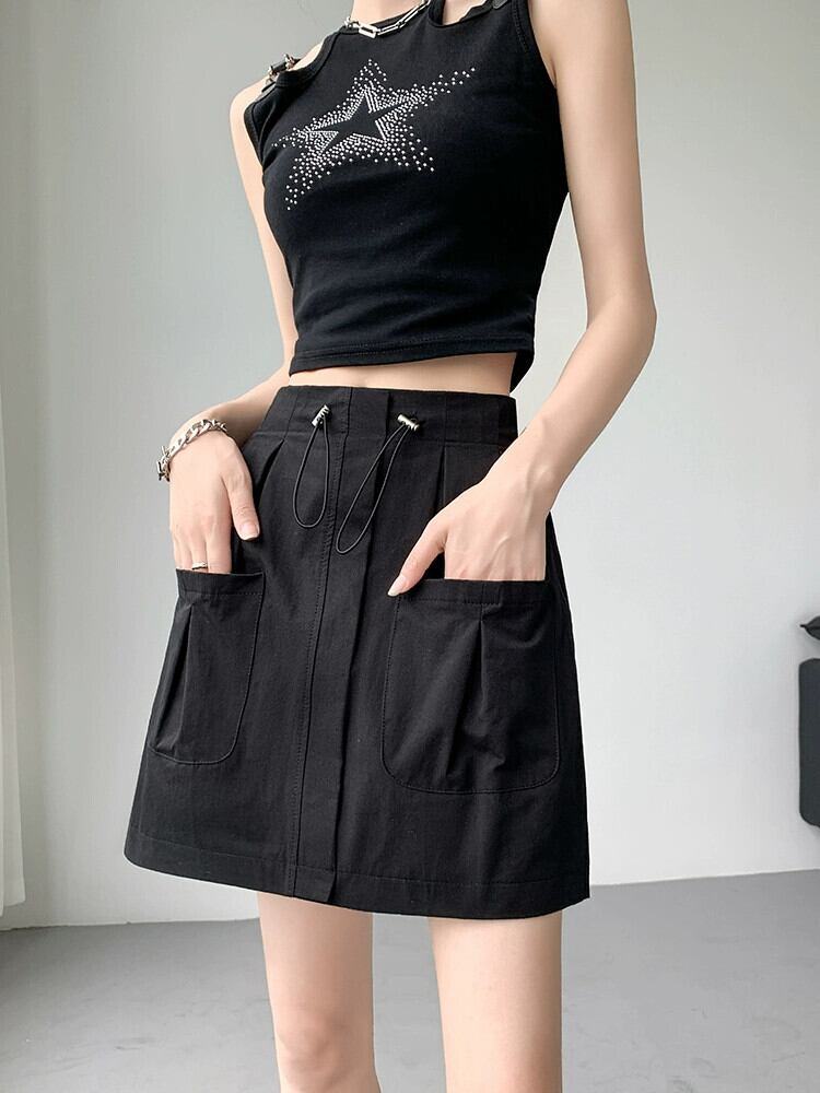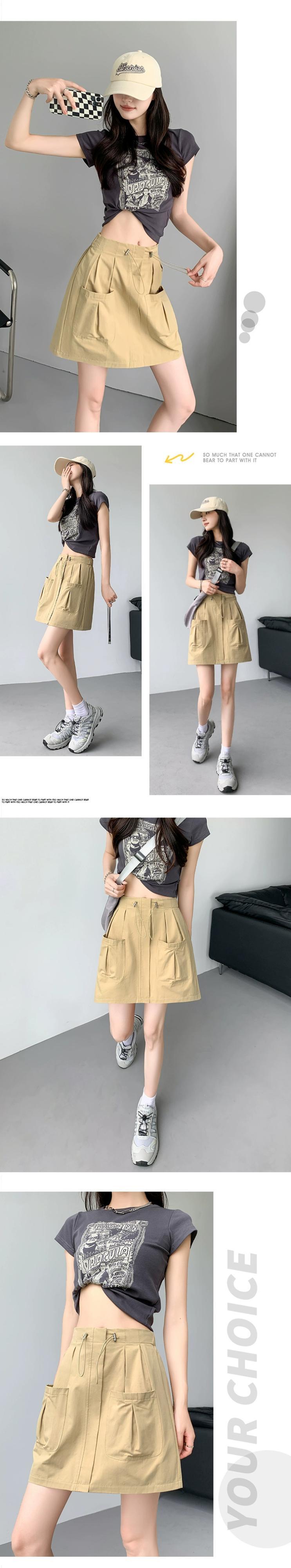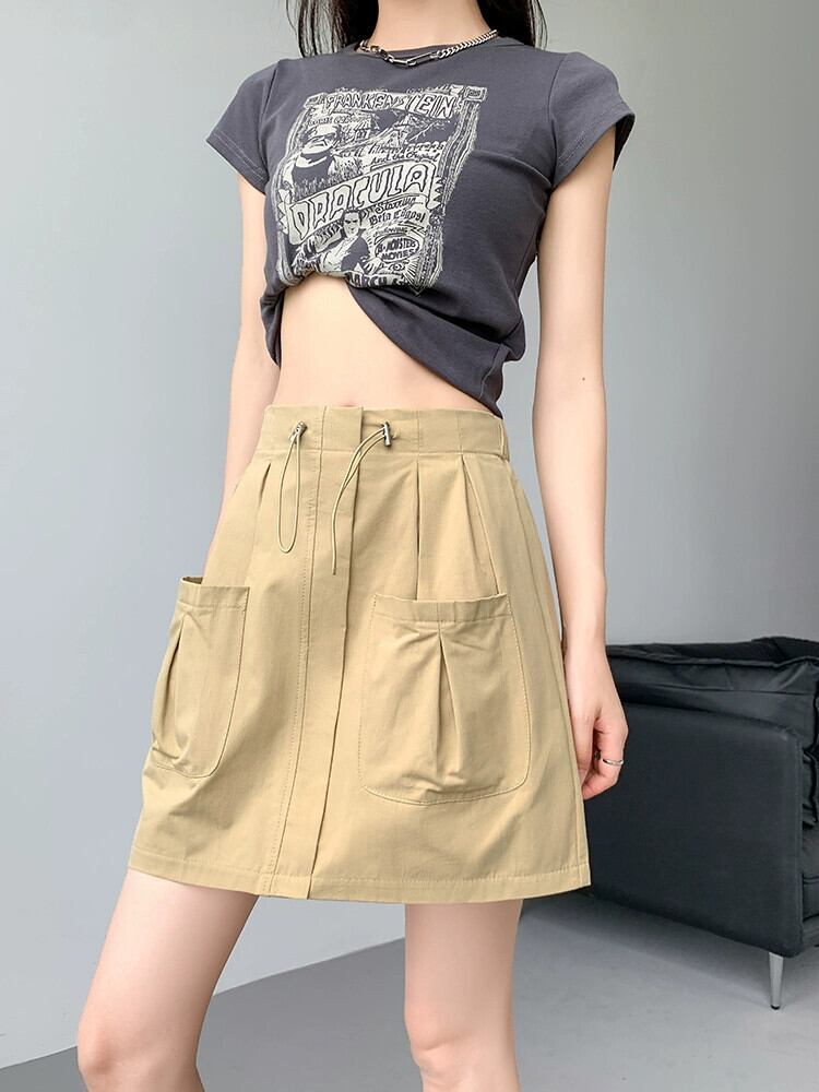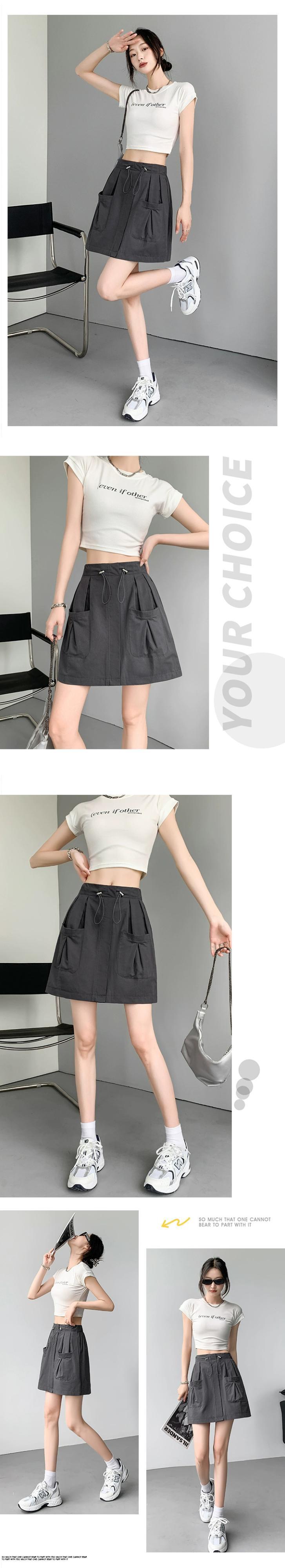 A ライン作業服スカート女性 2023 新しい夏のスリムで多用途な小さな露出防止弾性ハイウエストショートスカート エラスティック 伸縮 サマー 夏物 Aライン 7460033002356614 | framboise21