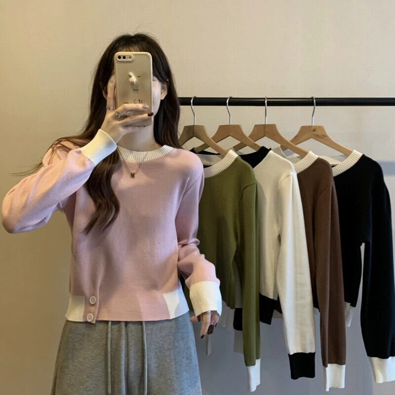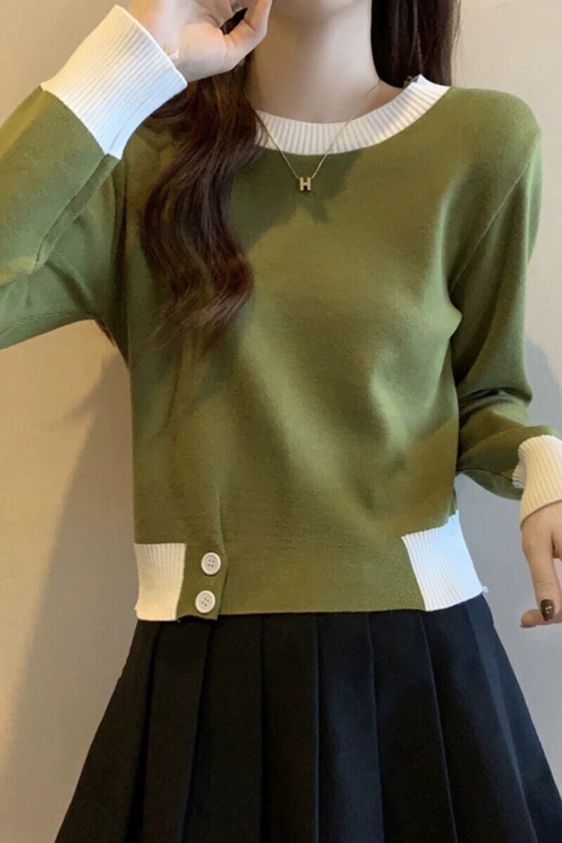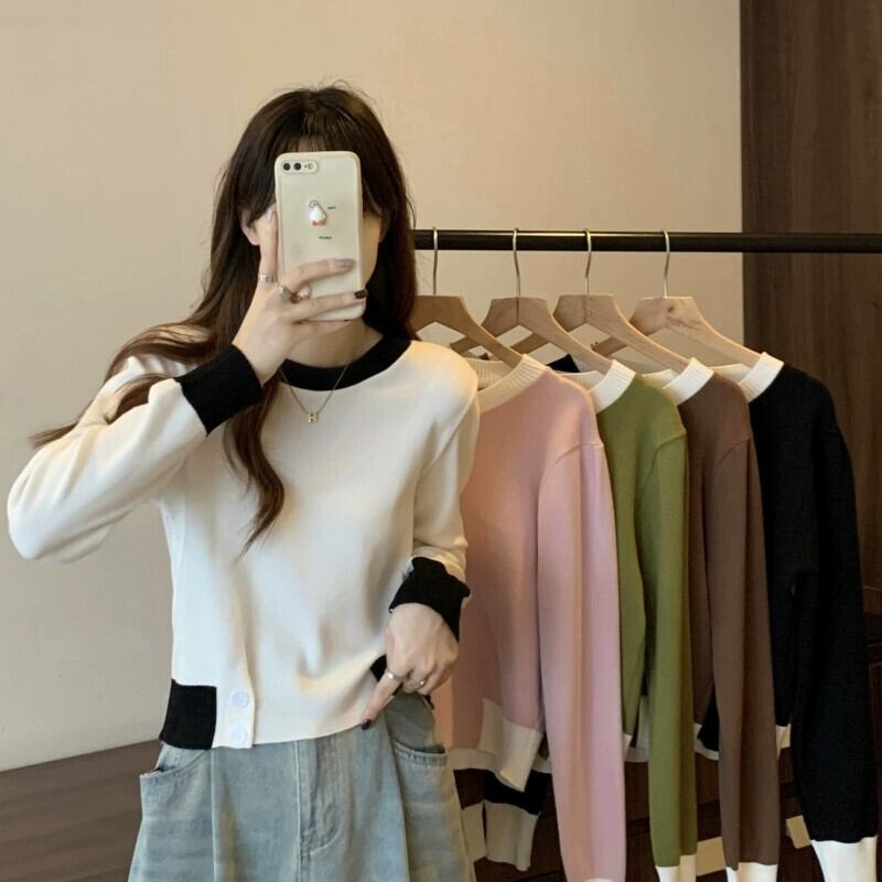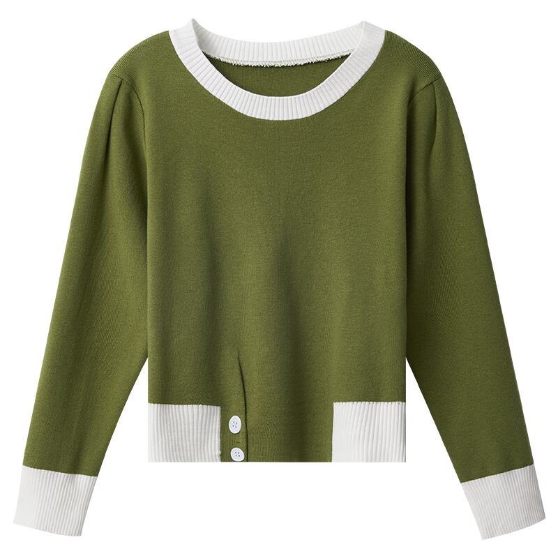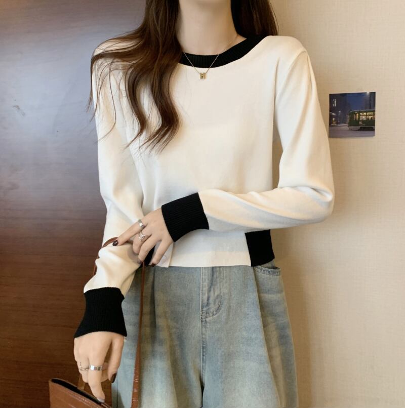 秋冬のニットボトムシャツレディース。ウエスタンスタイルのコントラストカラーセーター、高級感のあるスリムフィットショートトップ小柄な方向け。 オータム 秋物 ウィンター 冬物 7460057112661343 | framboise21