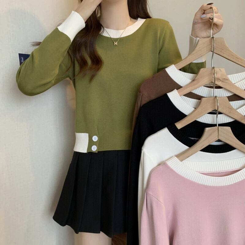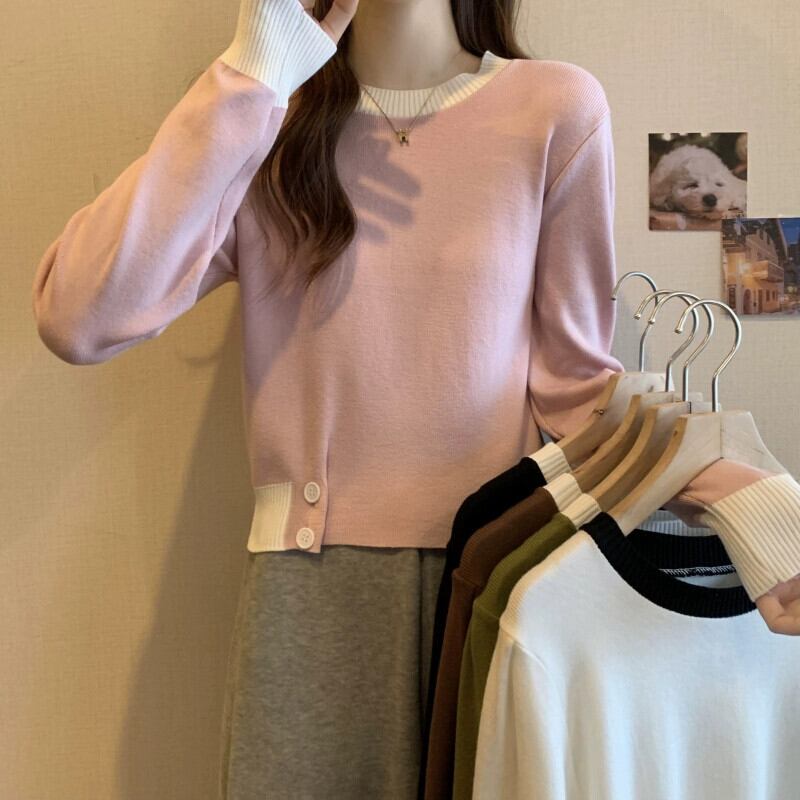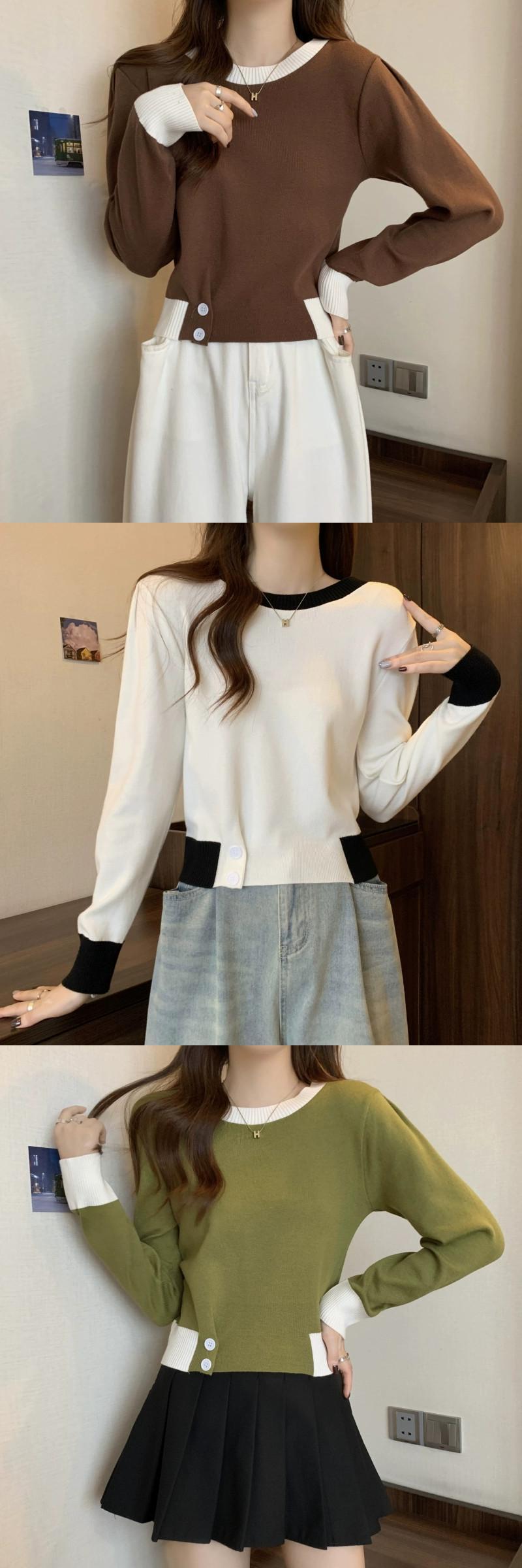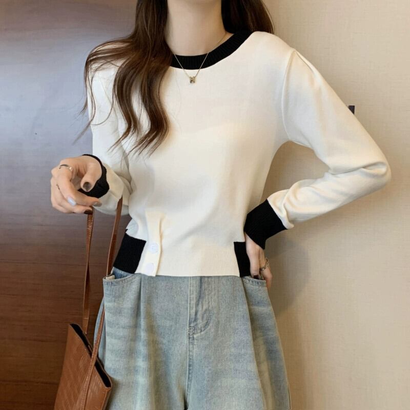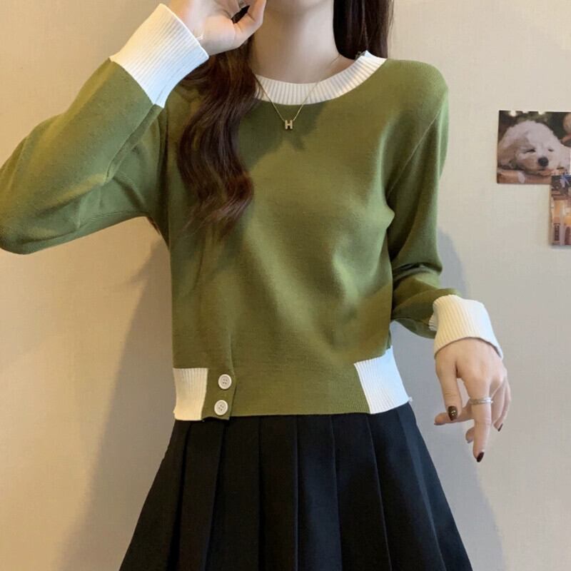 秋冬のニットボトムシャツレディース。ウエスタンスタイルのコントラストカラーセーター、高級感のあるスリムフィットショートトップ小柄な方向け。 オータム 秋物 ウィンター 冬物 7460057112661343 | framboise21