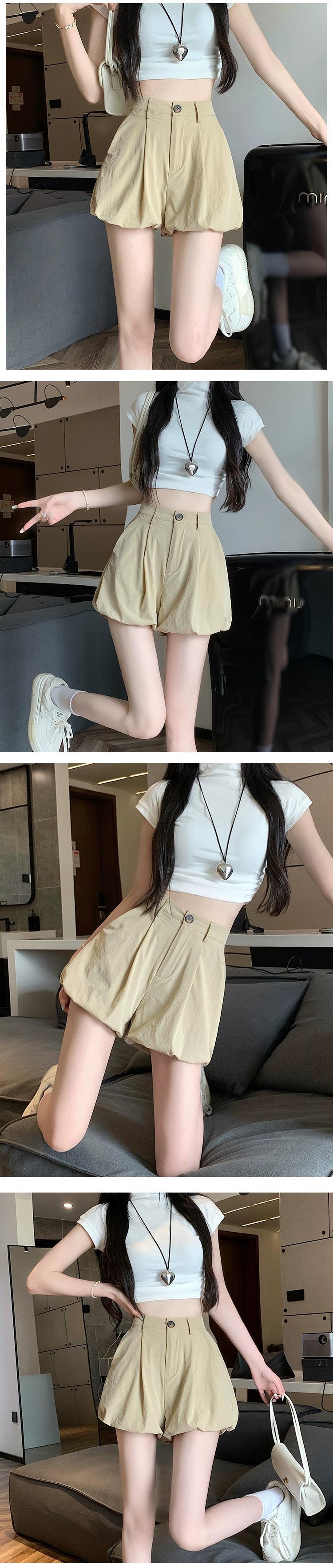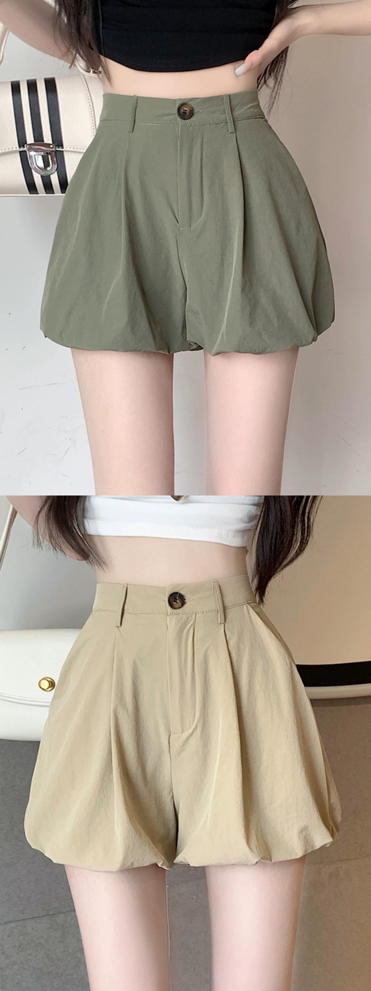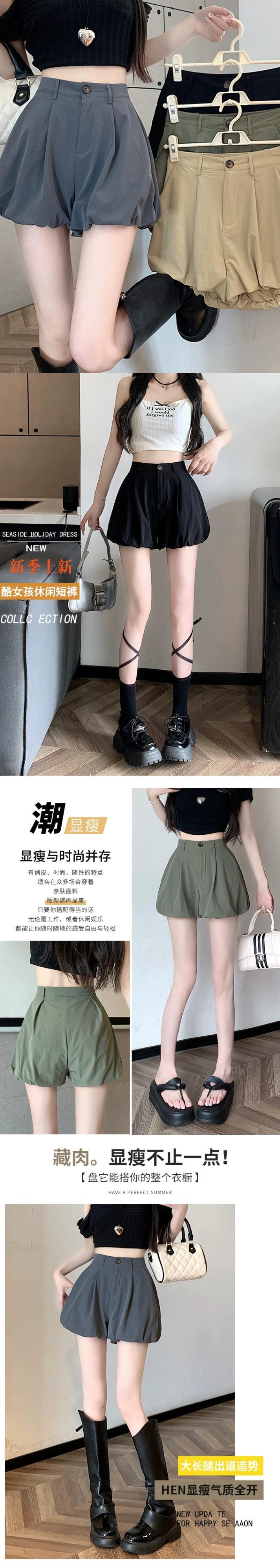 つぼみショーツ女性夏 2023 新しい薄い小さなスリム背の高いウエストワイドレッグ A ライングレーパンツ サマー 夏物 ブルマー Aライン ワイドパンツ 7460063908377398 | framboise21