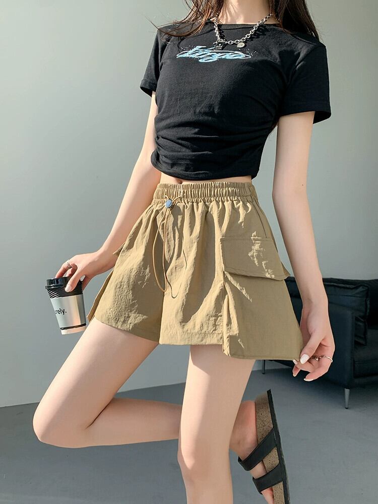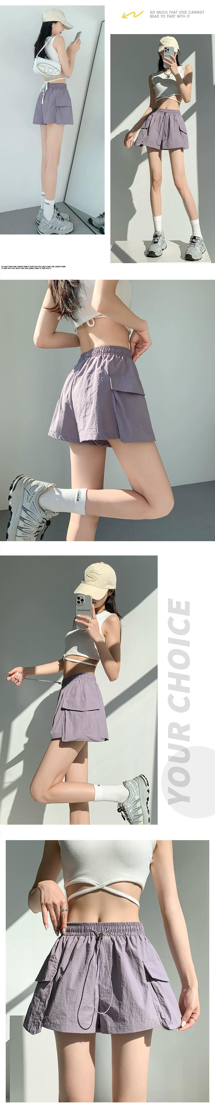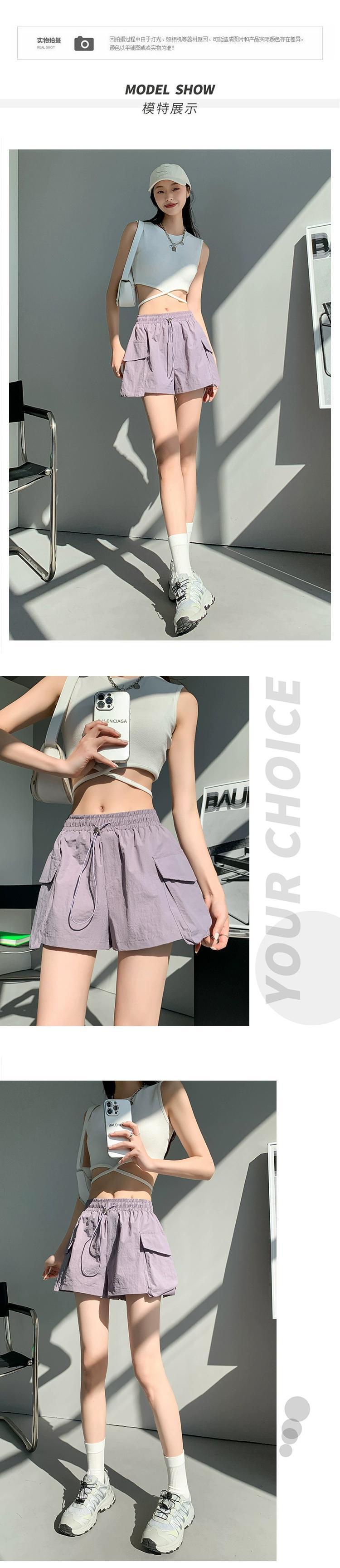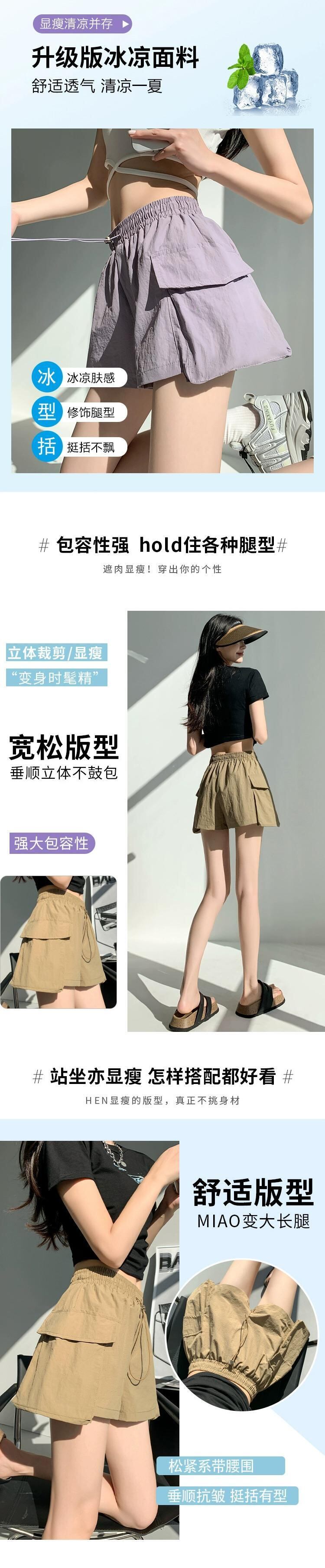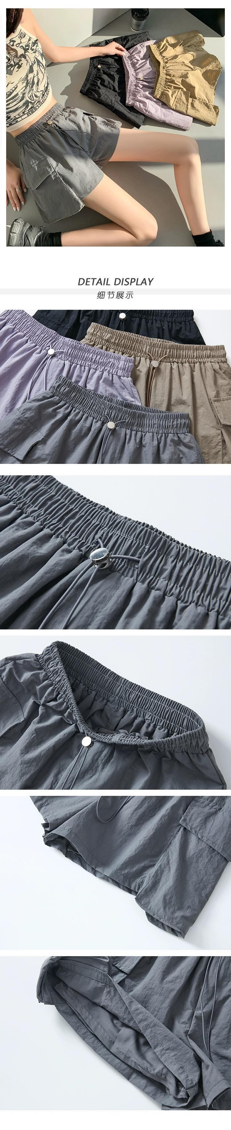 - ウエストAラインカーゴショーツレディース、夏用アメリカン薄手速乾スリークォーターパンツ、カジュアルワイドレッグアイスシルクスポーツパンツ サマー 夏物 ブルマー 7460067615380651 | framboise21