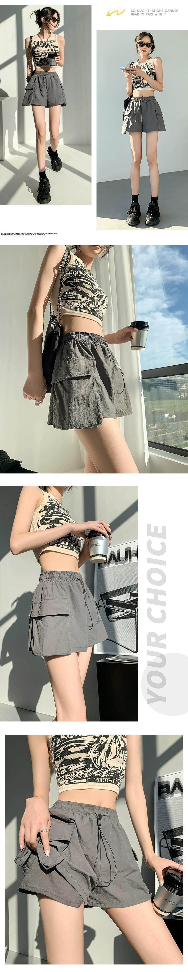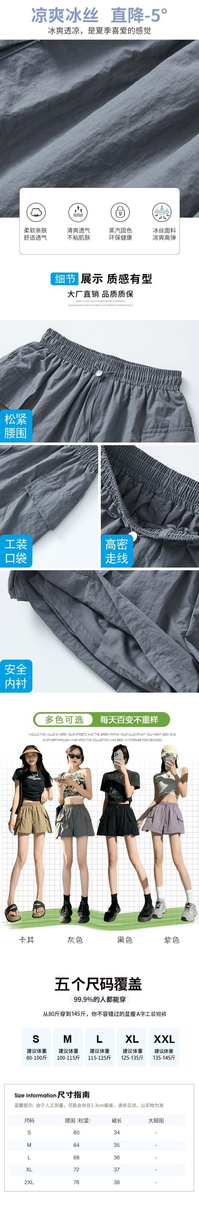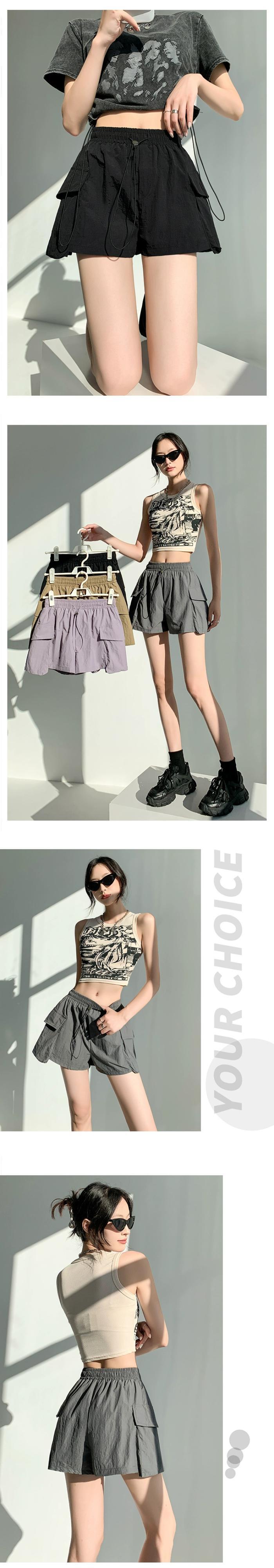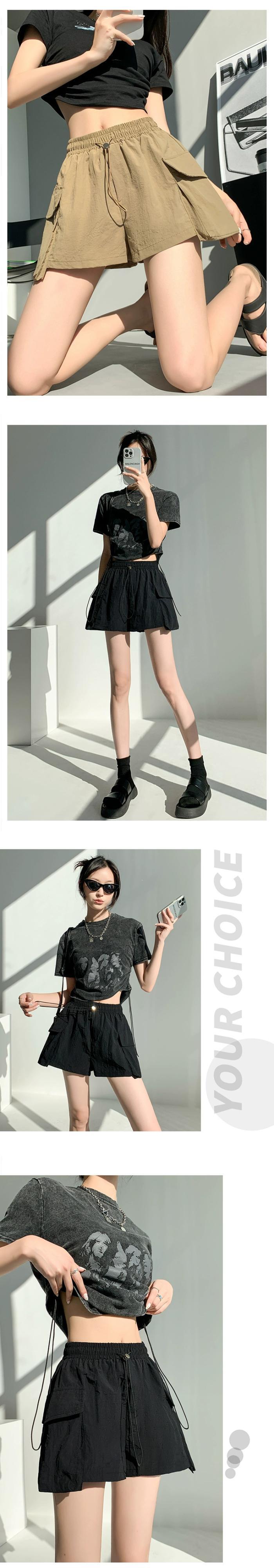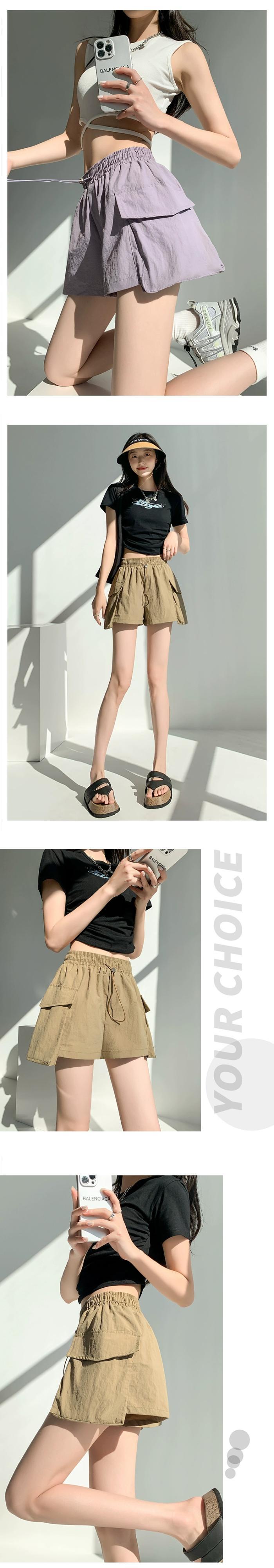 - ウエストAラインカーゴショーツレディース、夏用アメリカン薄手速乾スリークォーターパンツ、カジュアルワイドレッグアイスシルクスポーツパンツ サマー 夏物 ブルマー 7460067615380651 | framboise21